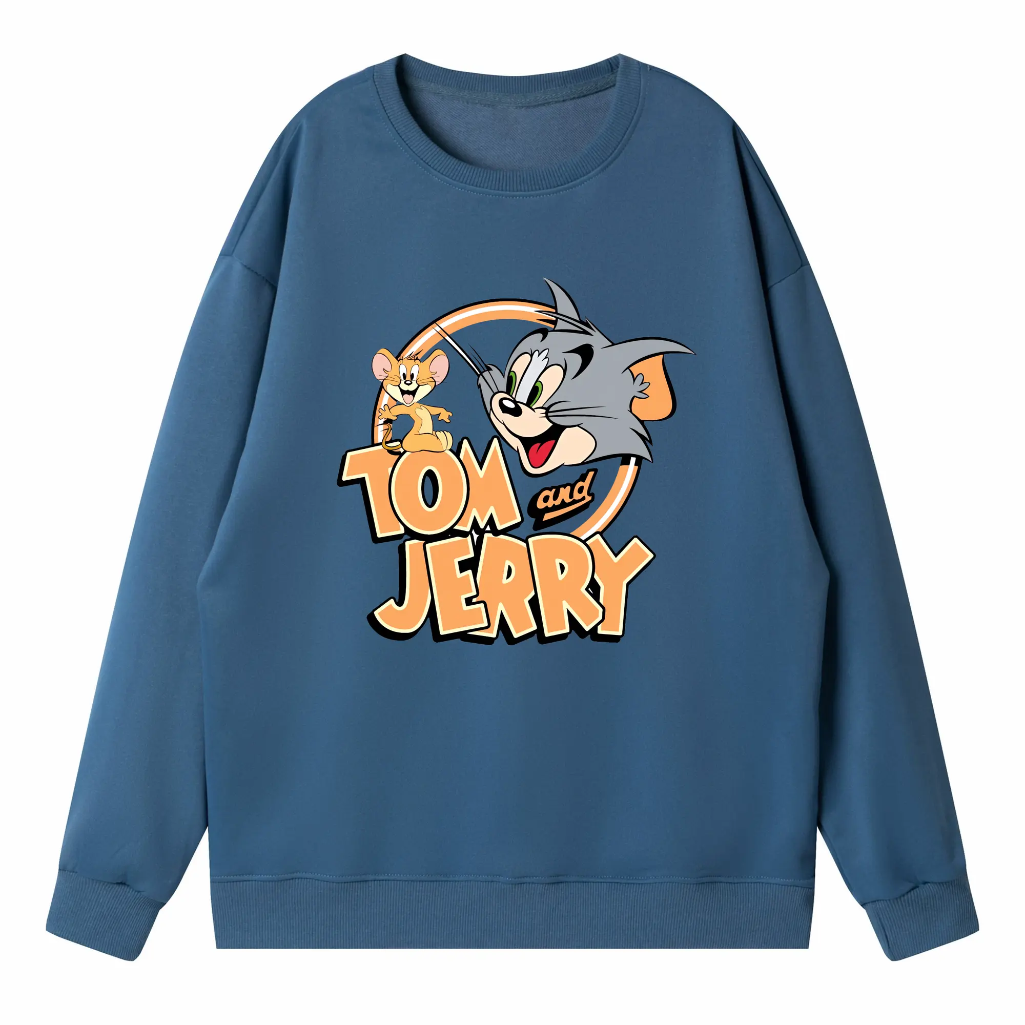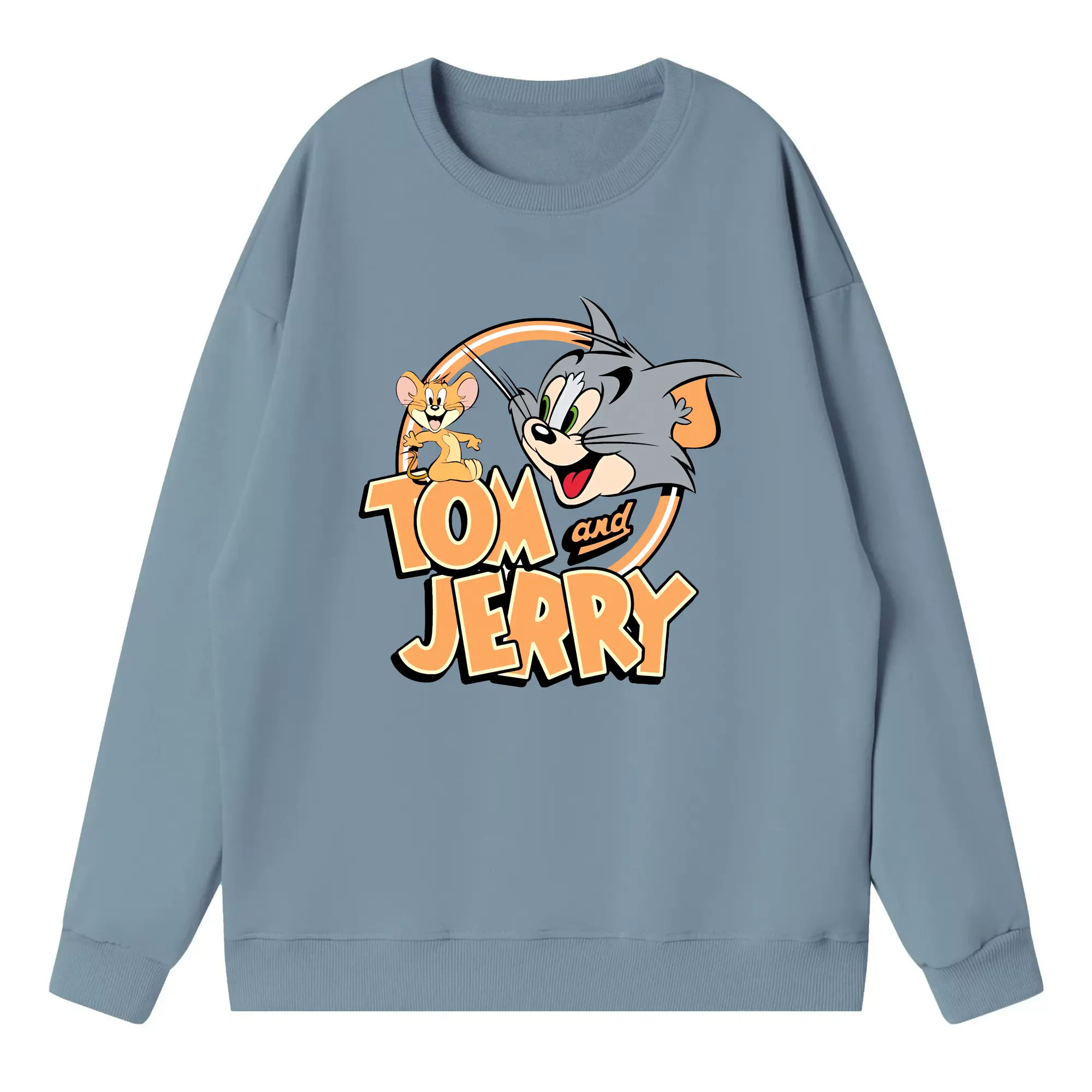 トムとジェリー グッズ トム - 高品質 クルーネック スウェット ・ コットン59% ポリエステル41% ・ ユニセックス 長袖 トレーナー ・ カジュアル デイリー スポーツ 散歩用