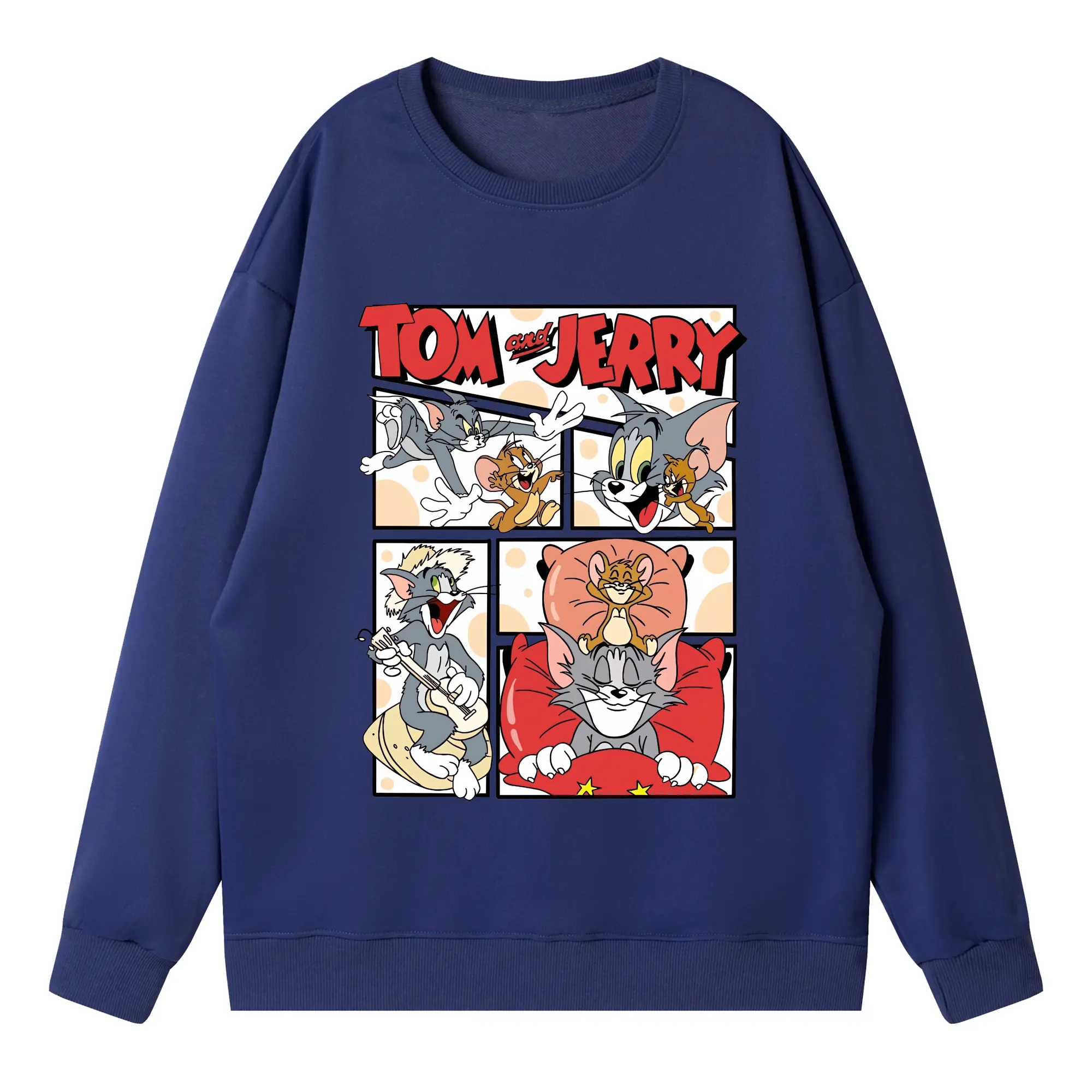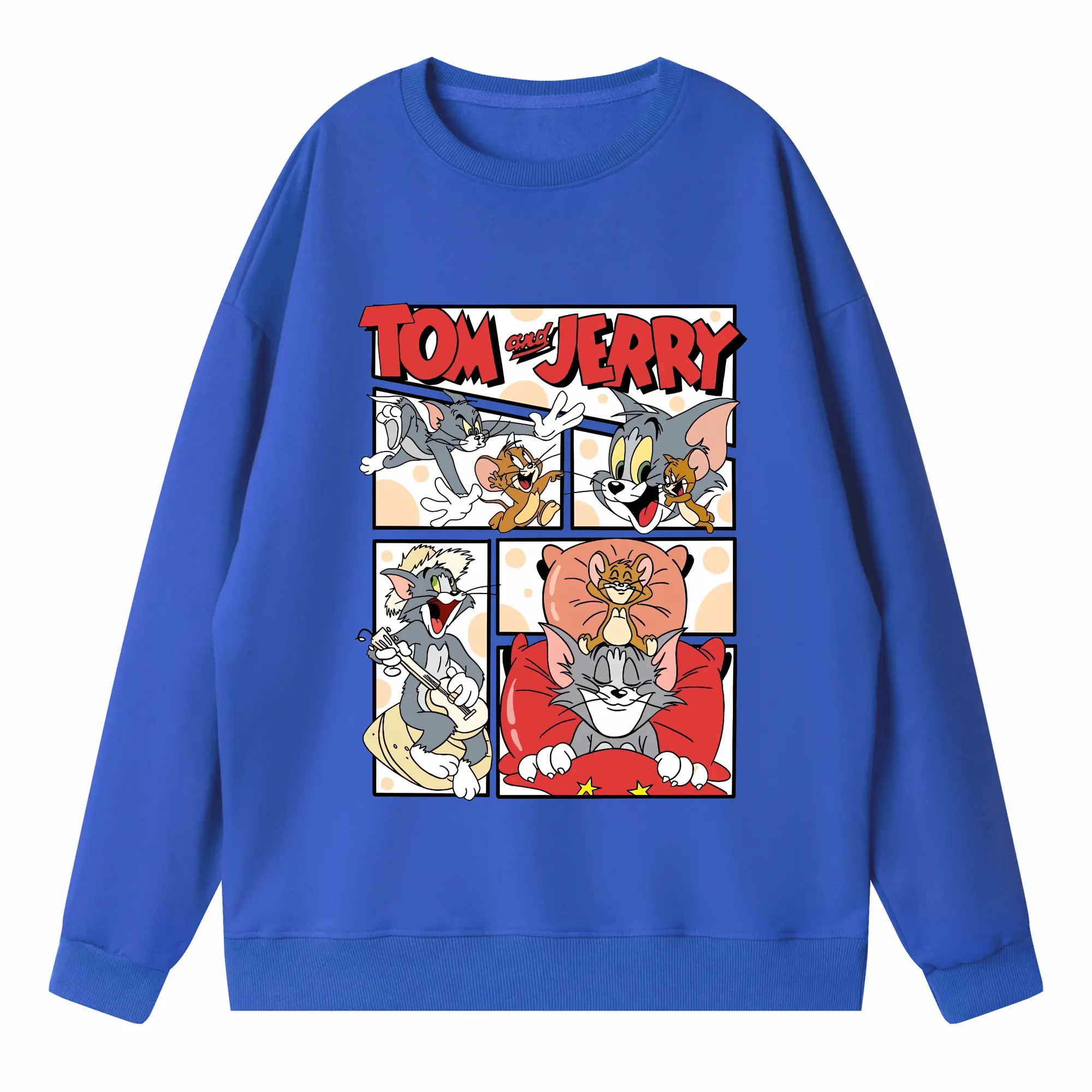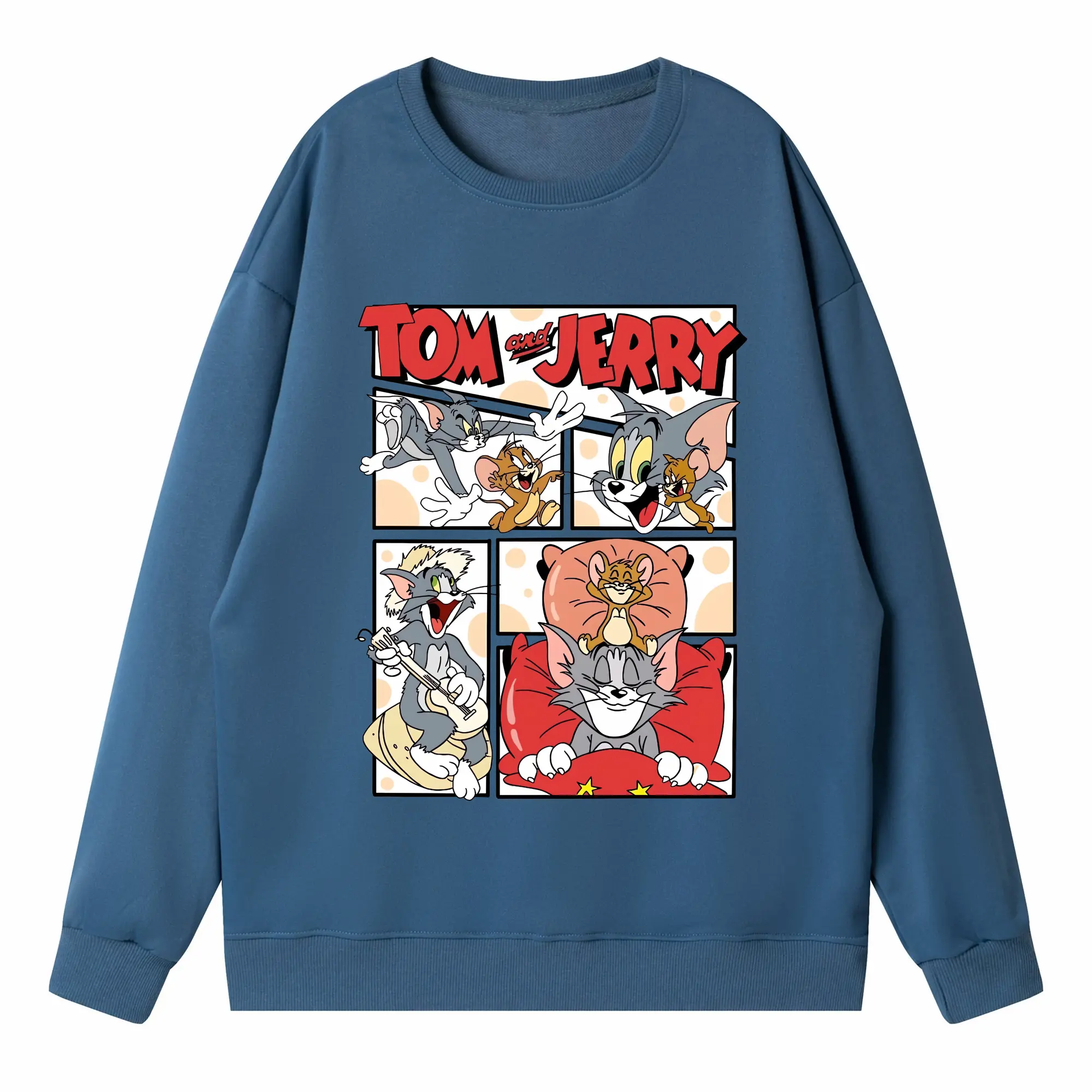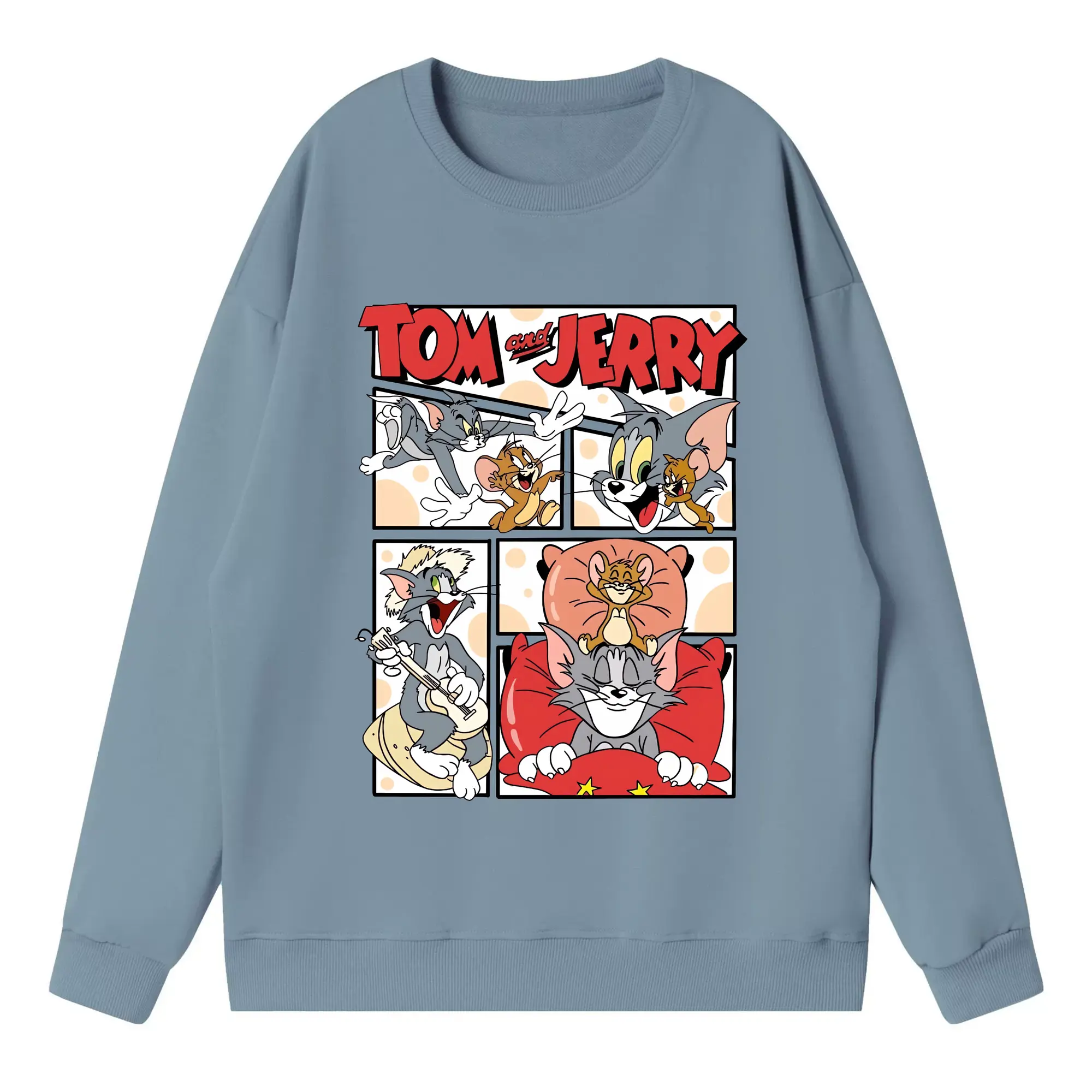 トムとジェリー グッズ トム - 高品質 クルーネック スウェット ・ コットン59% ポリエステル41% ・ ユニセックス 長袖 トレーナー ・ カジュアル デイリー スポーツ 散歩用