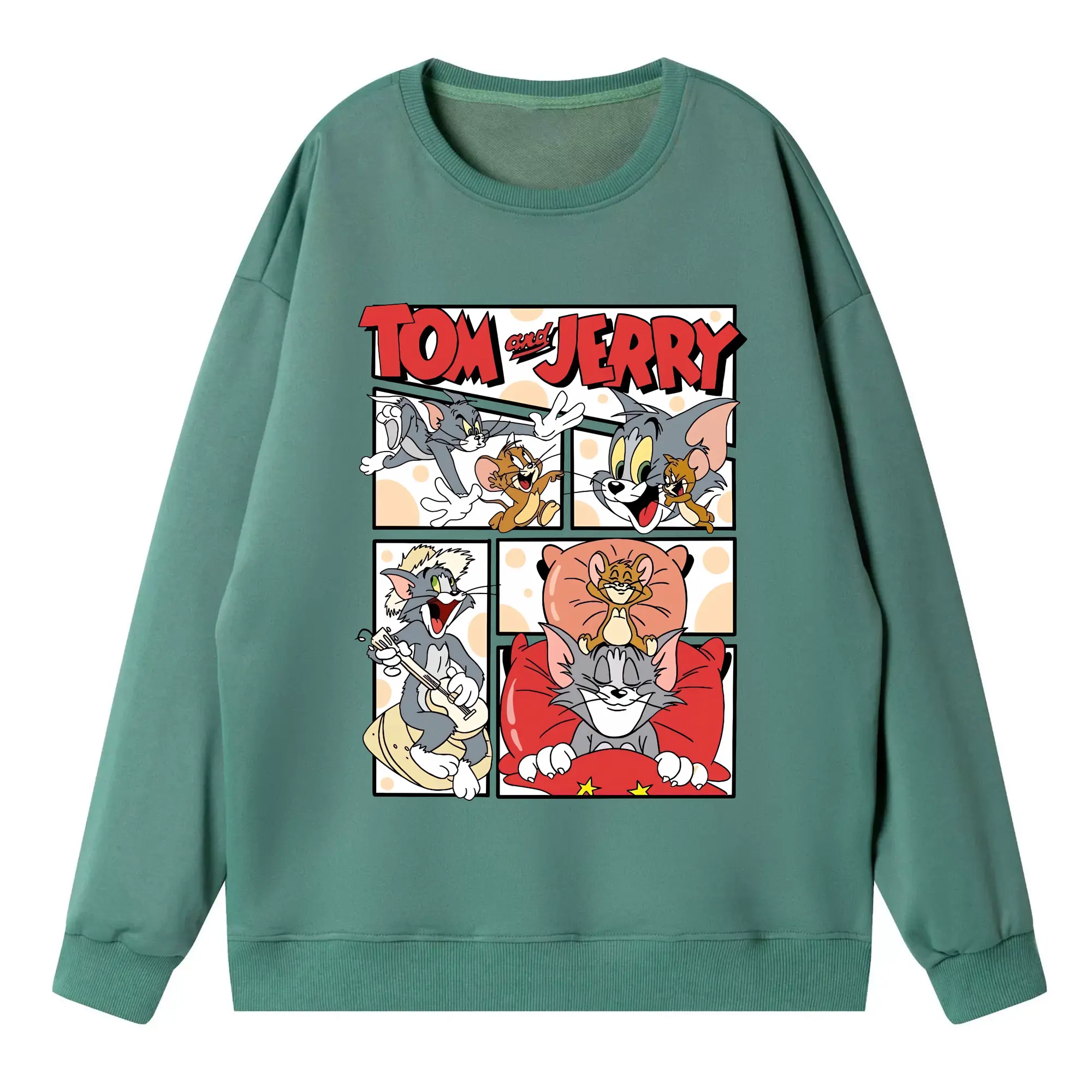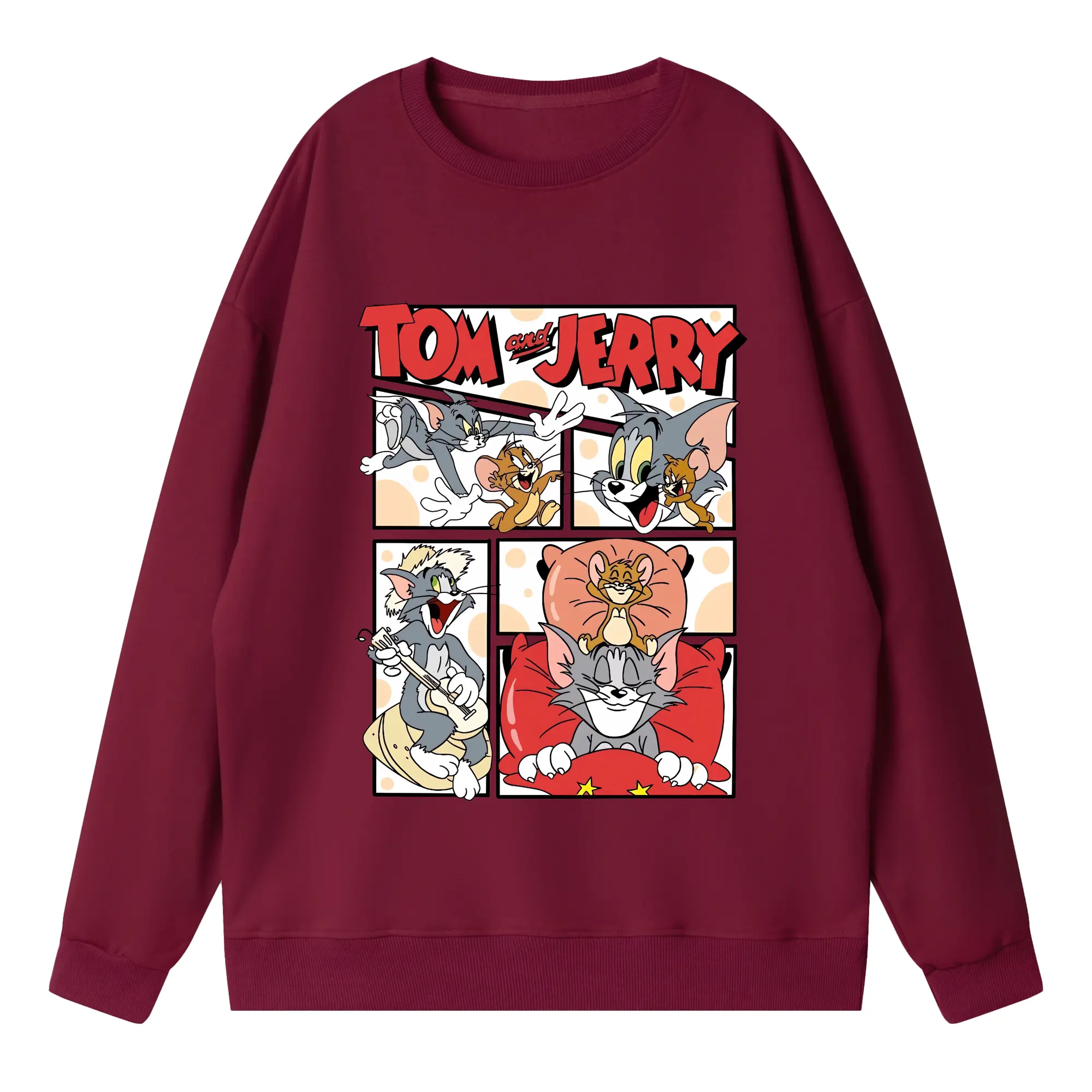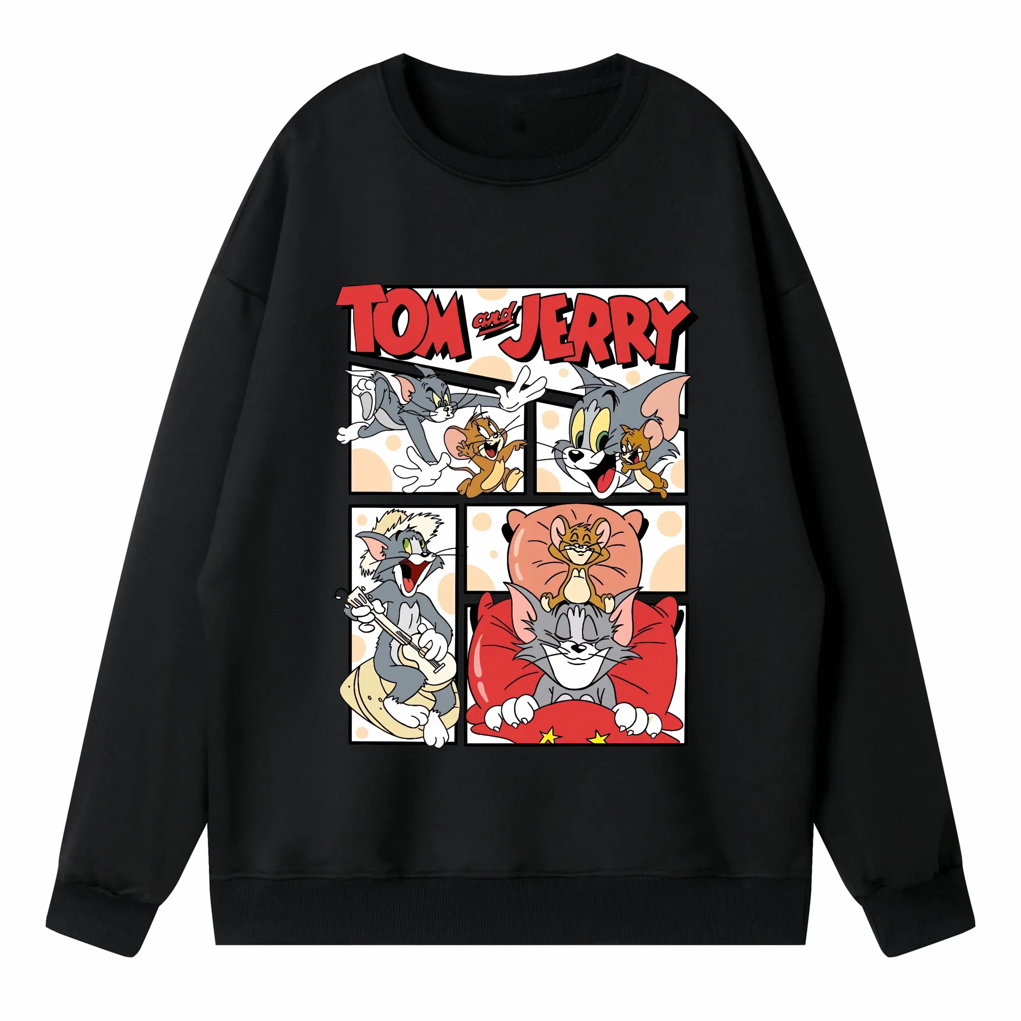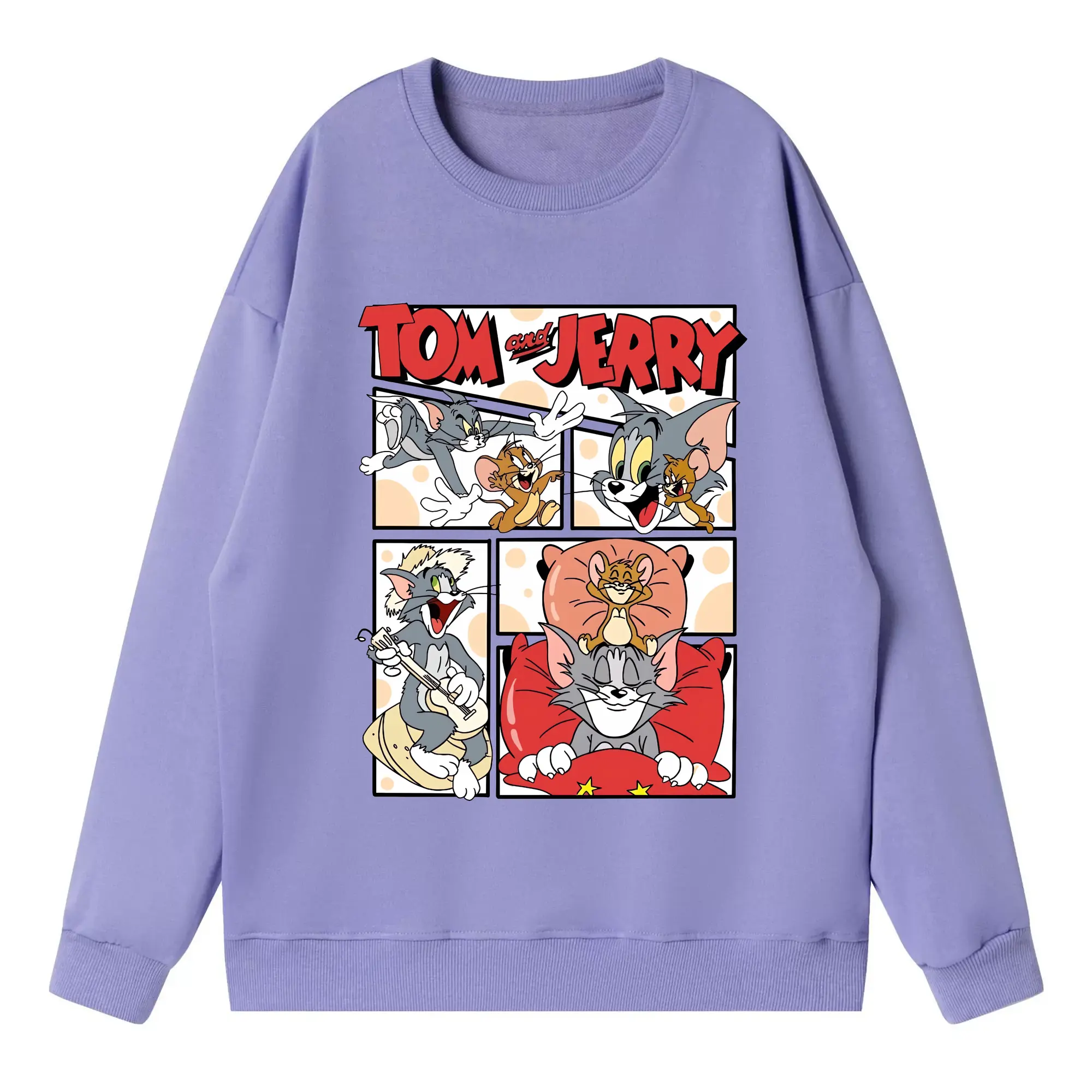 トムとジェリー グッズ トム - 高品質 クルーネック スウェット ・ コットン59% ポリエステル41% ・ ユニセックス 長袖 トレーナー ・ カジュアル デイリー スポーツ 散歩用