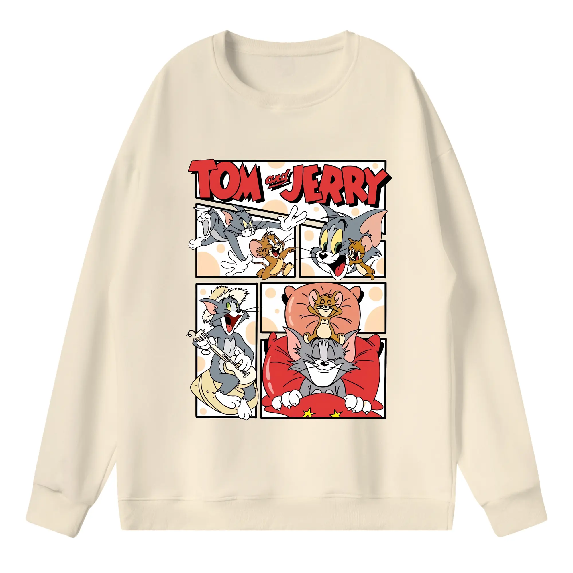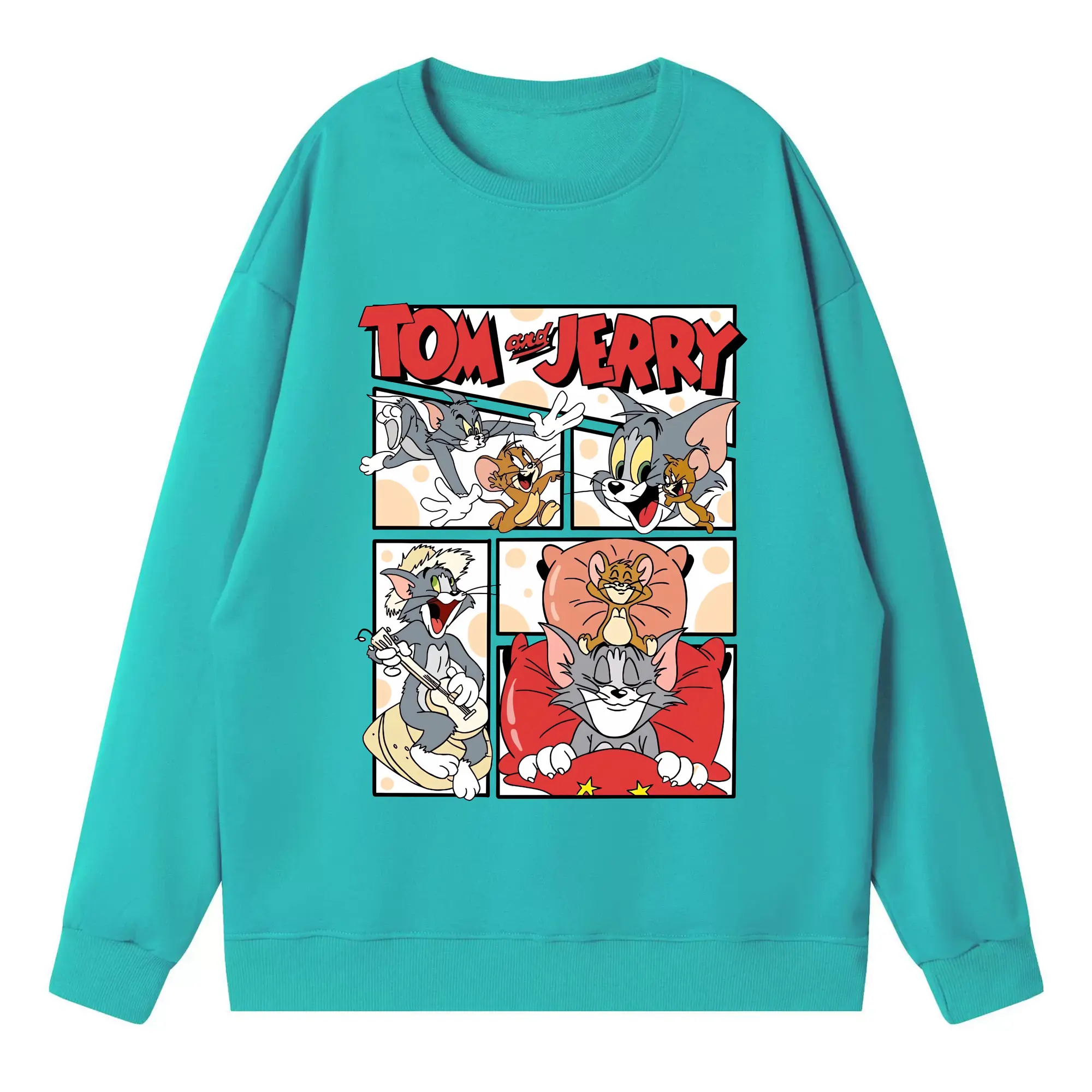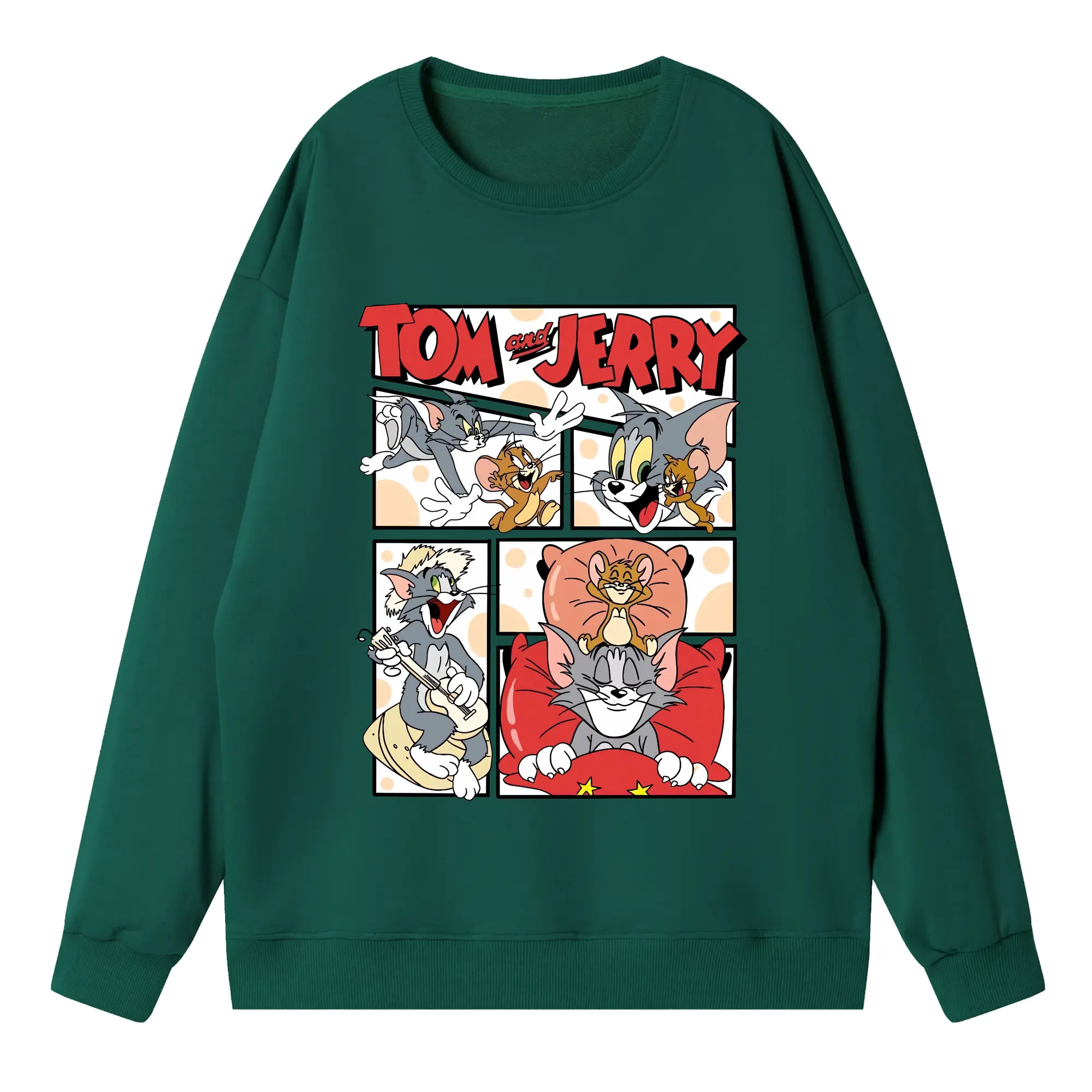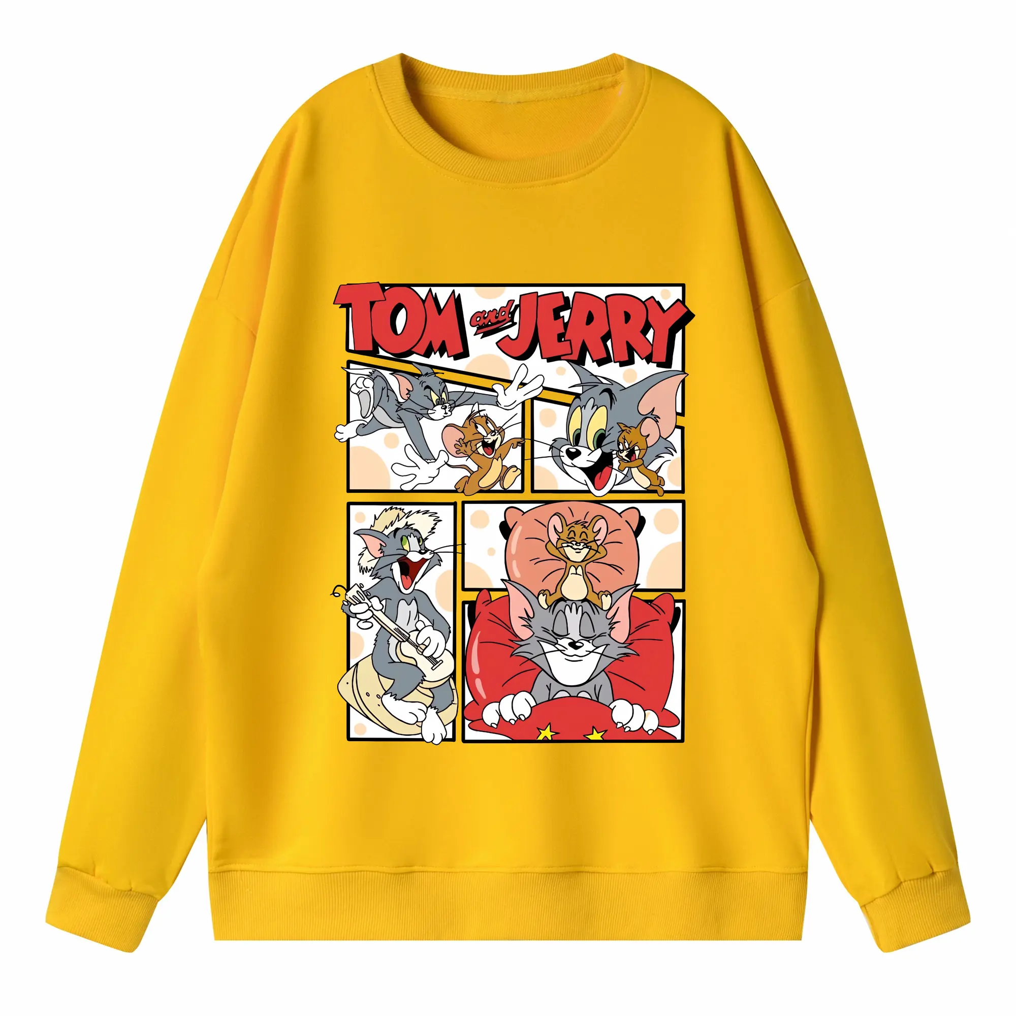 トムとジェリー グッズ トム - 高品質 クルーネック スウェット ・ コットン59% ポリエステル41% ・ ユニセックス 長袖 トレーナー ・ カジュアル デイリー スポーツ 散歩用