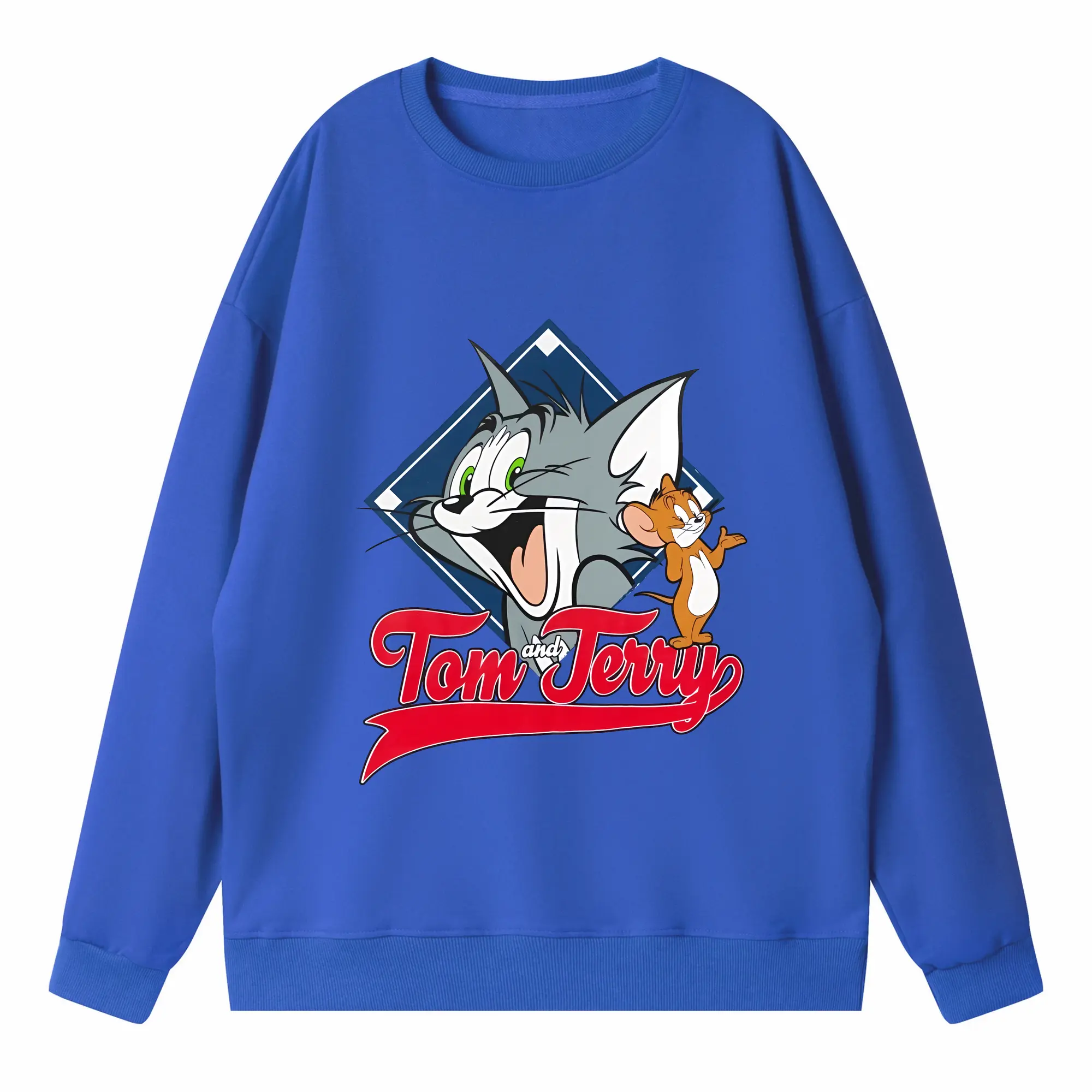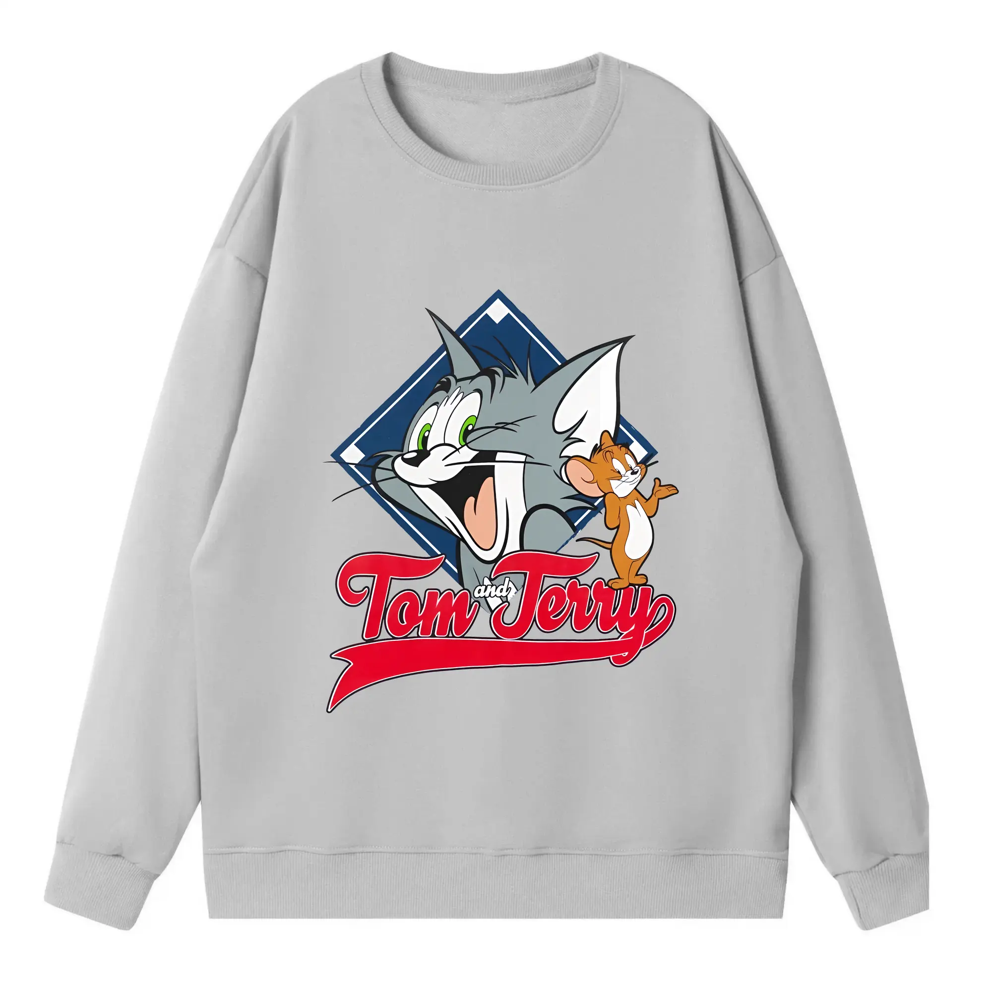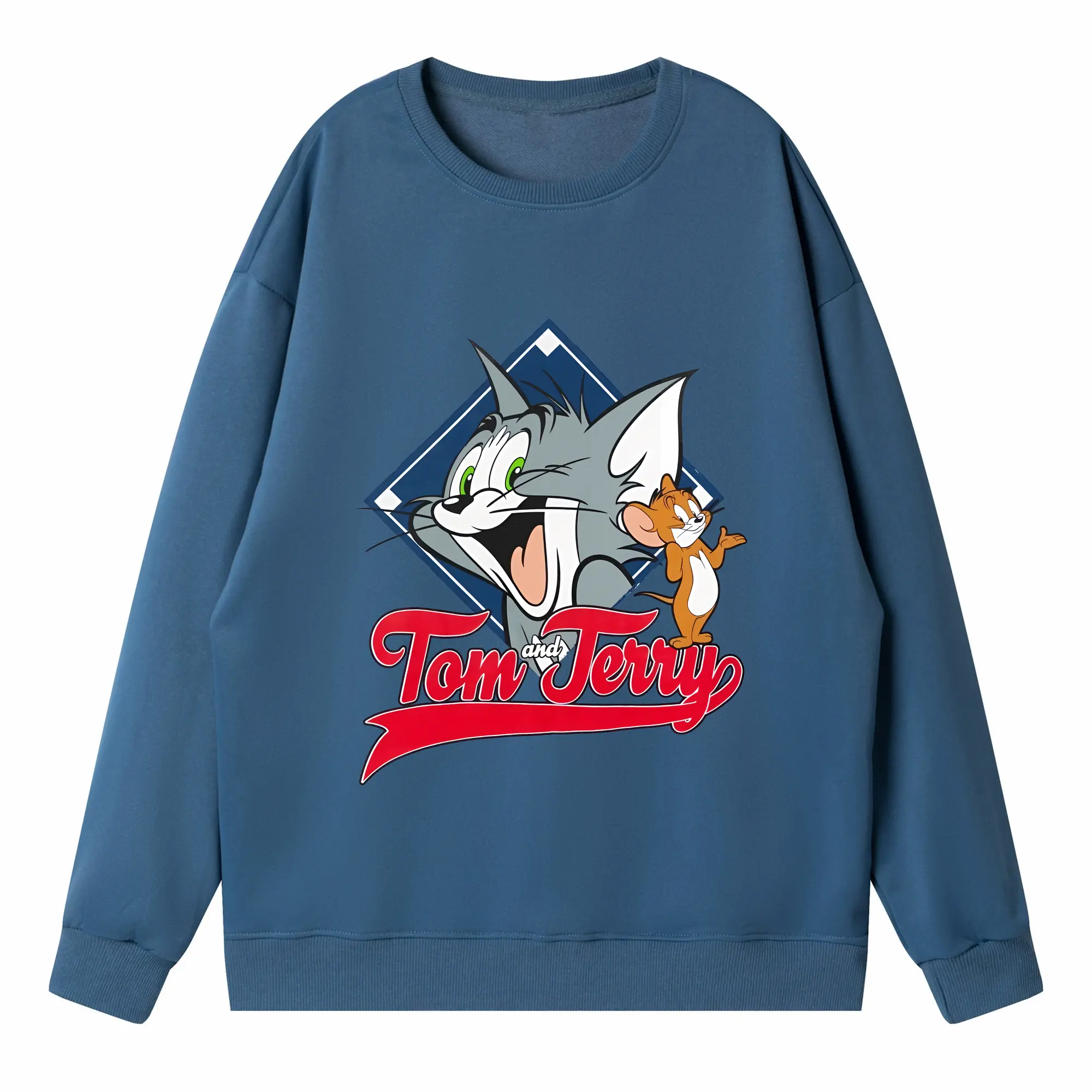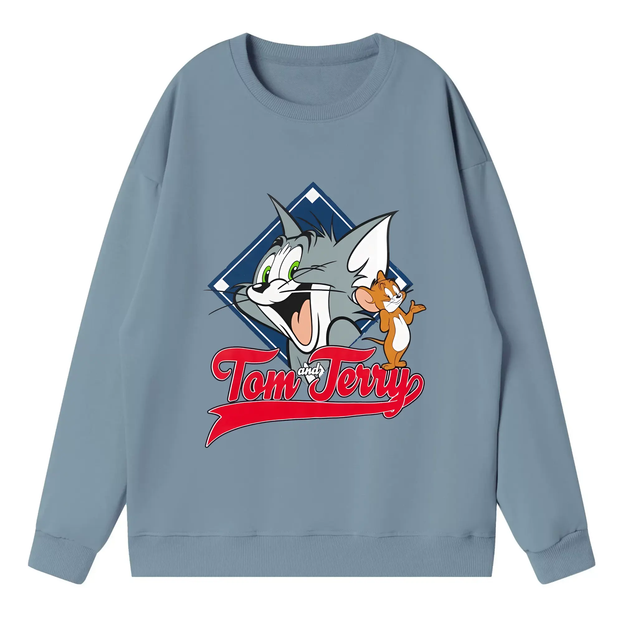 トムとジェリー グッズ トム - 高品質 クルーネック スウェット ・ コットン59% ポリエステル41% ・ ユニセックス 長袖 トレーナー ・ カジュアル デイリー スポーツ 散歩用