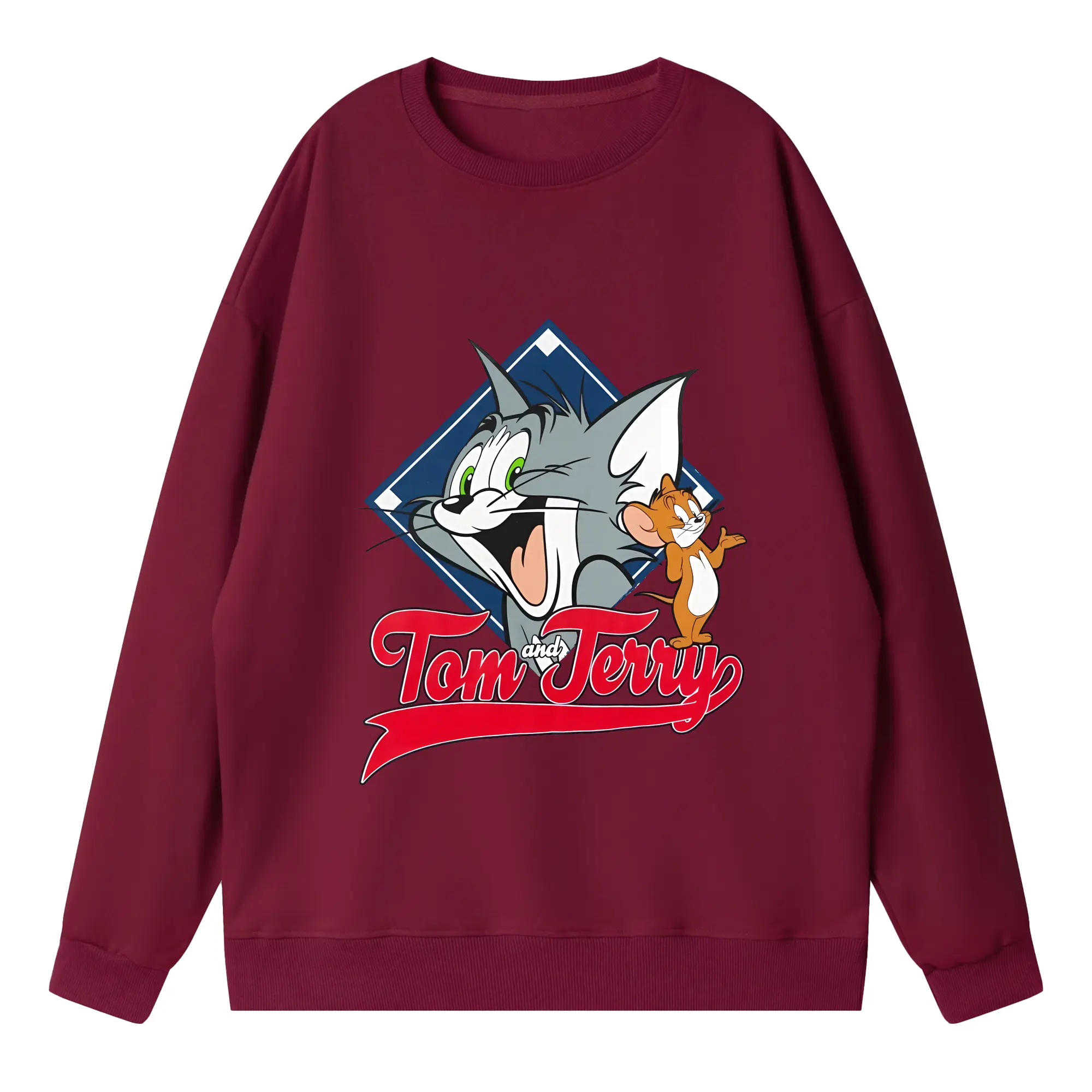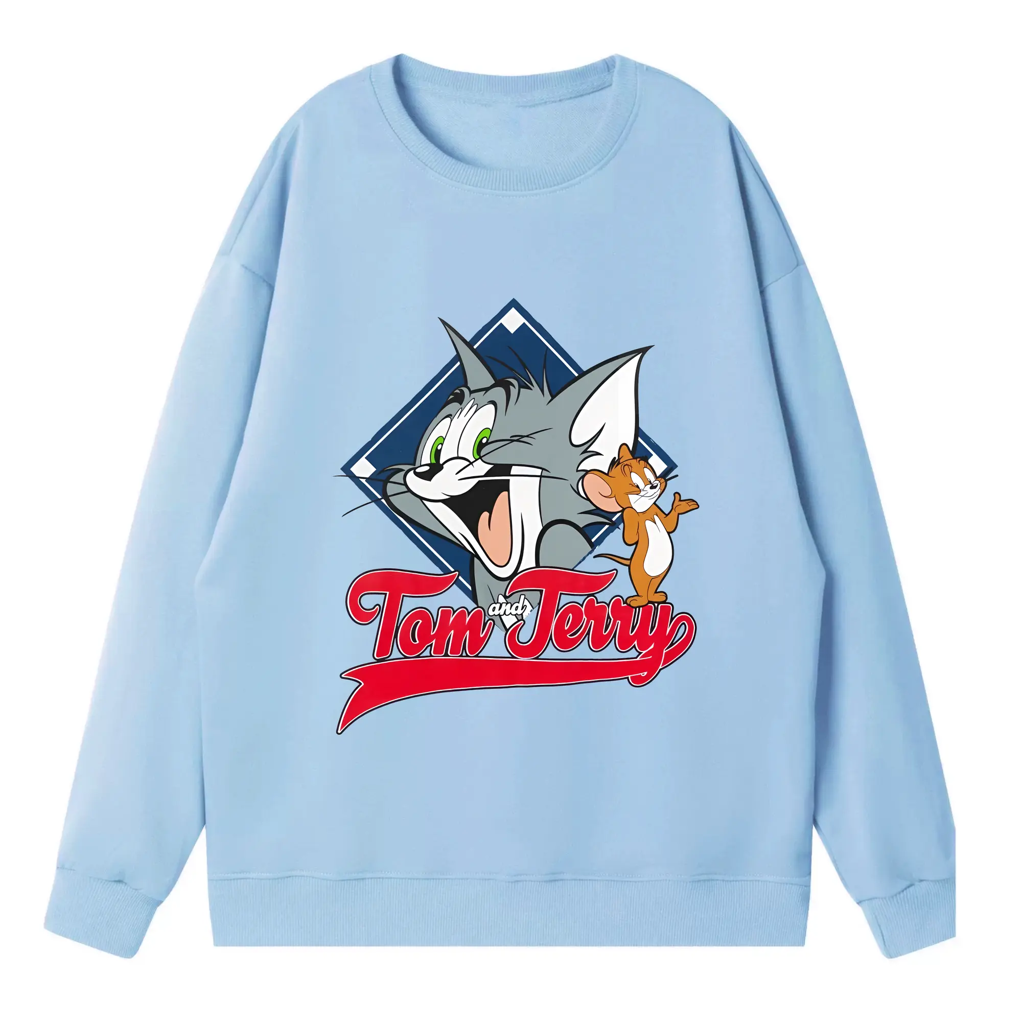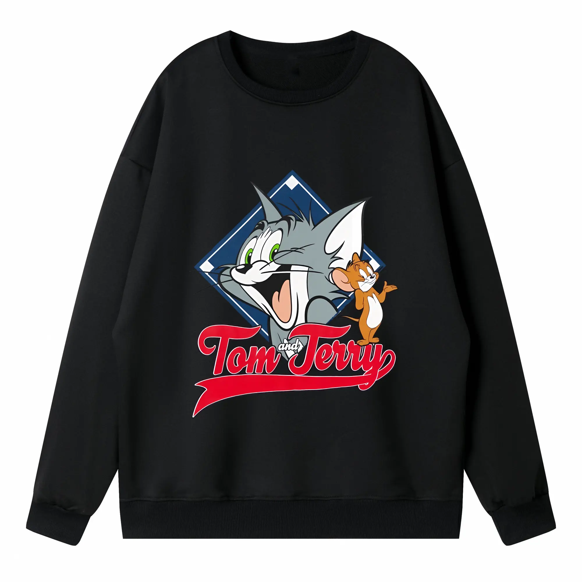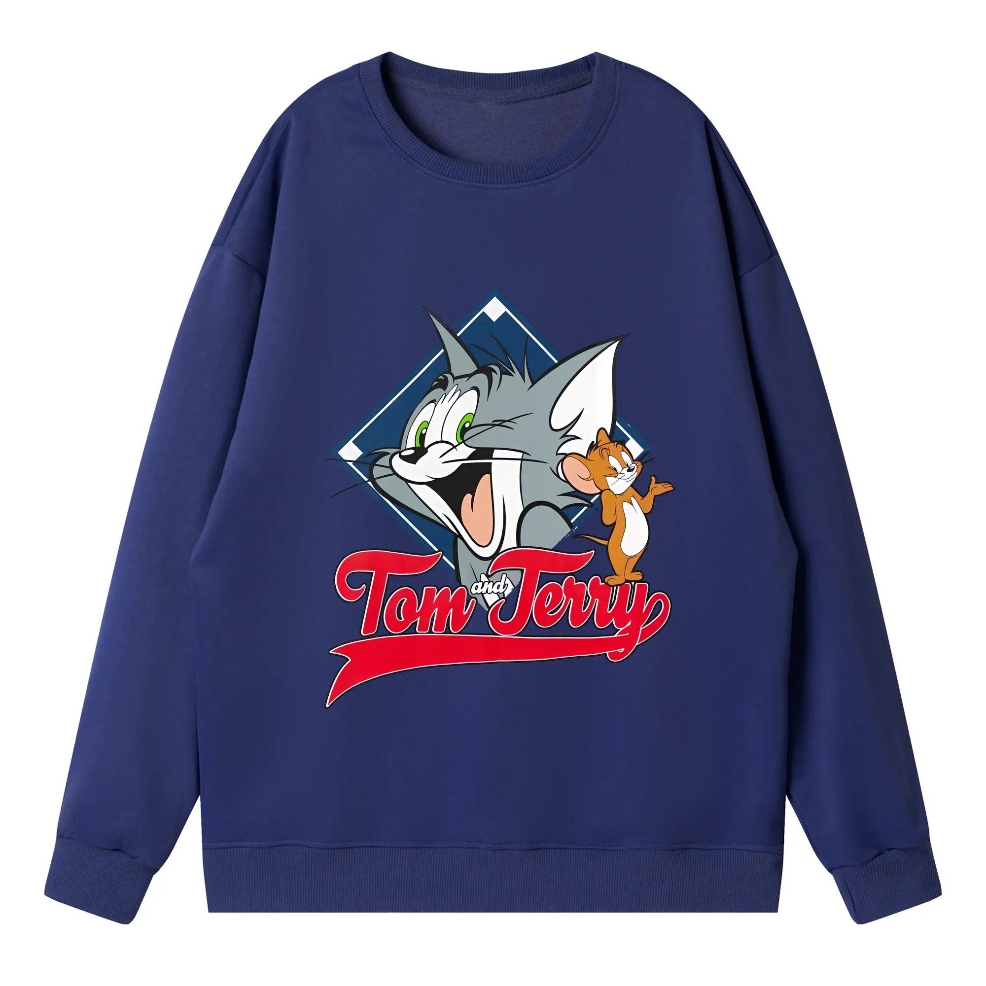 トムとジェリー グッズ トム - 高品質 クルーネック スウェット ・ コットン59% ポリエステル41% ・ ユニセックス 長袖 トレーナー ・ カジュアル デイリー スポーツ 散歩用