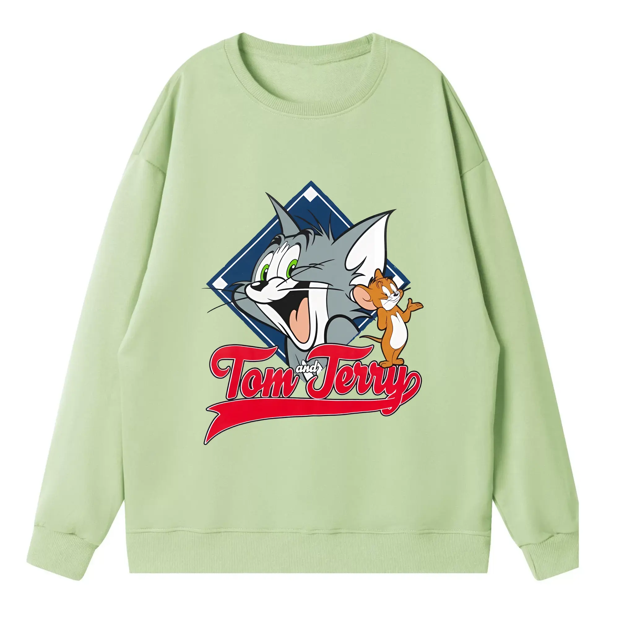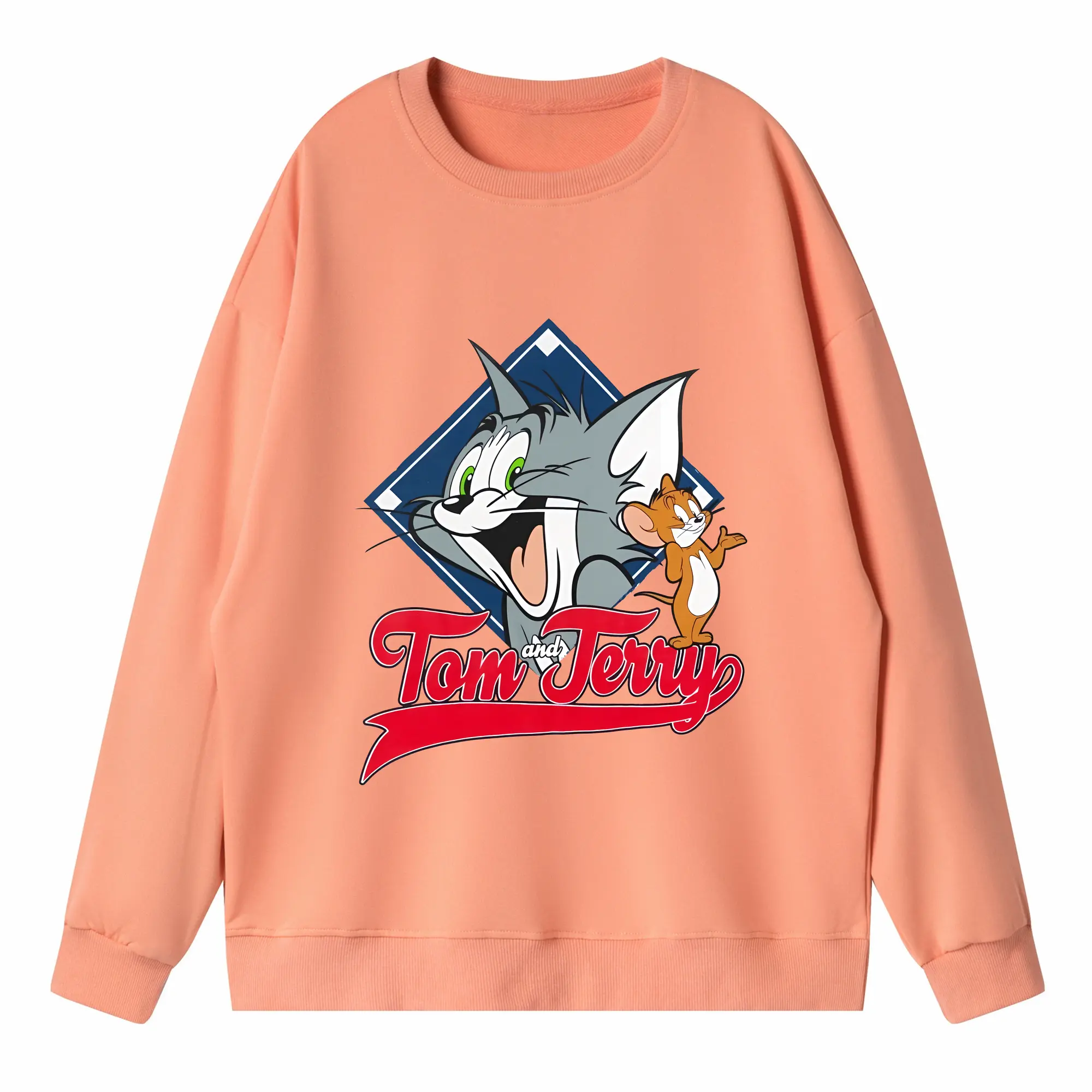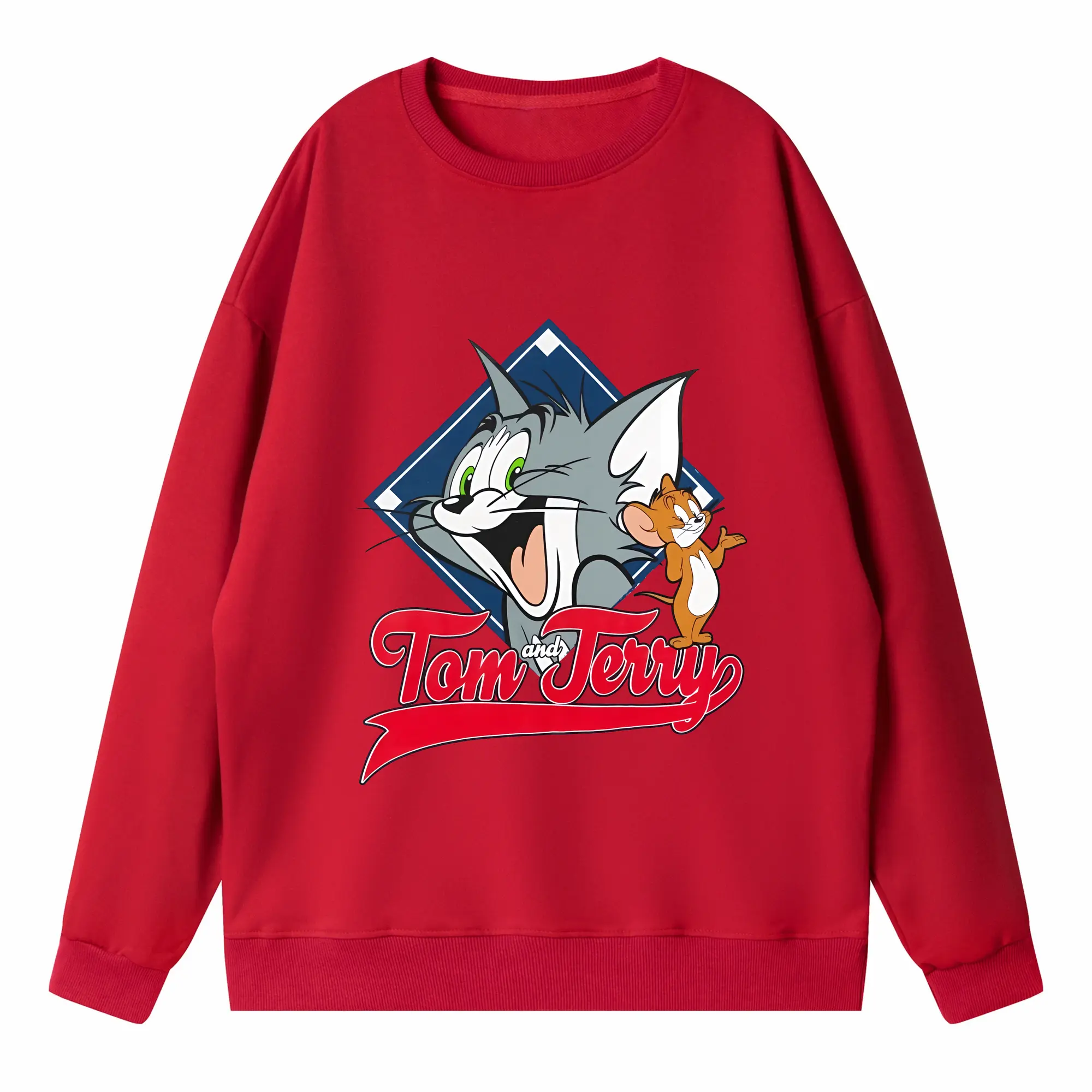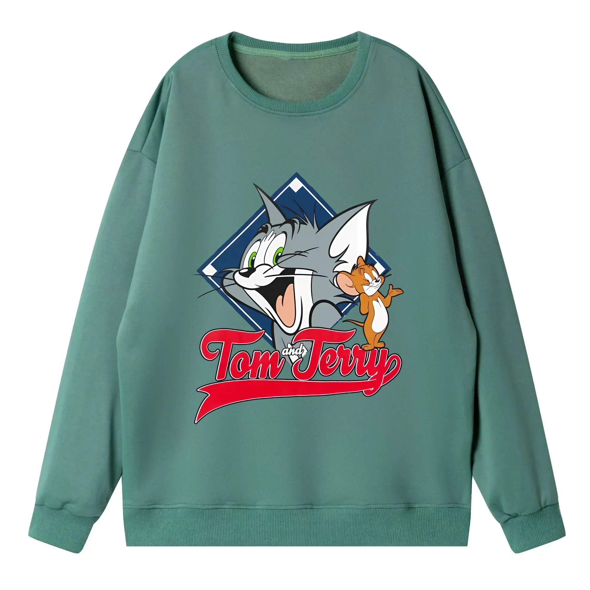 トムとジェリー グッズ トム - 高品質 クルーネック スウェット ・ コットン59% ポリエステル41% ・ ユニセックス 長袖 トレーナー ・ カジュアル デイリー スポーツ 散歩用
