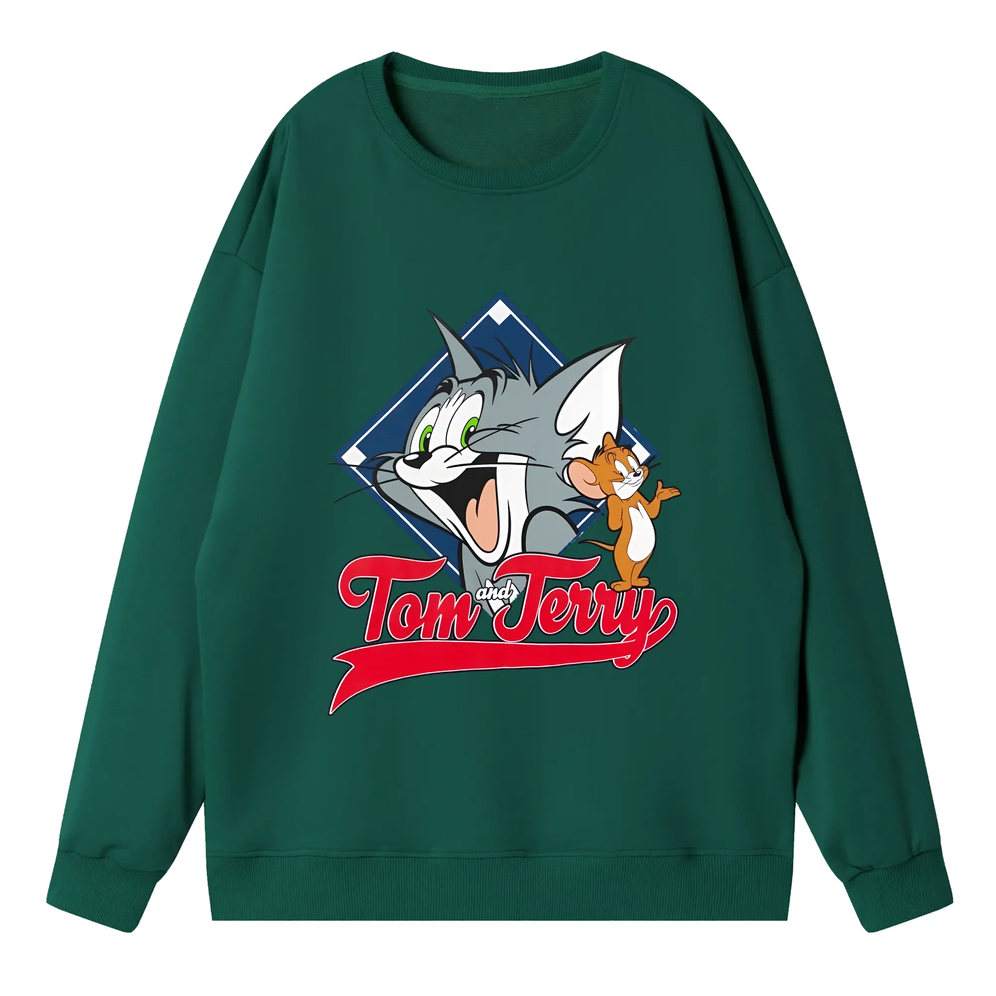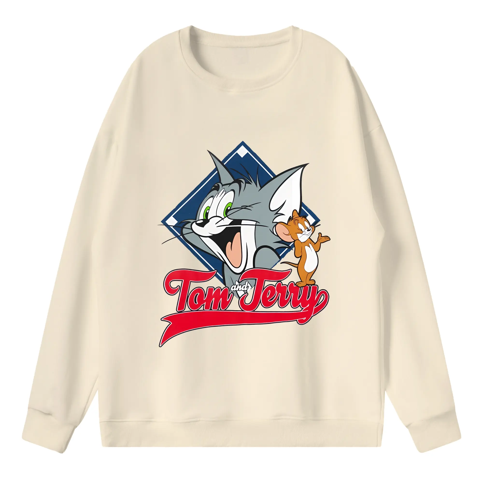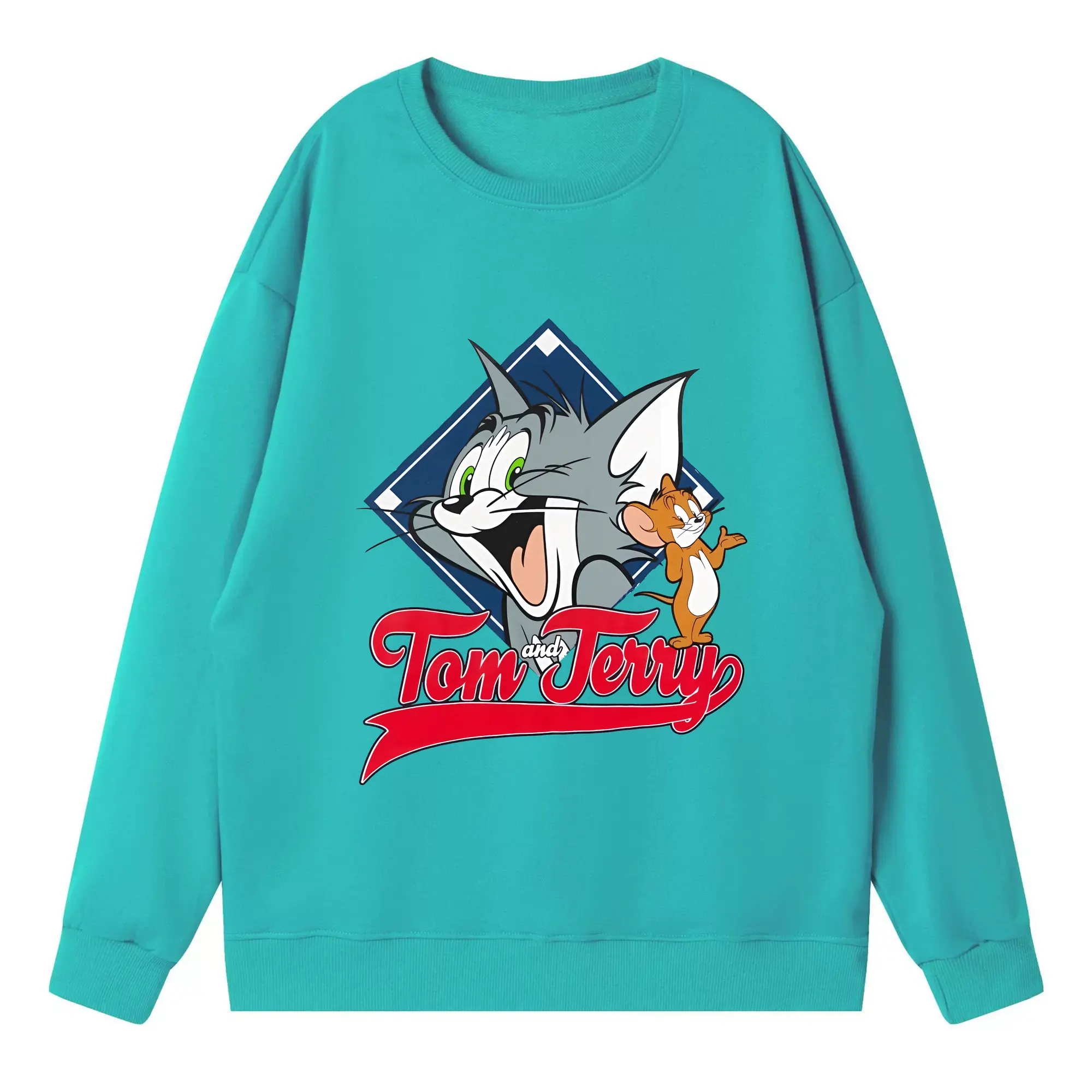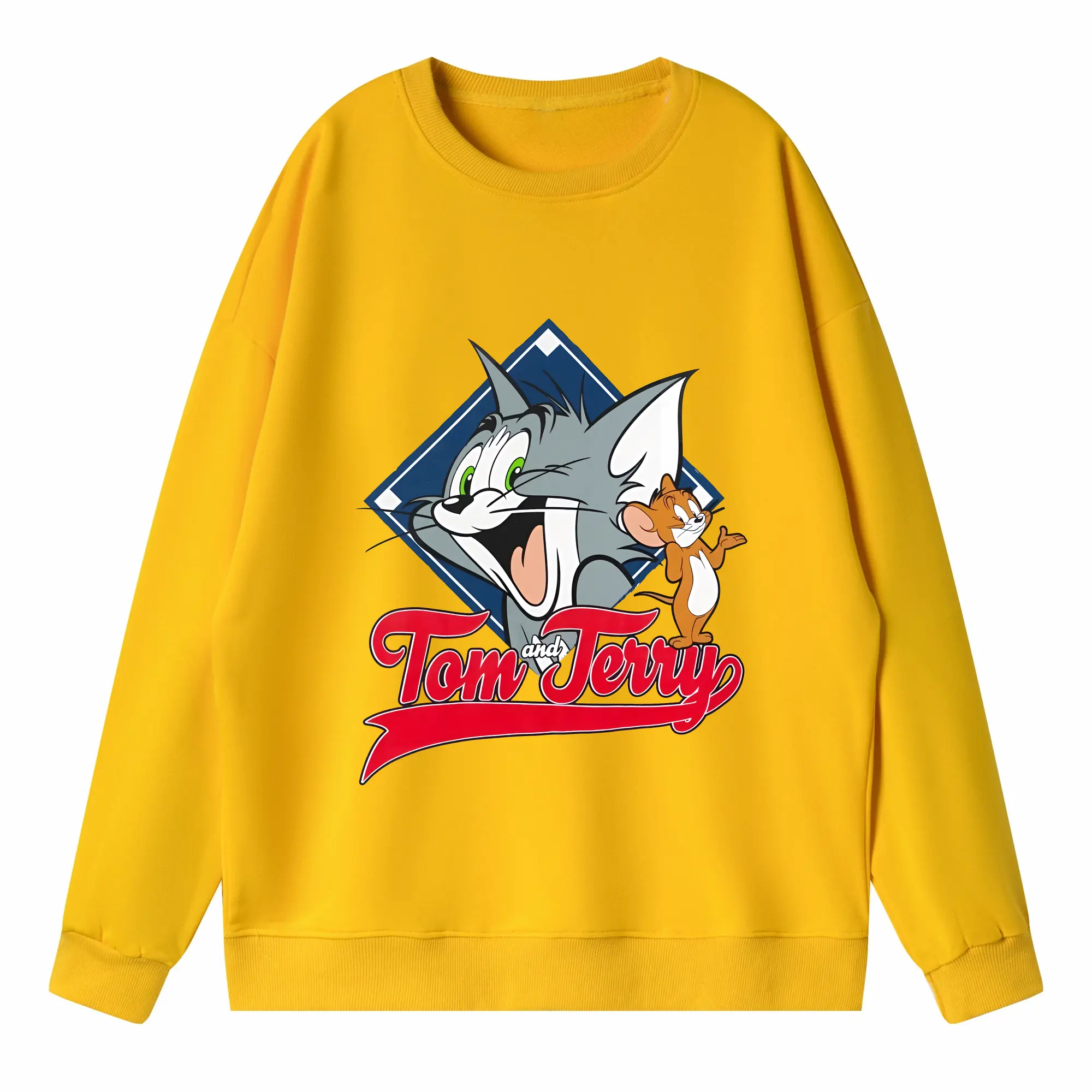 トムとジェリー グッズ トム - 高品質 クルーネック スウェット ・ コットン59% ポリエステル41% ・ ユニセックス 長袖 トレーナー ・ カジュアル デイリー スポーツ 散歩用