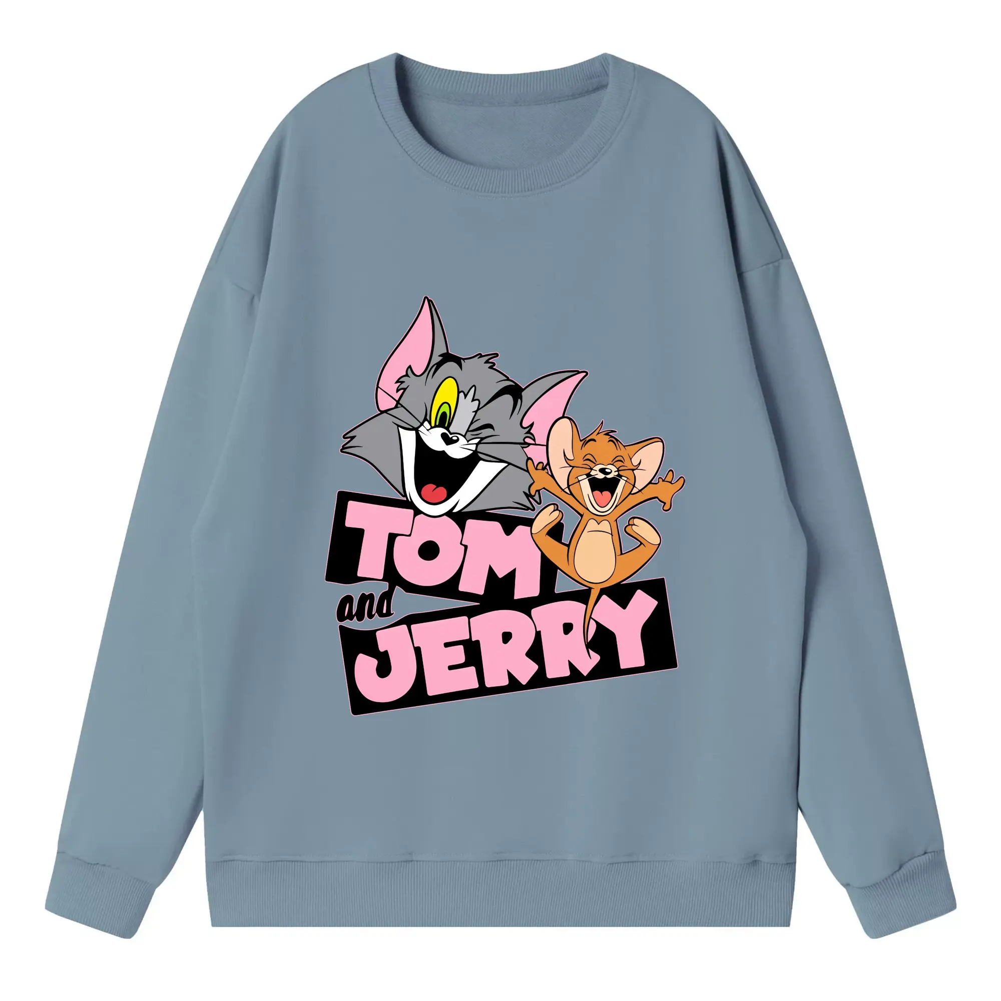 トムとジェリー グッズ トム - 高品質 クルーネック スウェット ・ コットン59% ポリエステル41% ・ ユニセックス 長袖 トレーナー ・ カジュアル デイリー スポーツ 散歩用