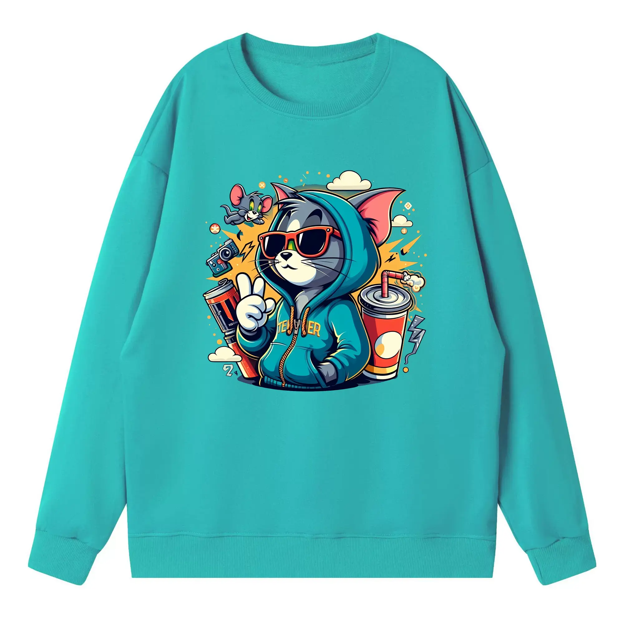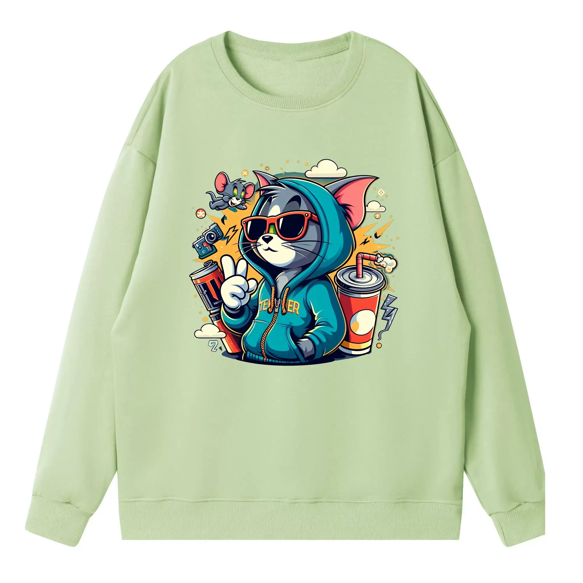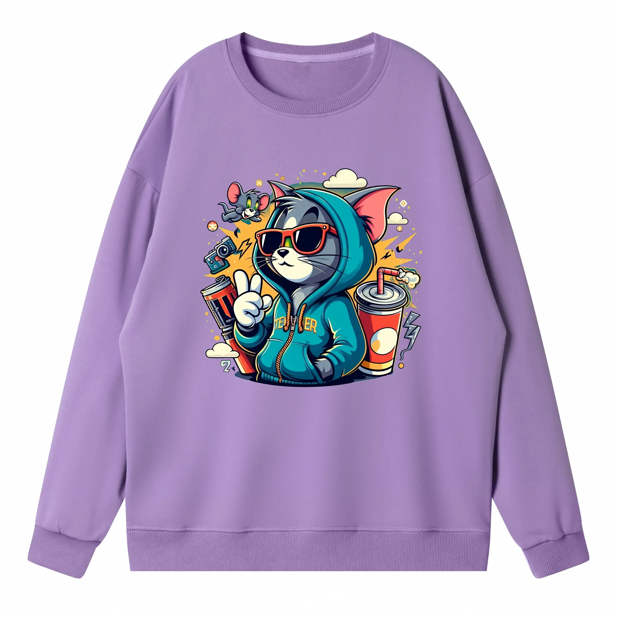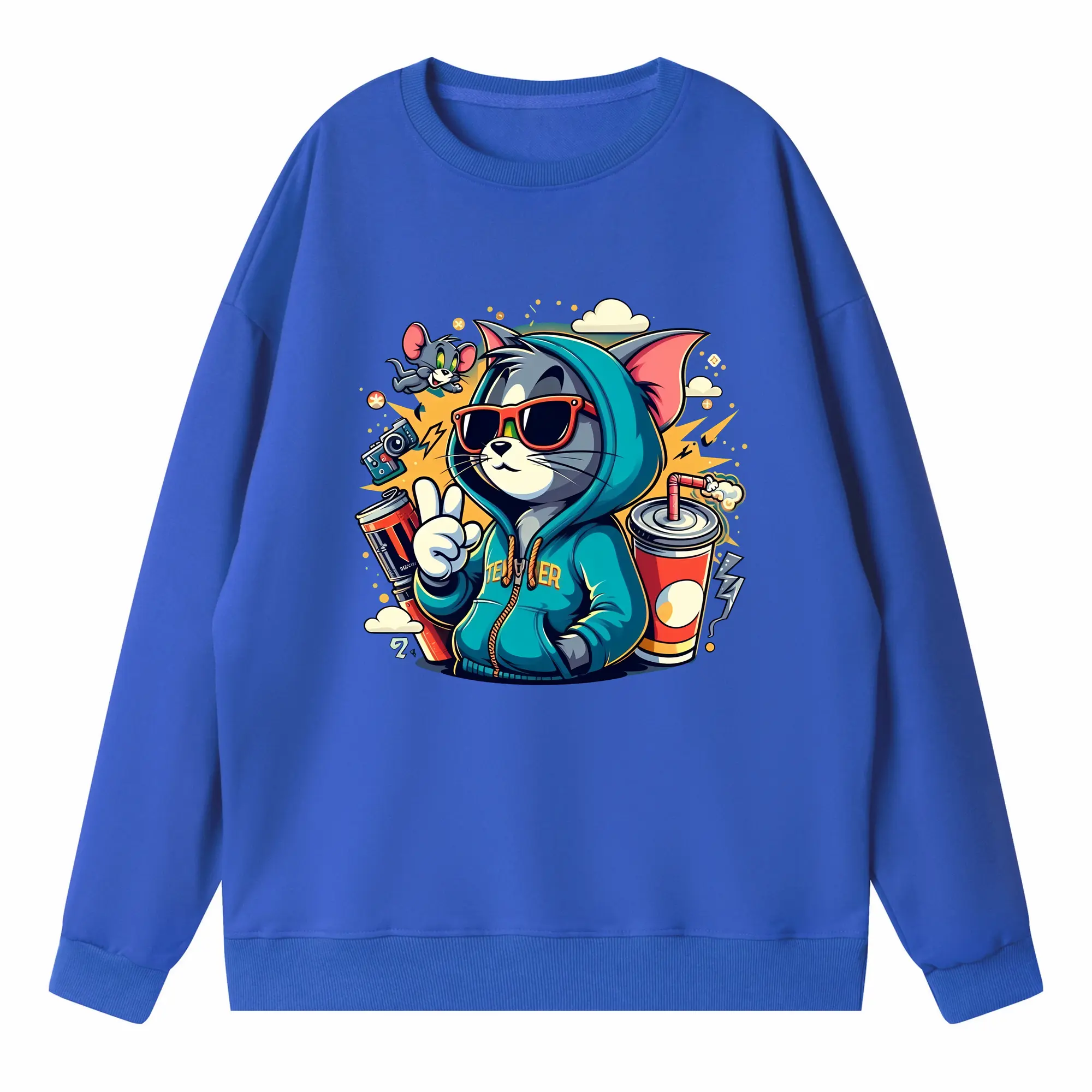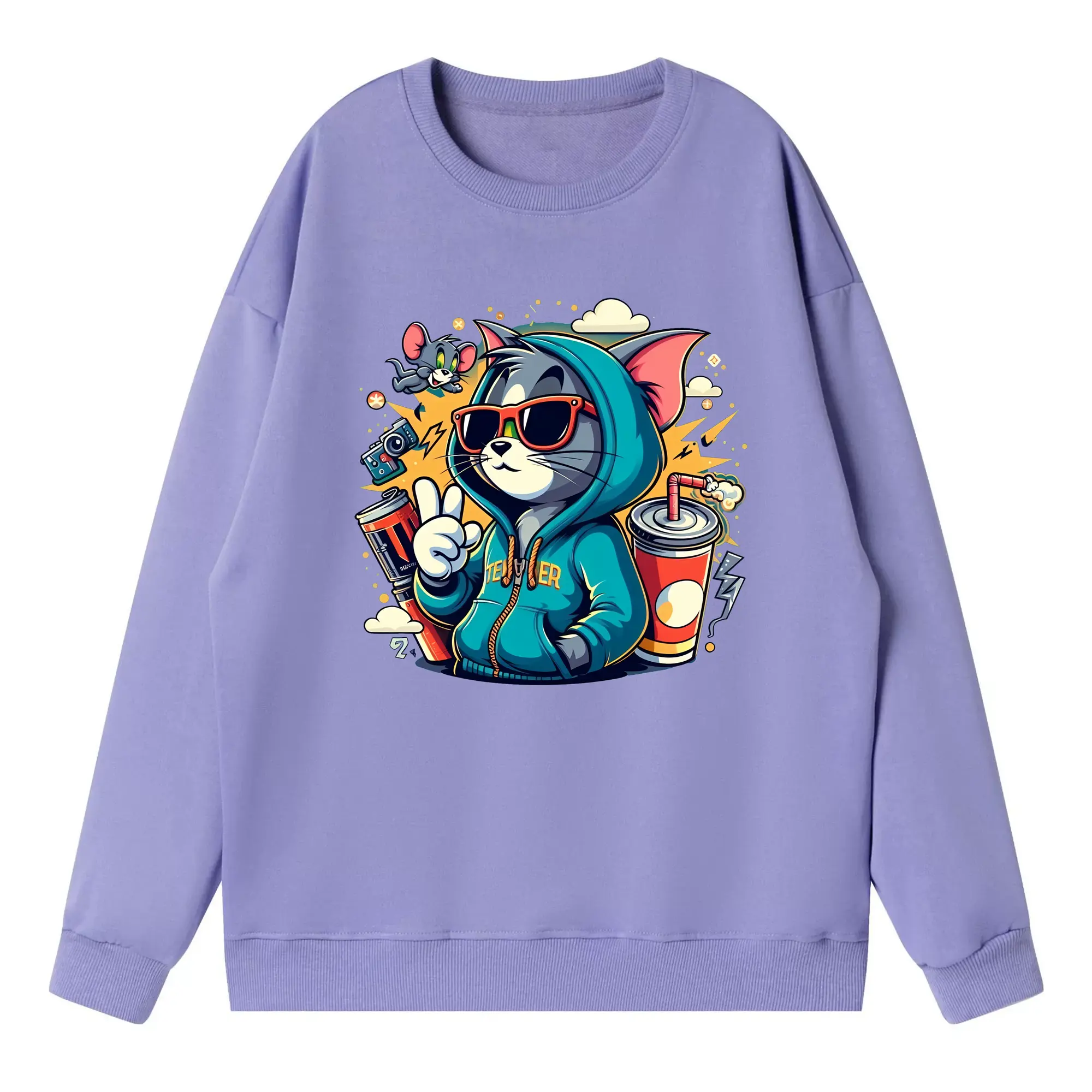 トムとジェリー グッズ トム - 高品質 クルーネック スウェット ・ コットン59% ポリエステル41% ・ ユニセックス 長袖 トレーナー ・ カジュアル デイリー スポーツ 散歩用