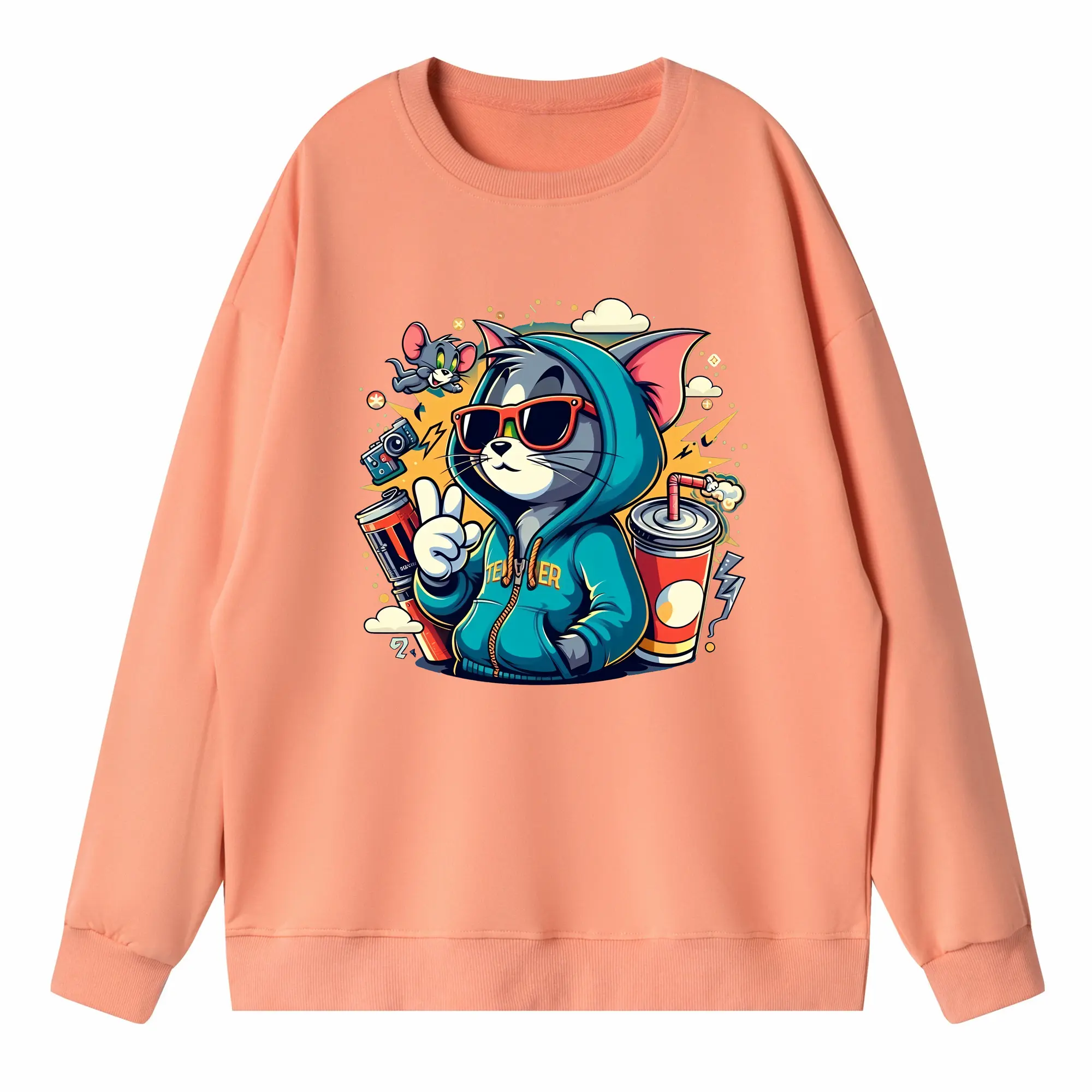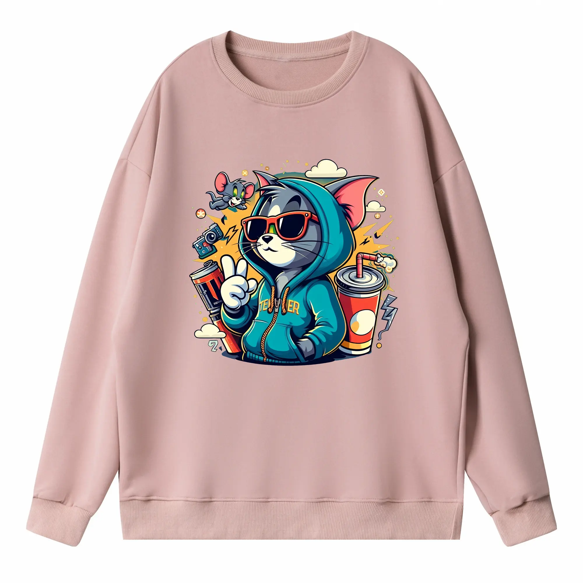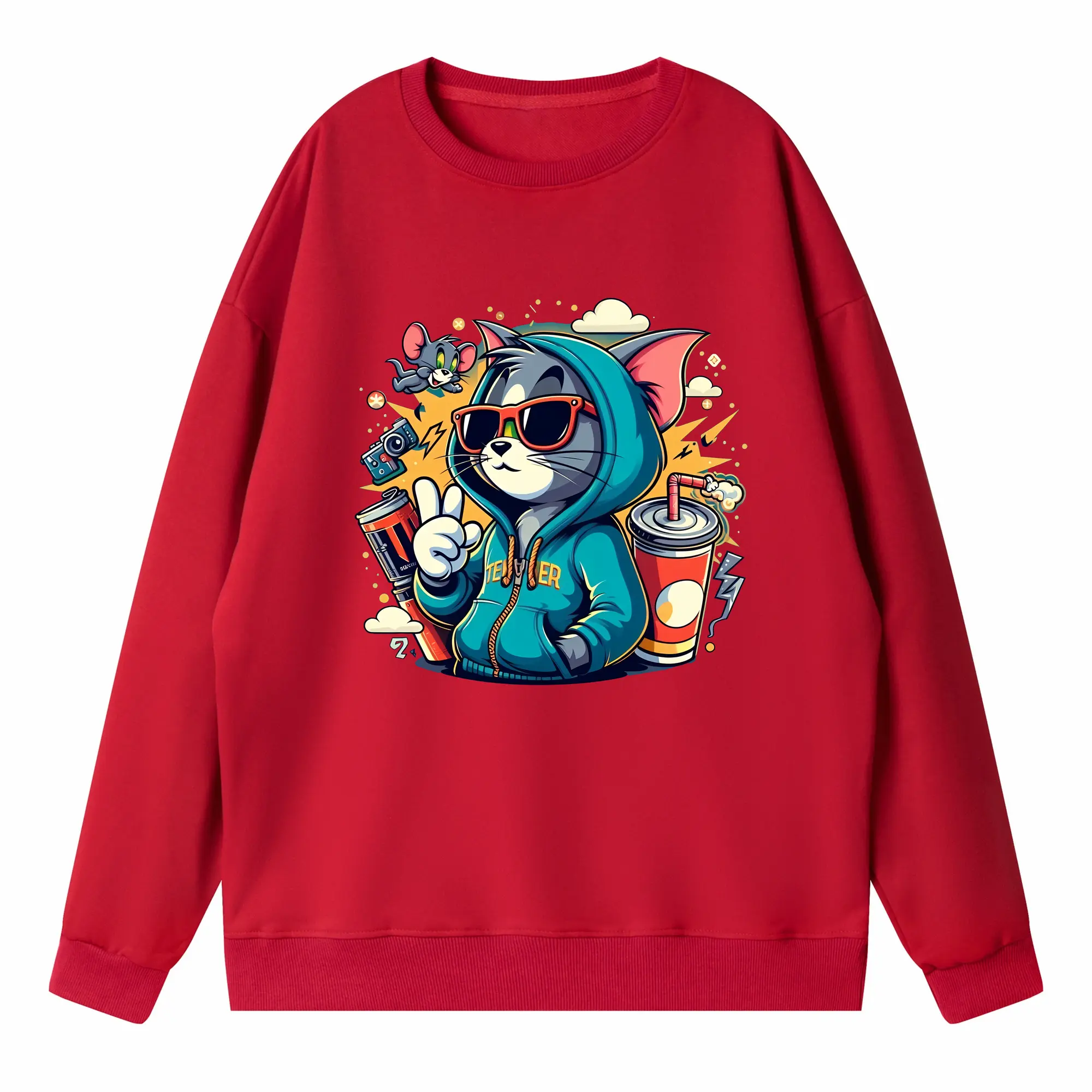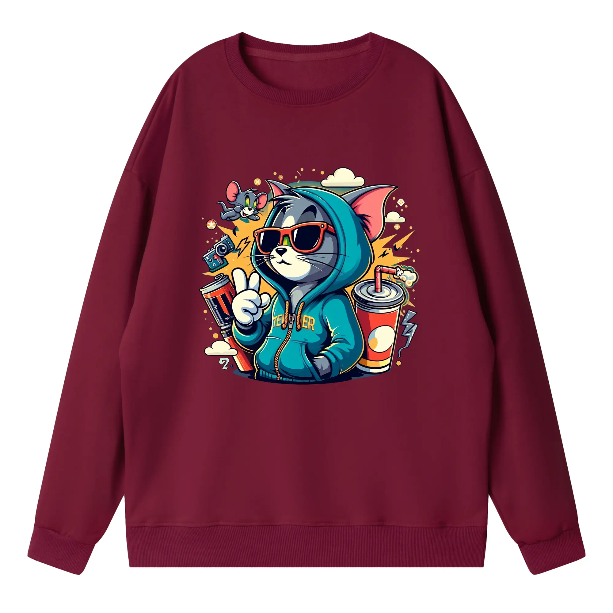 トムとジェリー グッズ トム - 高品質 クルーネック スウェット ・ コットン59% ポリエステル41% ・ ユニセックス 長袖 トレーナー ・ カジュアル デイリー スポーツ 散歩用