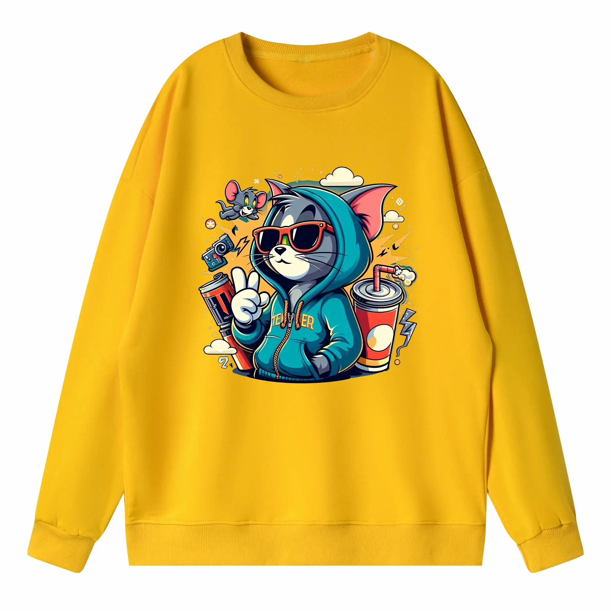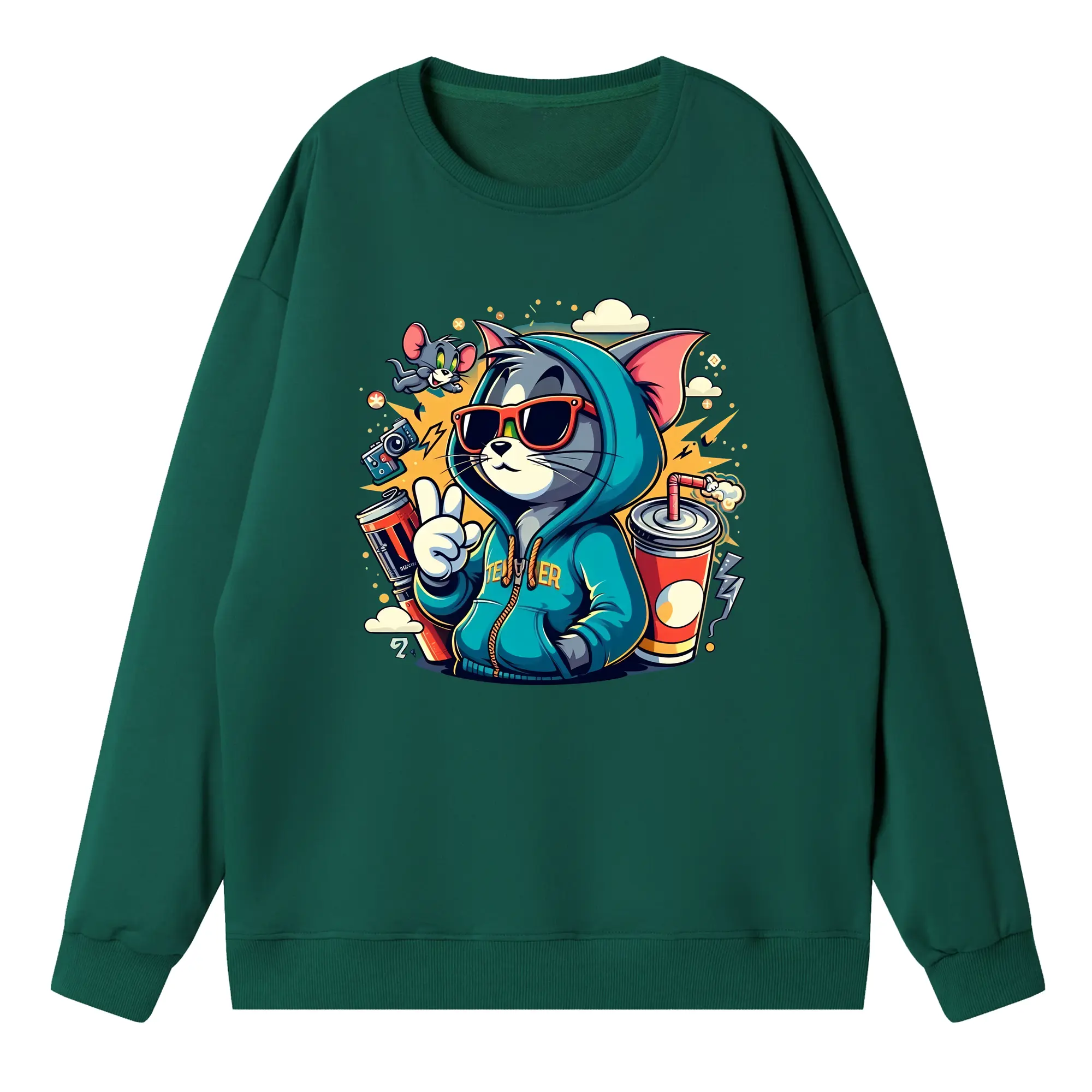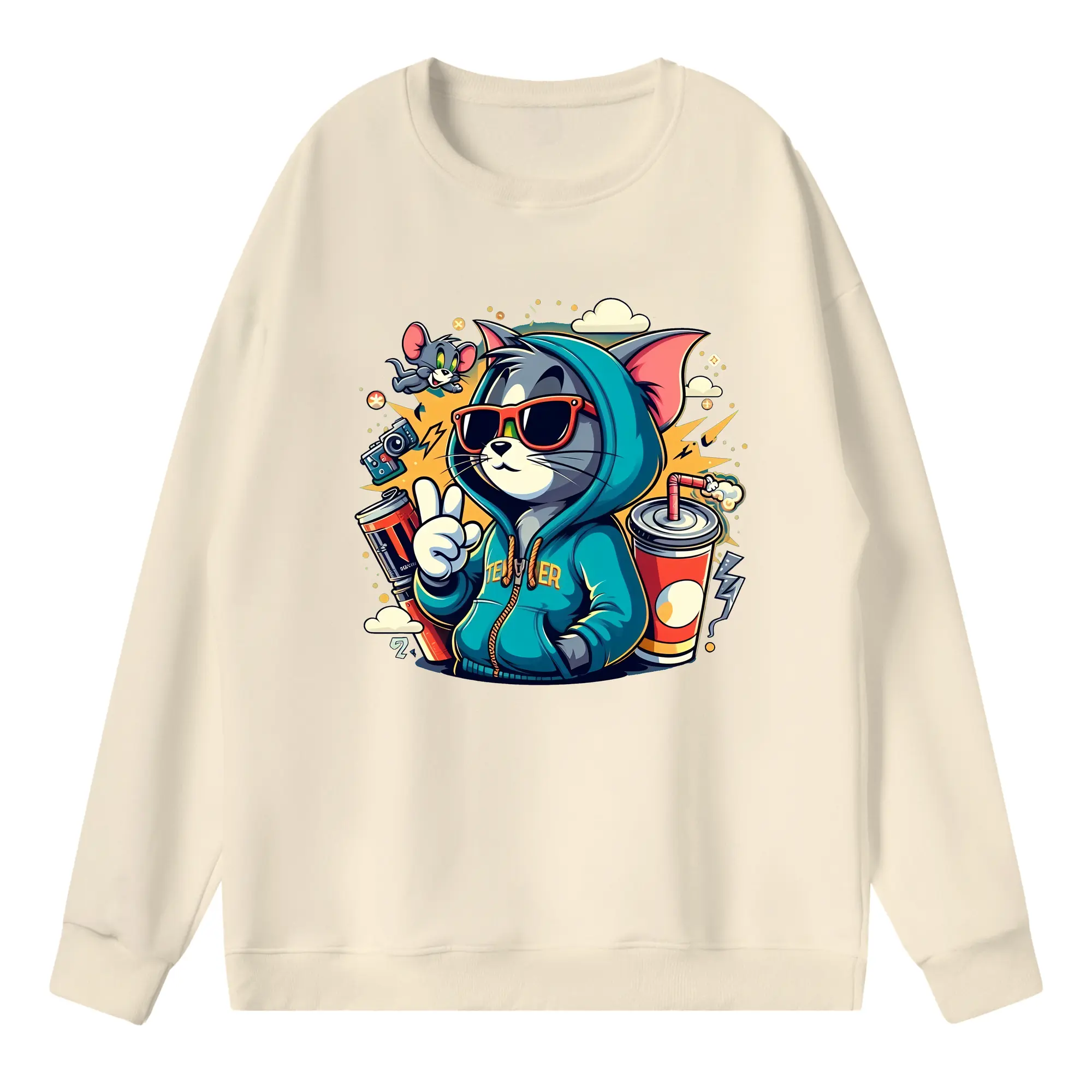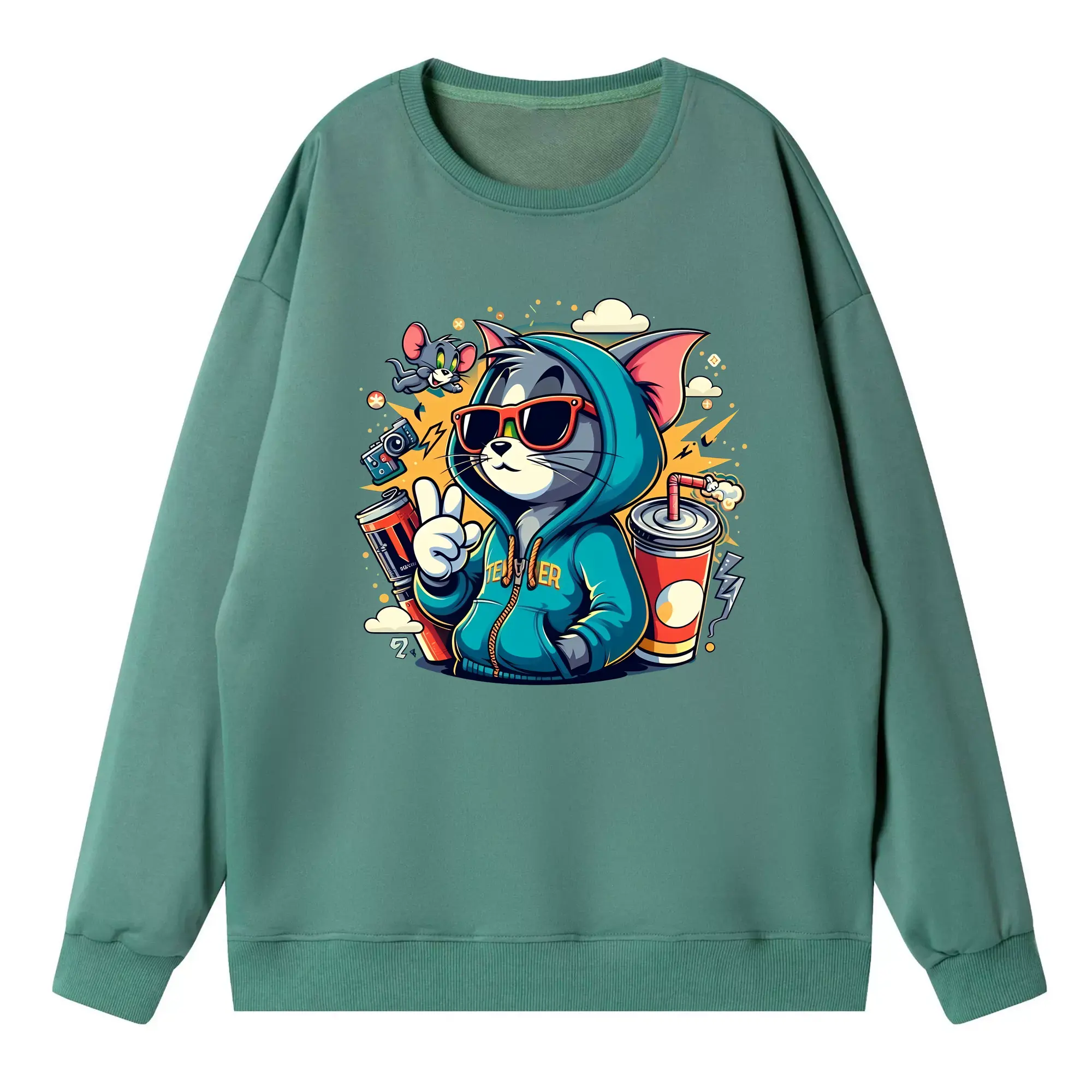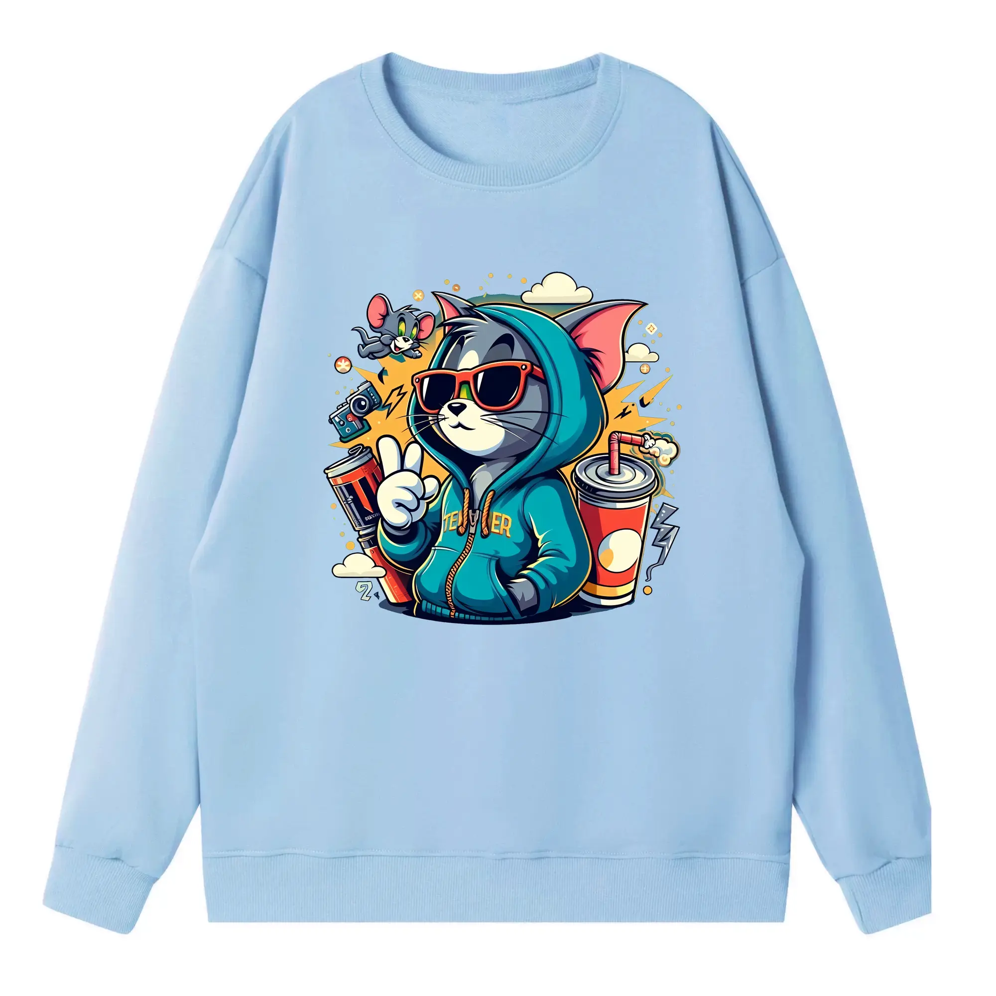 トムとジェリー グッズ トム - 高品質 クルーネック スウェット ・ コットン59% ポリエステル41% ・ ユニセックス 長袖 トレーナー ・ カジュアル デイリー スポーツ 散歩用
