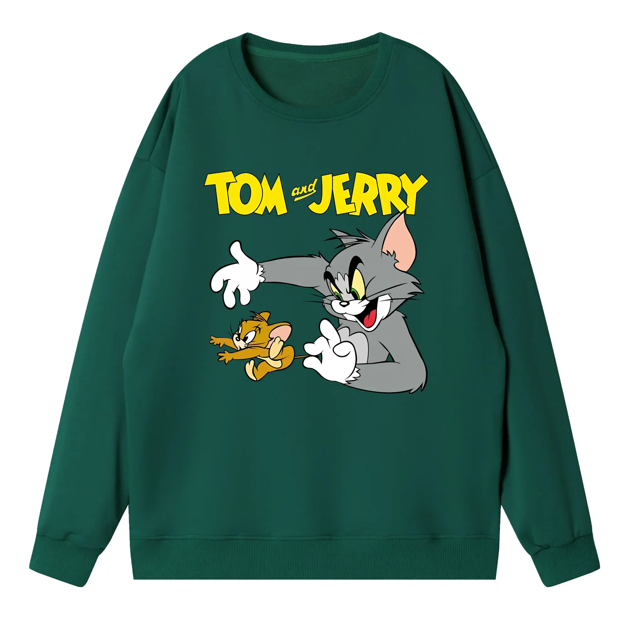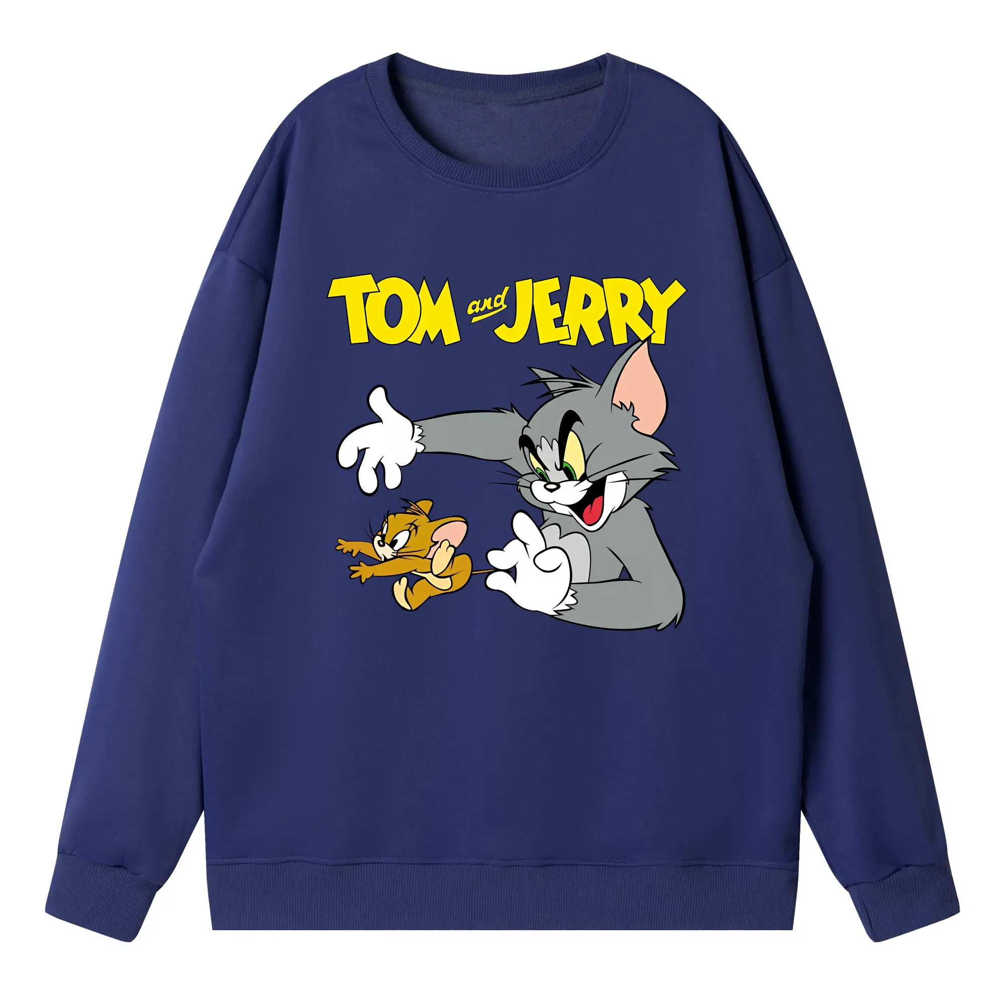 トムとジェリー グッズ トム - 高品質 クルーネック スウェット ・ コットン59% ポリエステル41% ・ ユニセックス 長袖 トレーナー ・ カジュアル デイリー スポーツ 散歩用