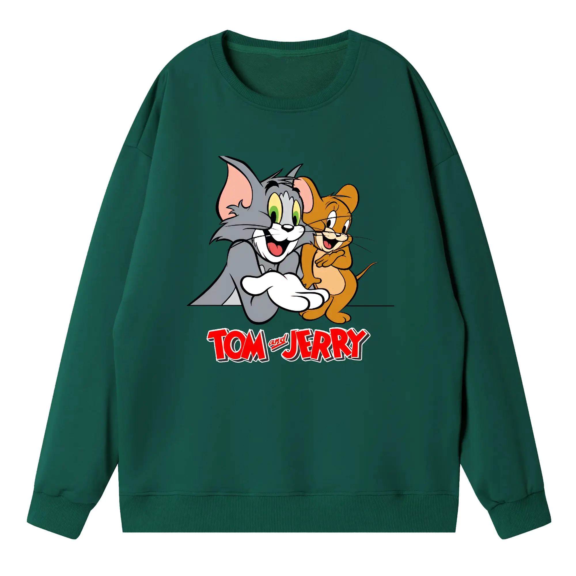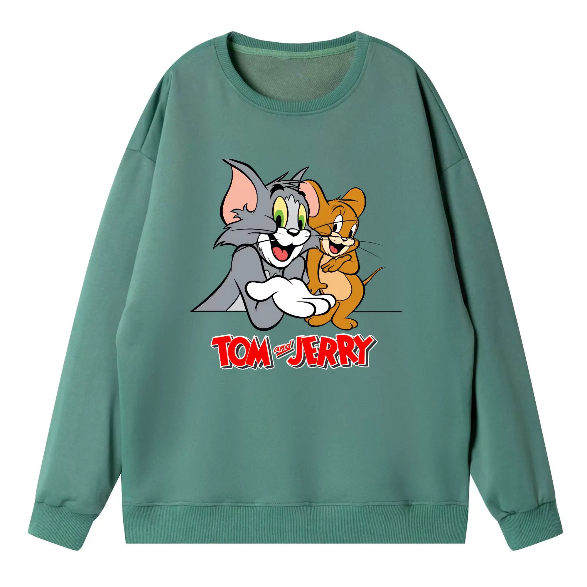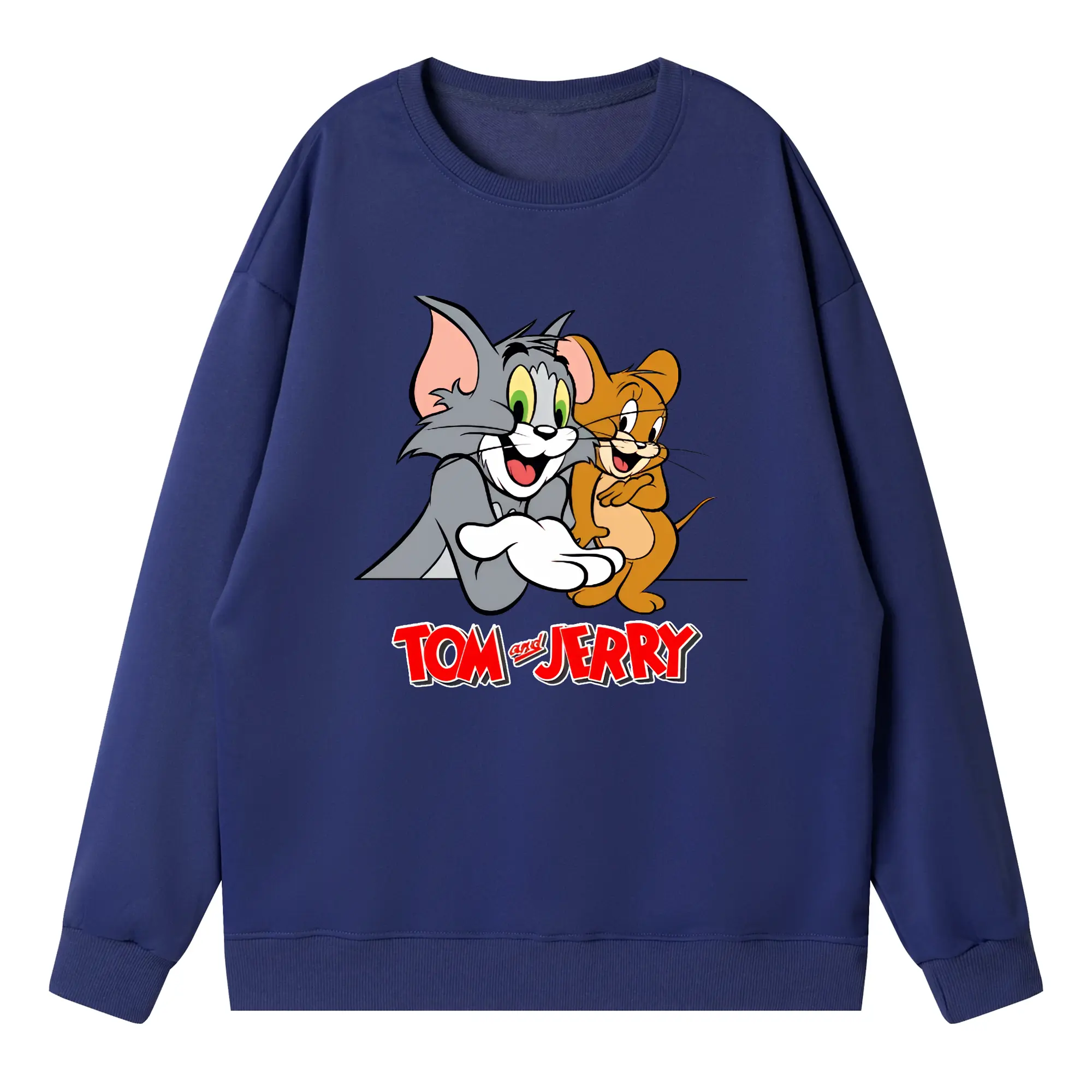 トムとジェリー グッズ トム - 高品質 クルーネック スウェット ・ コットン59% ポリエステル41% ・ ユニセックス 長袖 トレーナー ・ カジュアル デイリー スポーツ 散歩用