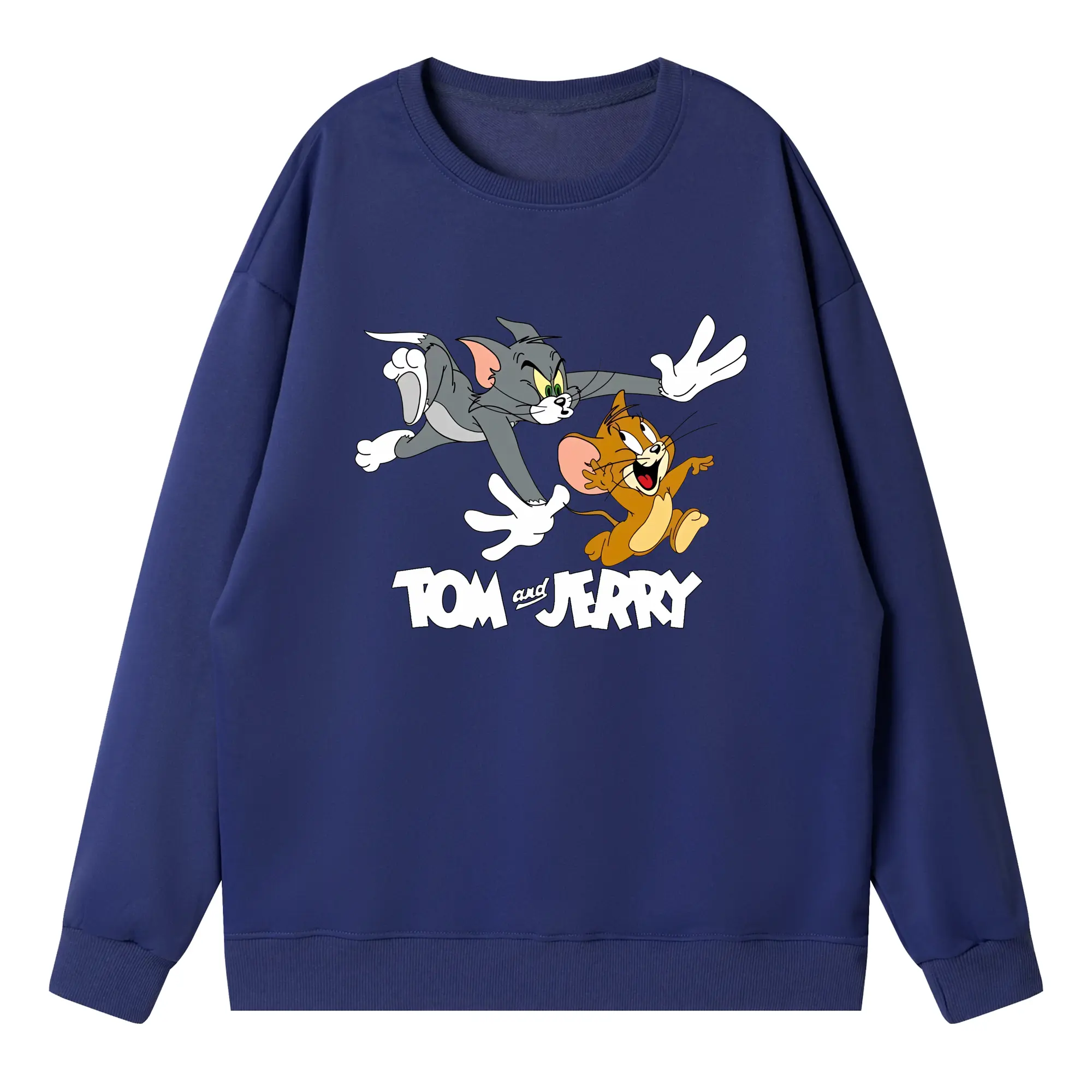 トムとジェリー グッズ トム - 高品質 クルーネック スウェット ・ コットン59% ポリエステル41% ・ ユニセックス 長袖 トレーナー ・ カジュアル デイリー スポーツ 散歩用