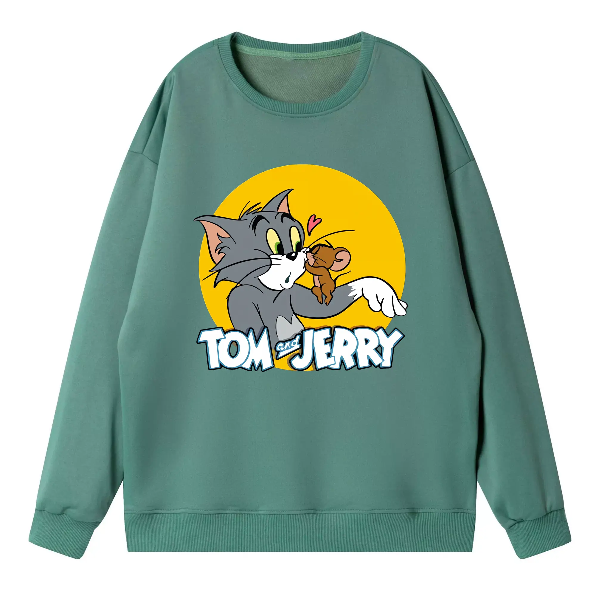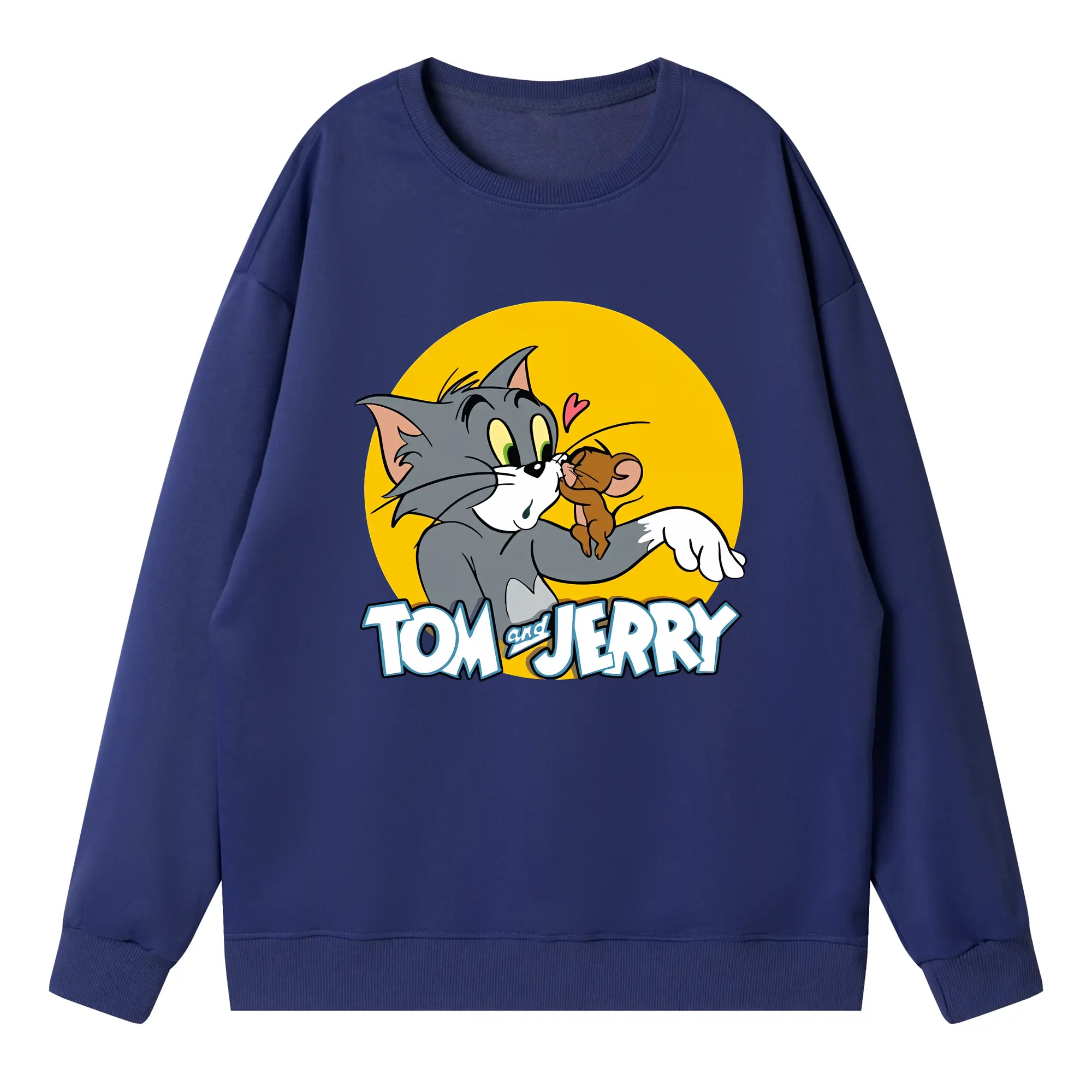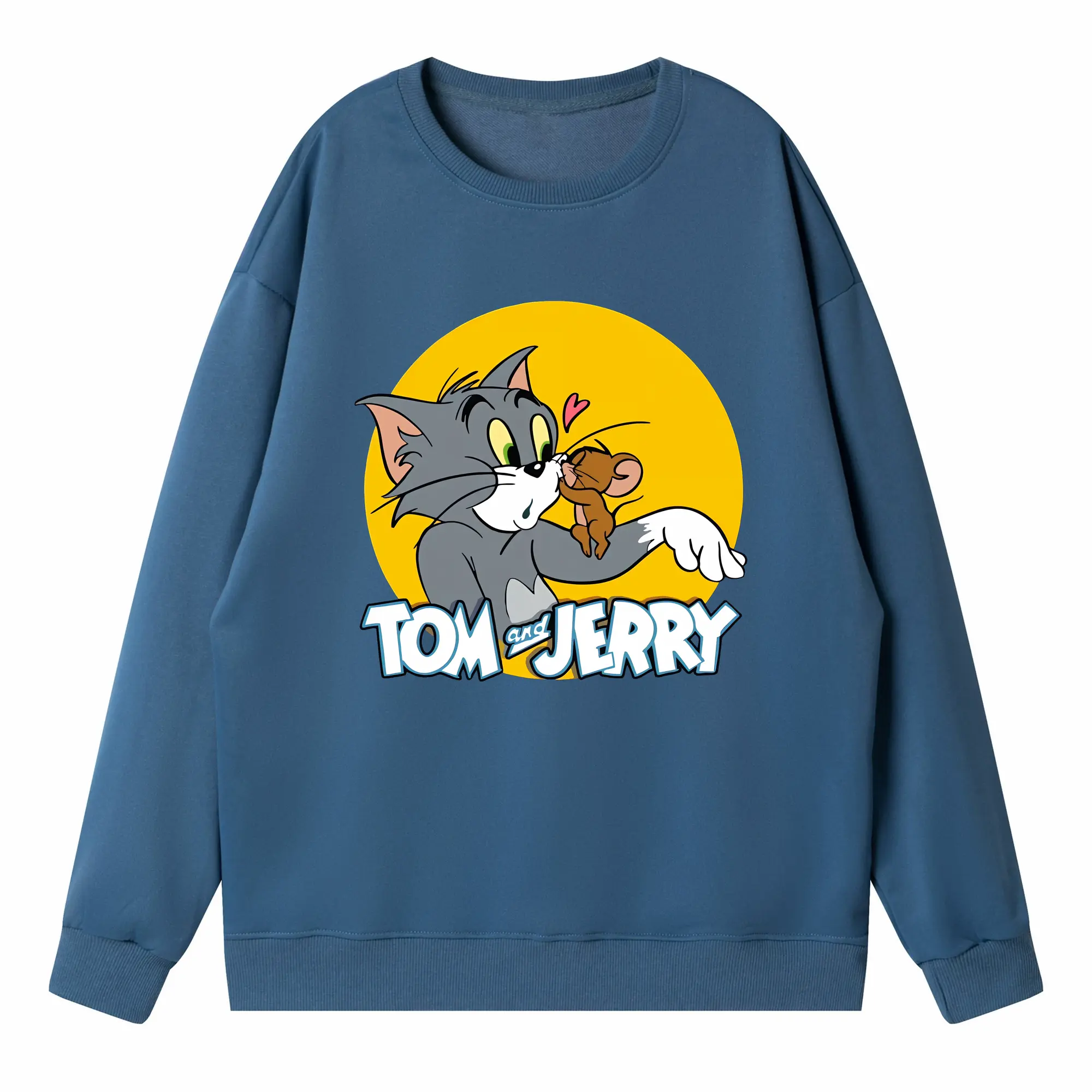 トムとジェリー グッズ トム - 高品質 クルーネック スウェット ・ コットン59% ポリエステル41% ・ ユニセックス 長袖 トレーナー ・ カジュアル デイリー スポーツ 散歩用