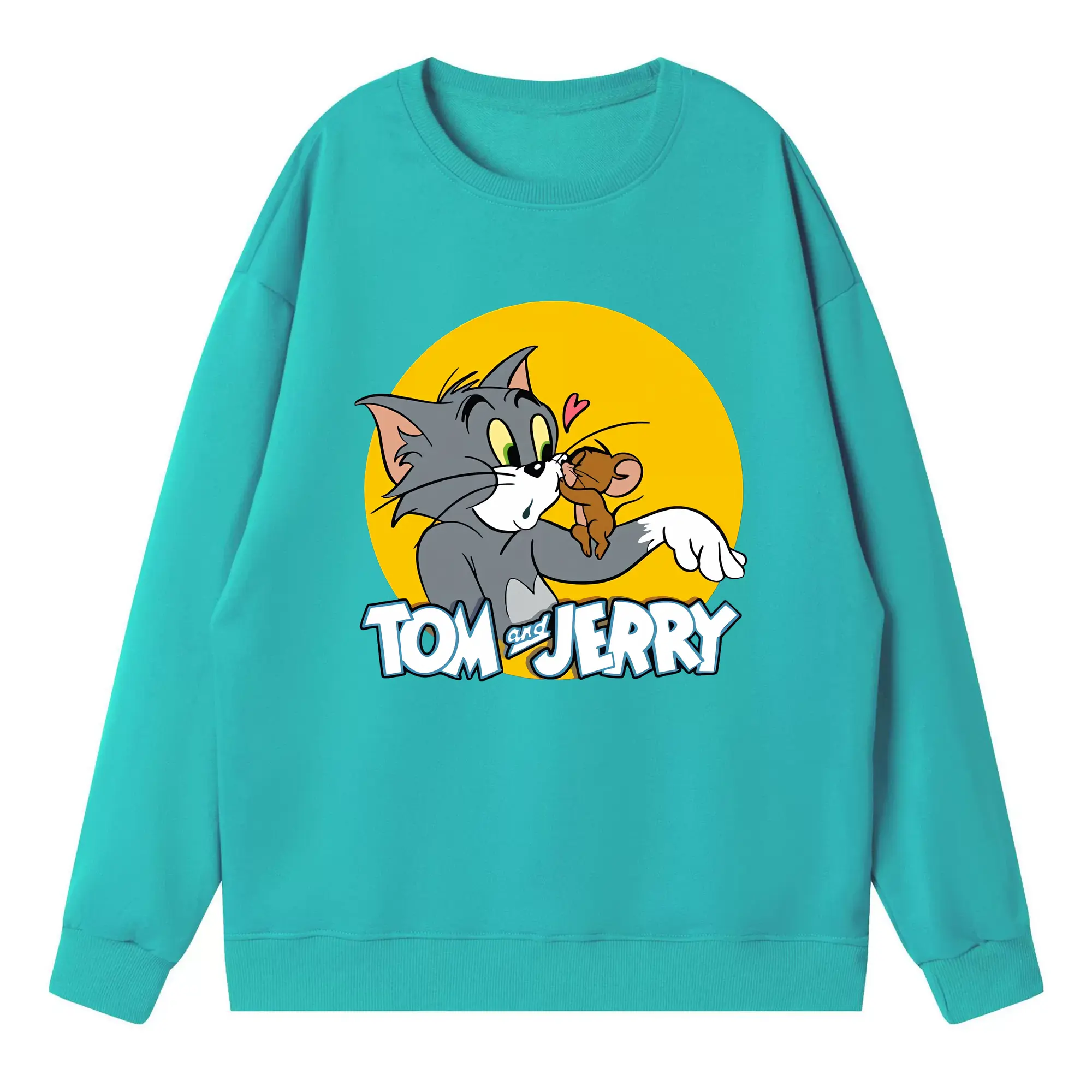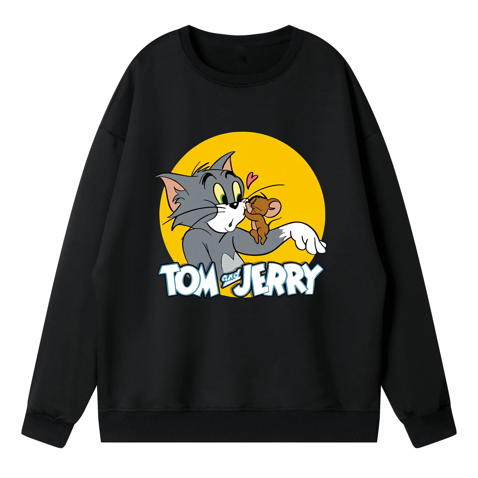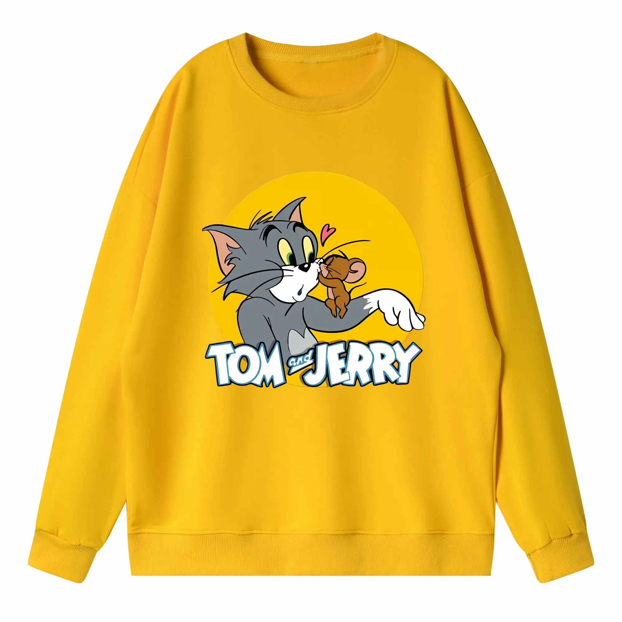 トムとジェリー グッズ トム - 高品質 クルーネック スウェット ・ コットン59% ポリエステル41% ・ ユニセックス 長袖 トレーナー ・ カジュアル デイリー スポーツ 散歩用