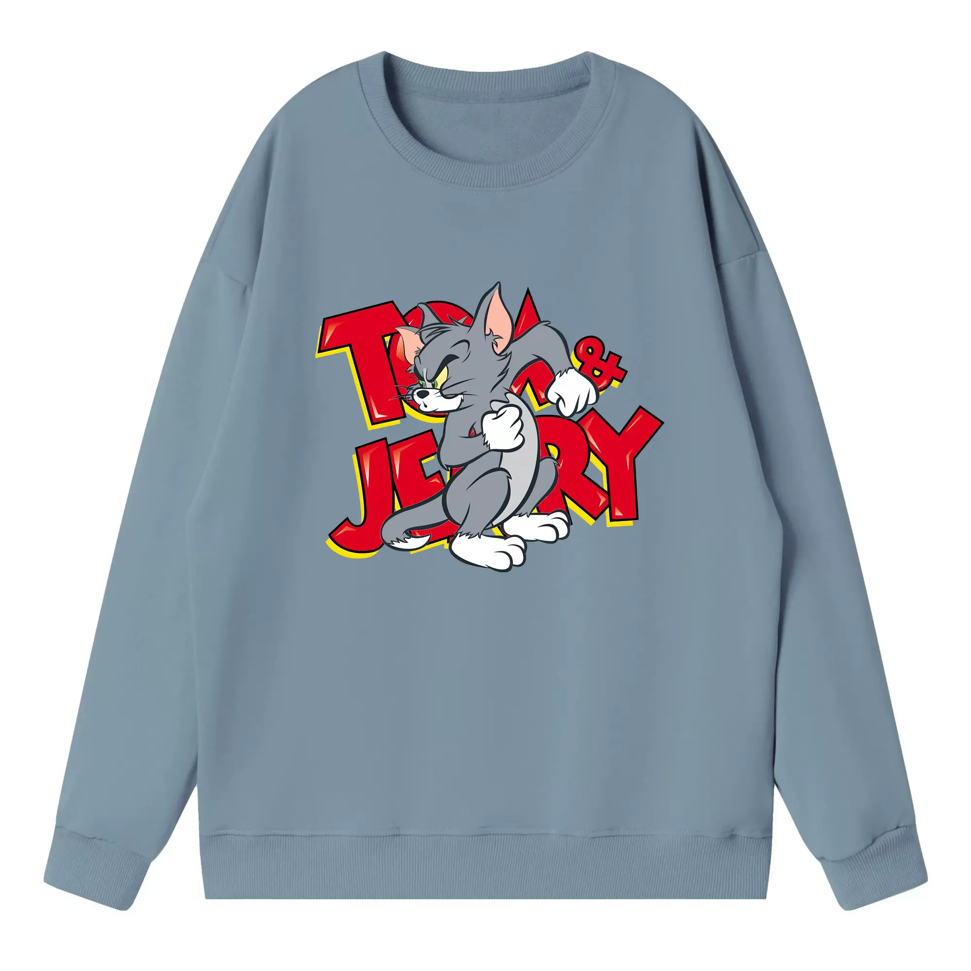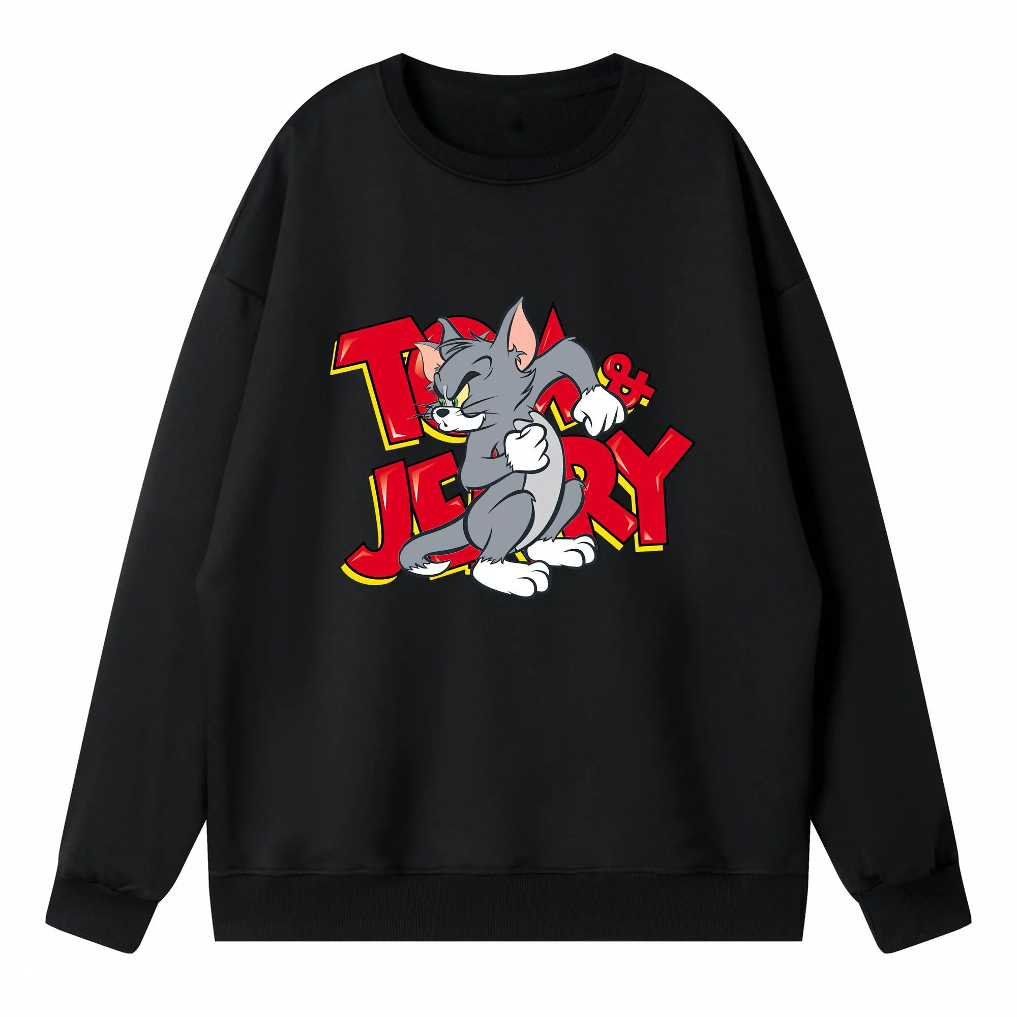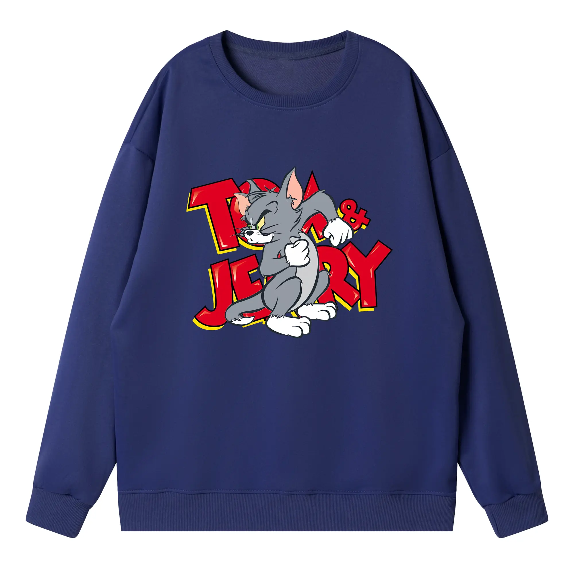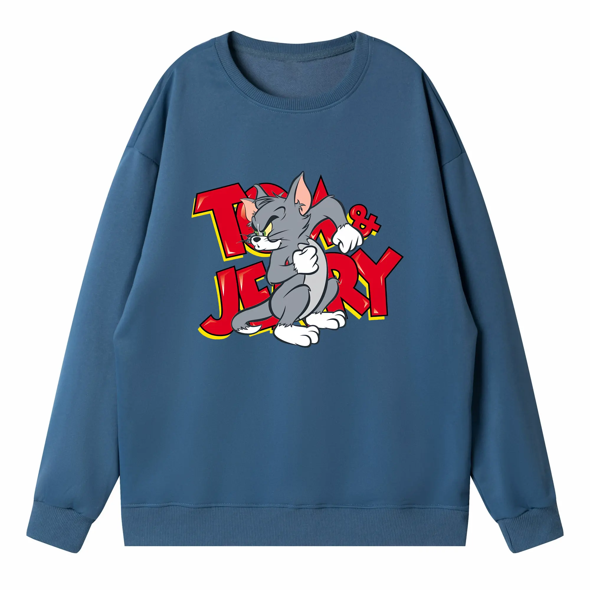 トムとジェリー グッズ トム - 高品質 クルーネック スウェット ・ コットン59% ポリエステル41% ・ ユニセックス 長袖 トレーナー ・ カジュアル デイリー スポーツ 散歩用