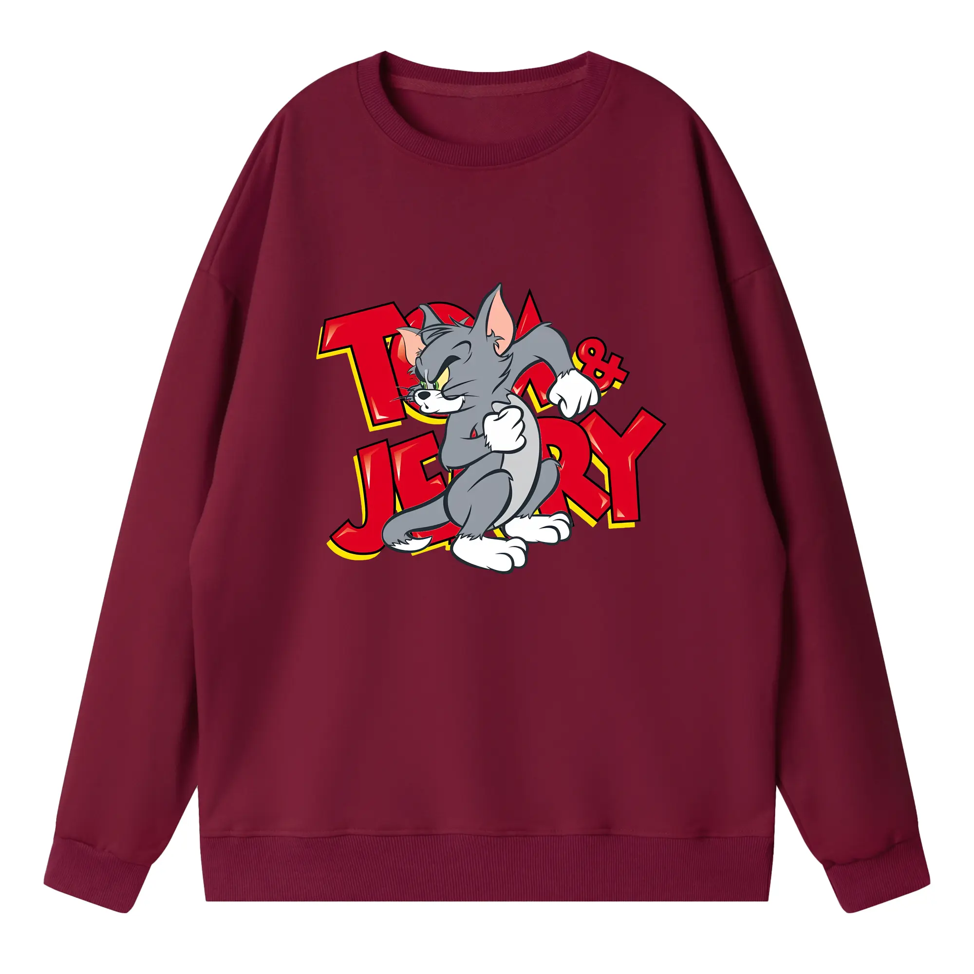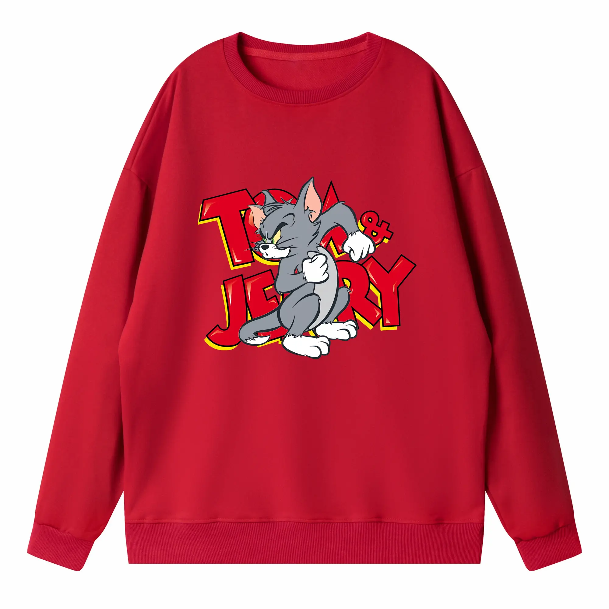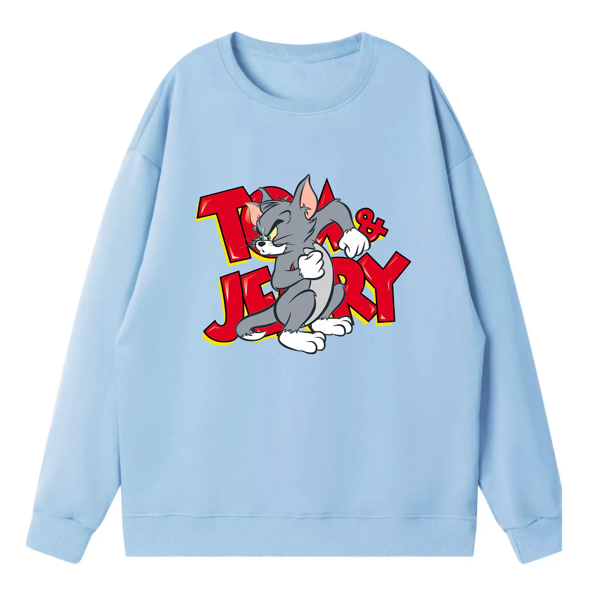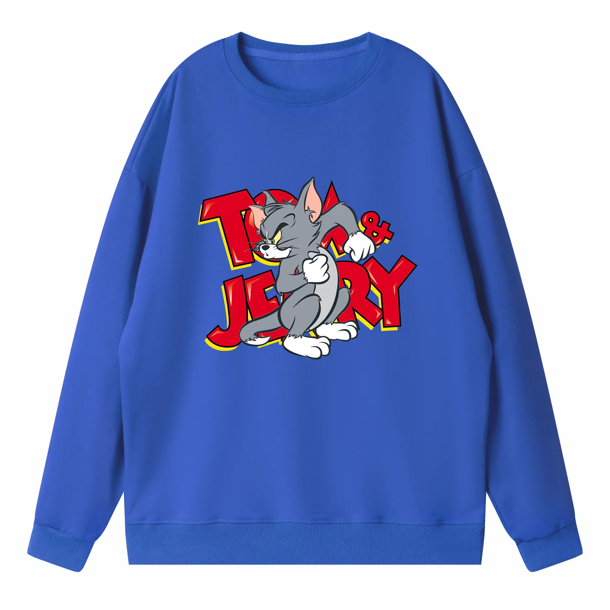 トムとジェリー グッズ トム - 高品質 クルーネック スウェット ・ コットン59% ポリエステル41% ・ ユニセックス 長袖 トレーナー ・ カジュアル デイリー スポーツ 散歩用