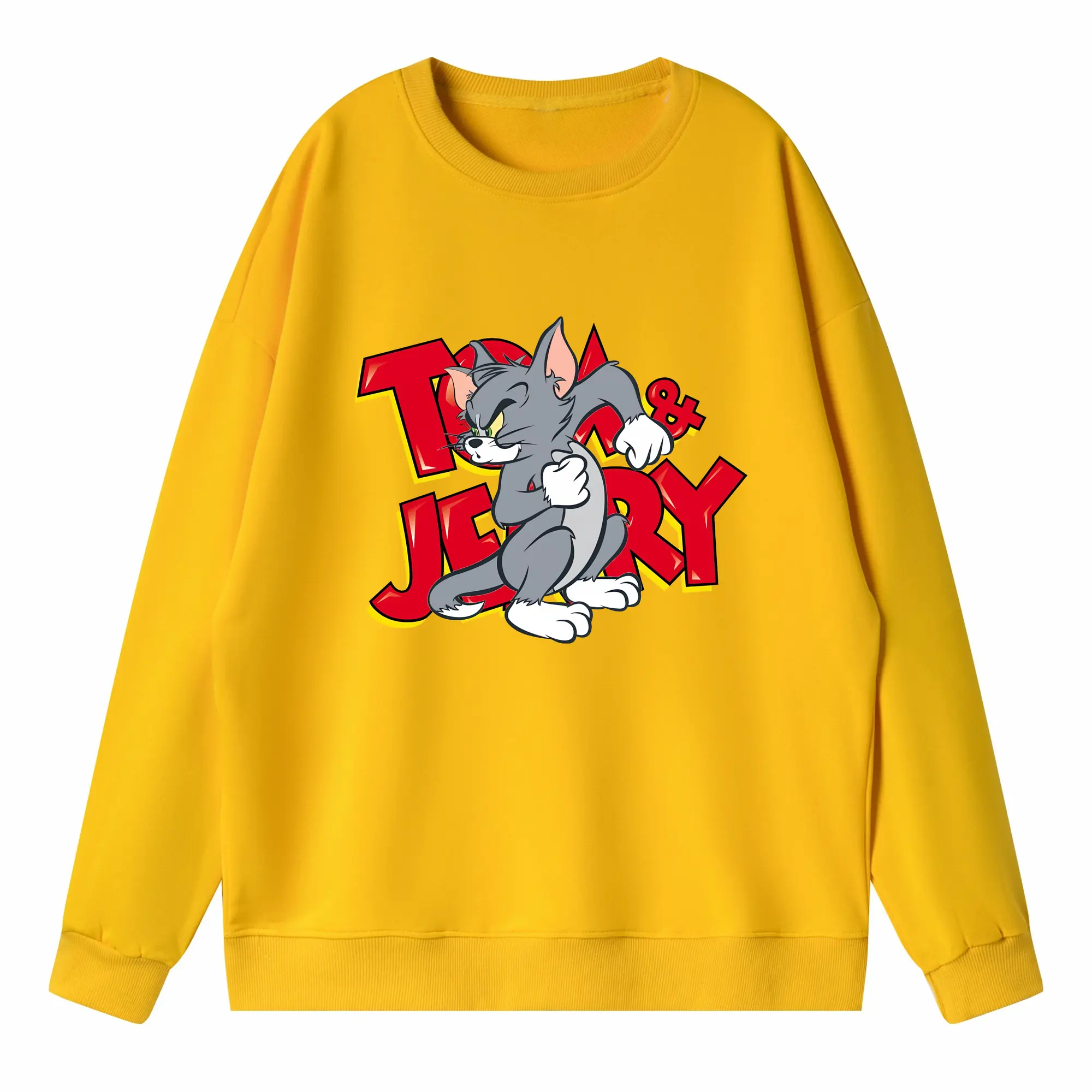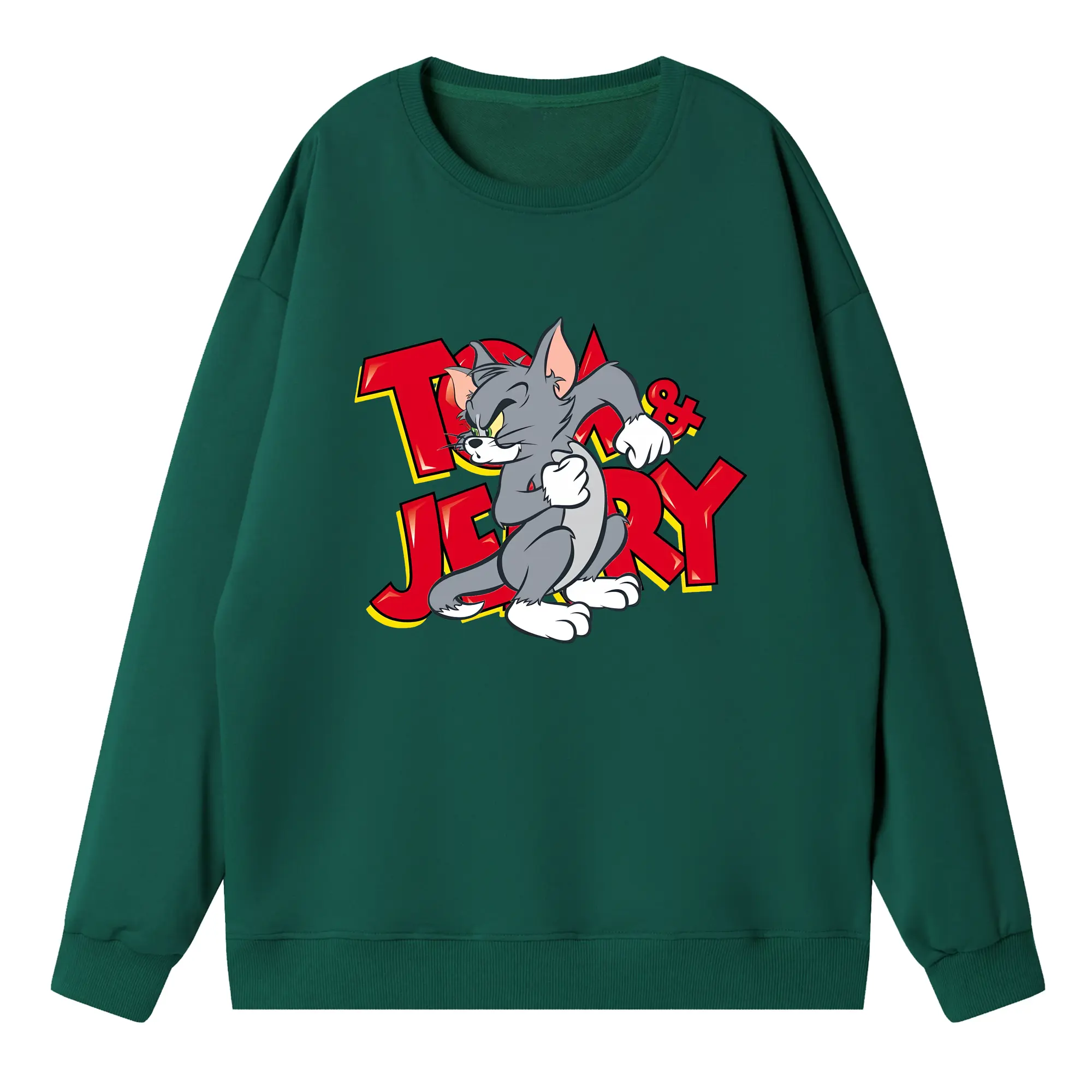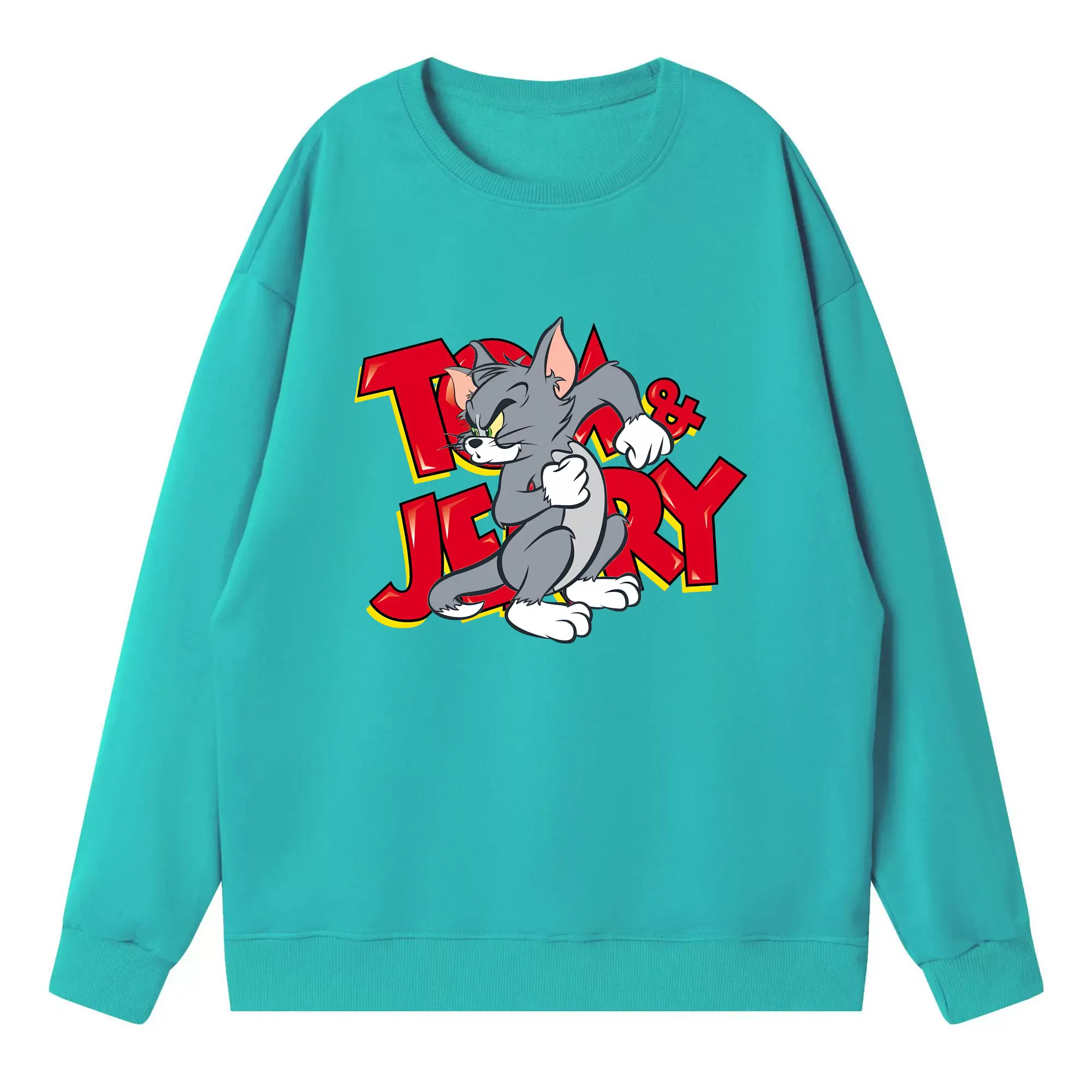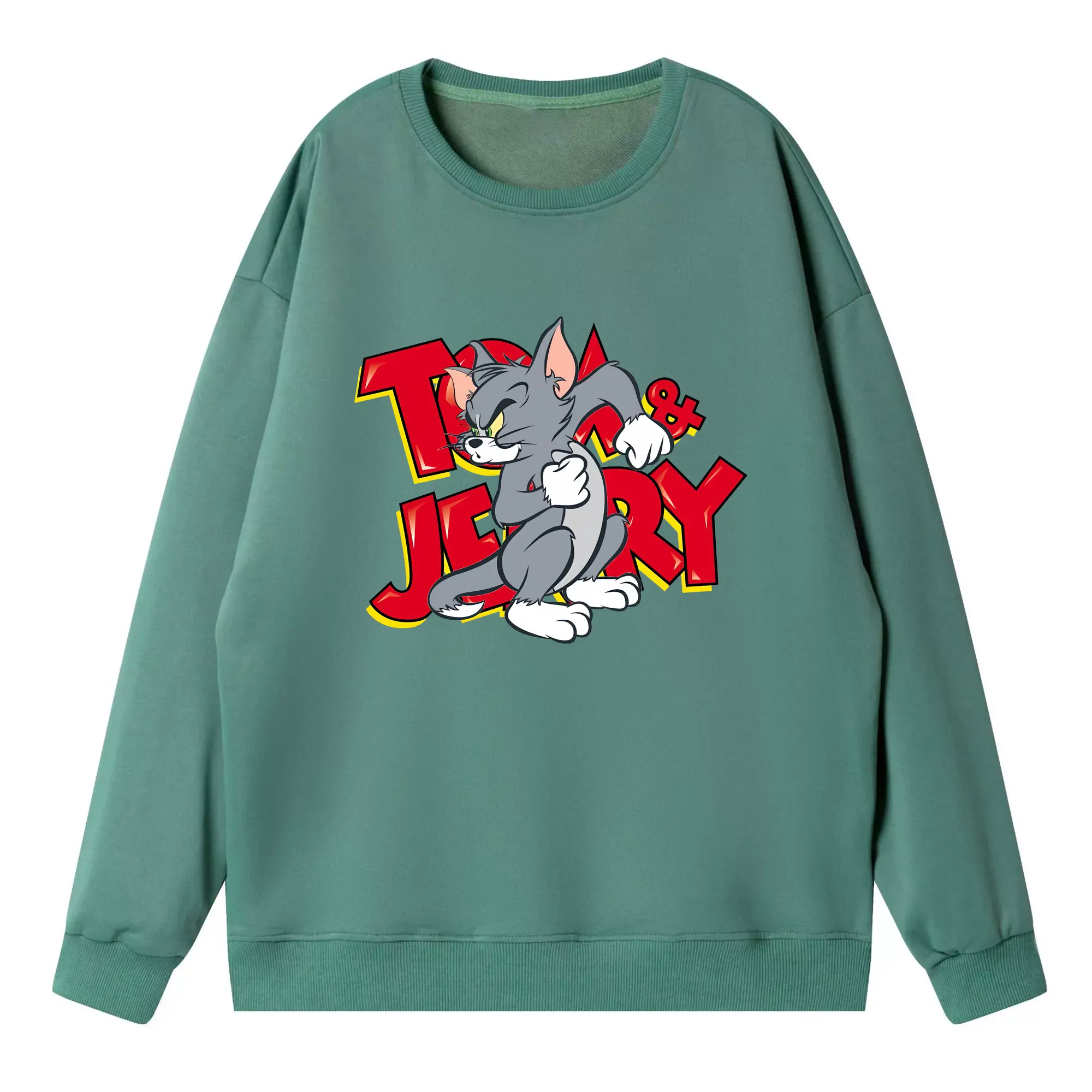 トムとジェリー グッズ トム - 高品質 クルーネック スウェット ・ コットン59% ポリエステル41% ・ ユニセックス 長袖 トレーナー ・ カジュアル デイリー スポーツ 散歩用