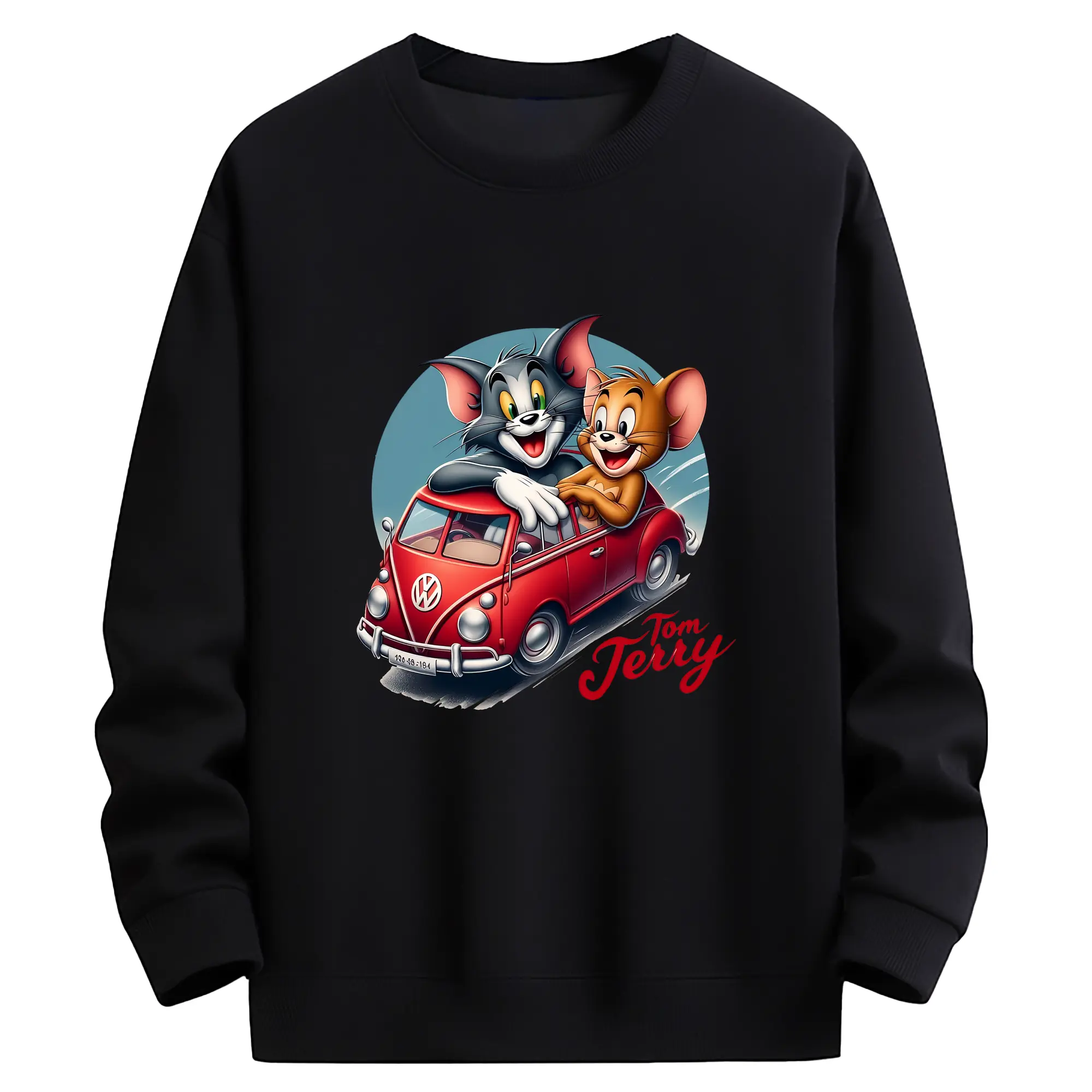 トムとジェリー グッズ トム - 高品質 クルーネック スウェット ・ コットン59% ポリエステル41% ・ ユニセックス 長袖 トレーナー ・ カジュアル デイリー スポーツ 散歩用