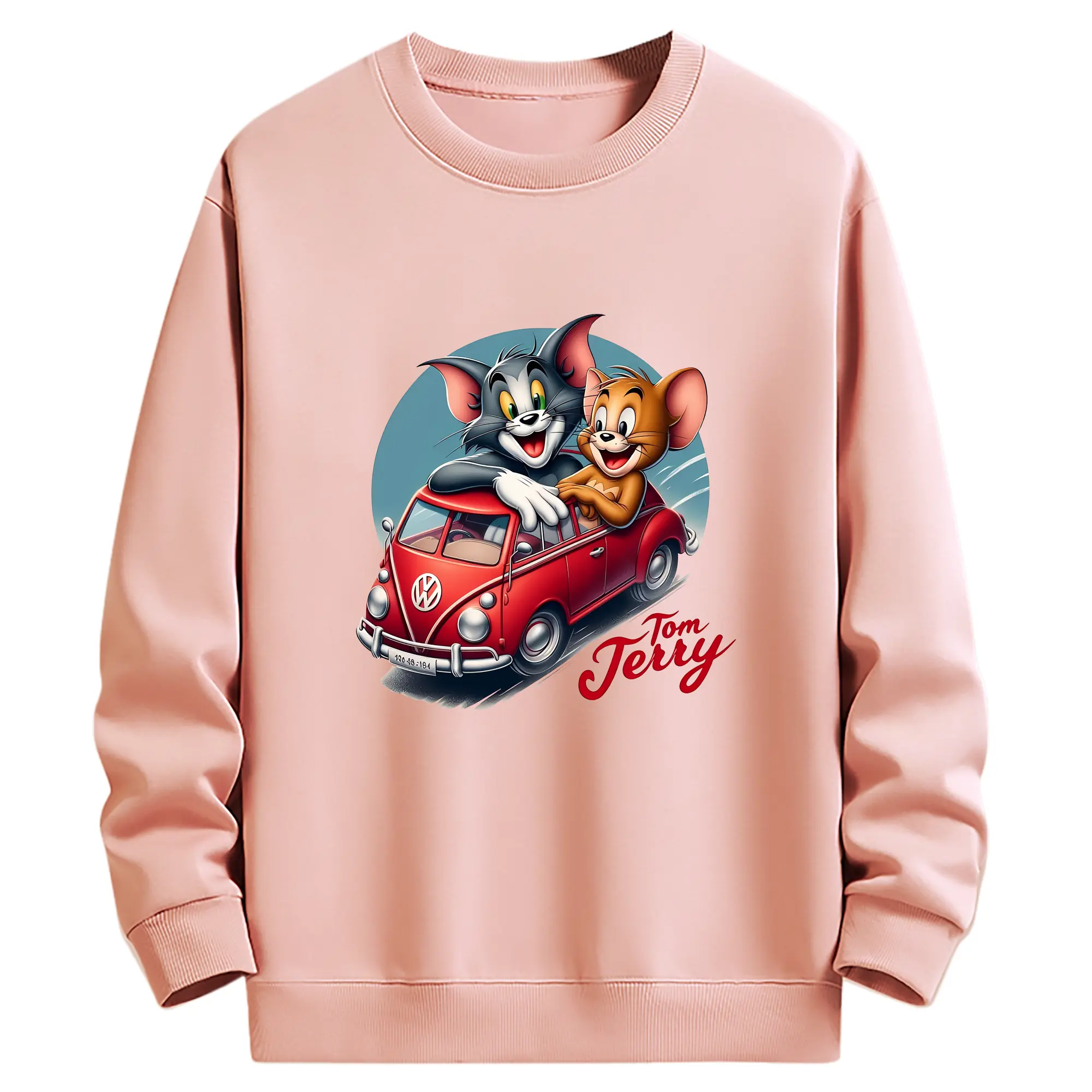 トムとジェリー グッズ トム - 薄手 クルーネック スウェット 裏毛260g · ポリエステル 春秋向け カジュアル 男女兼用 · トレーナー デイリー スポーツ 散歩に最適