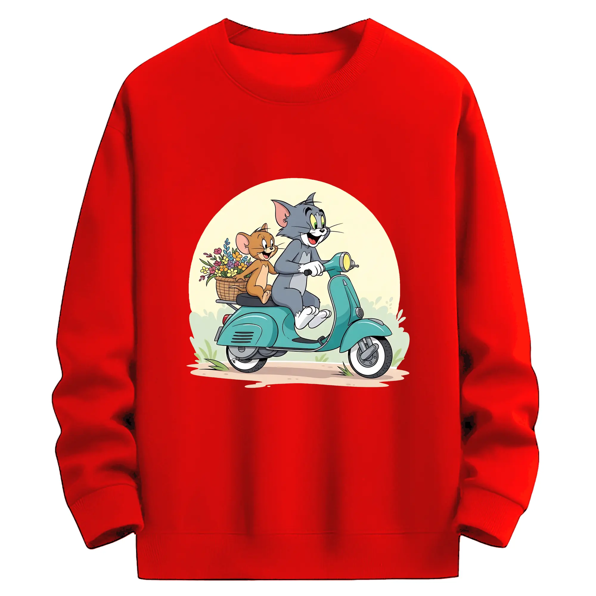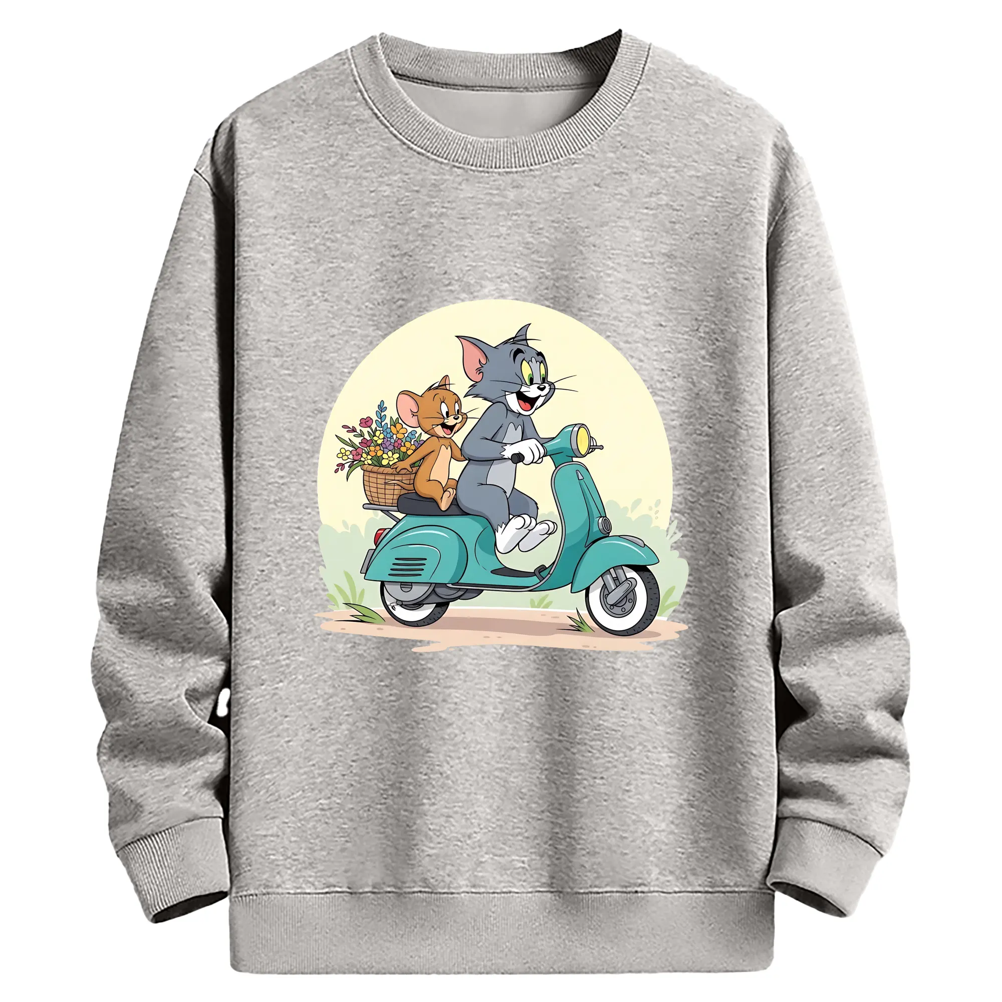 トムとジェリー グッズ トム - 薄手 クルーネック スウェット 裏毛260g · ポリエステル 春秋向け カジュアル 男女兼用 · トレーナー デイリー スポーツ 散歩に最適