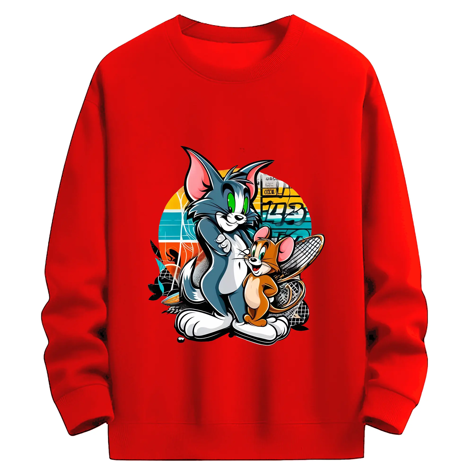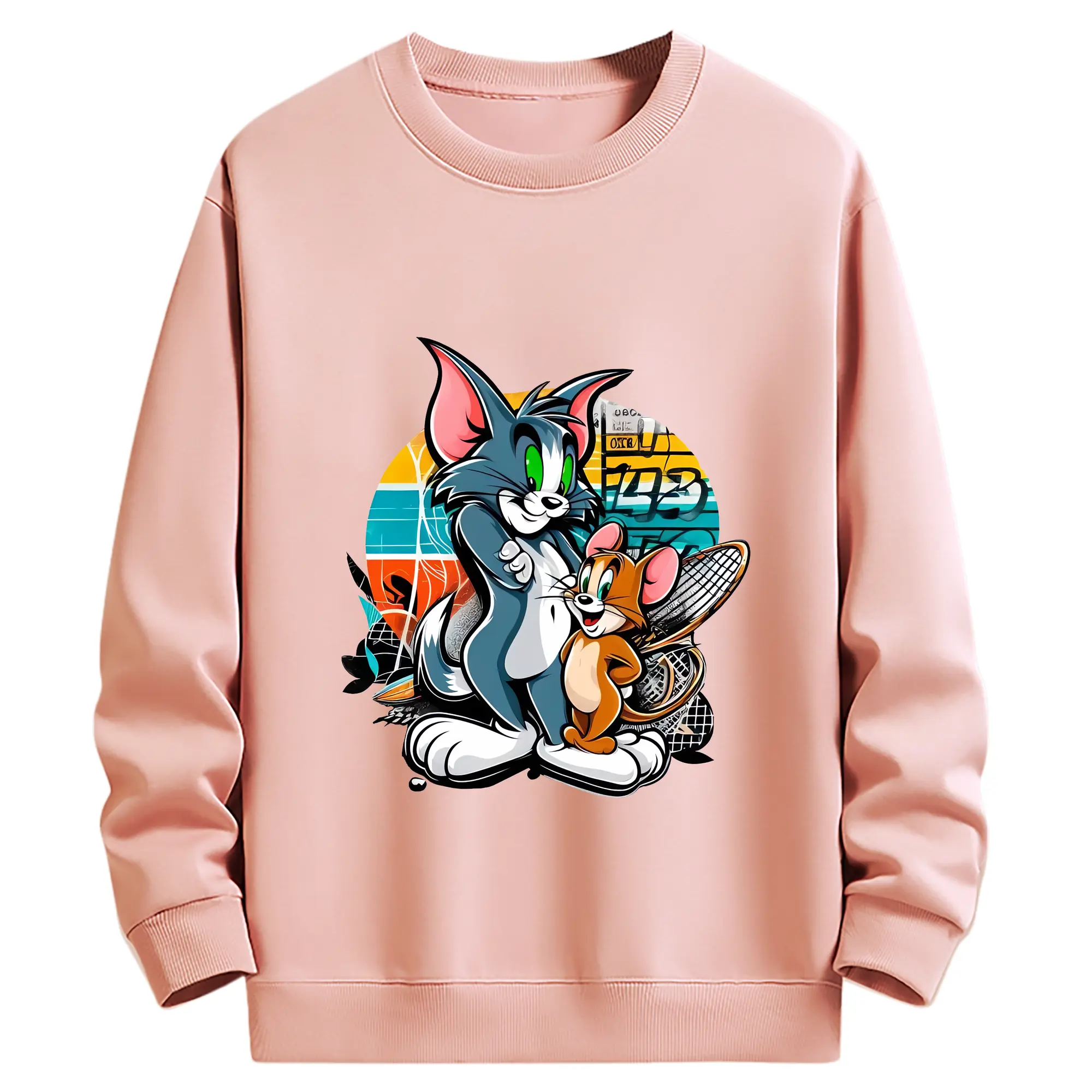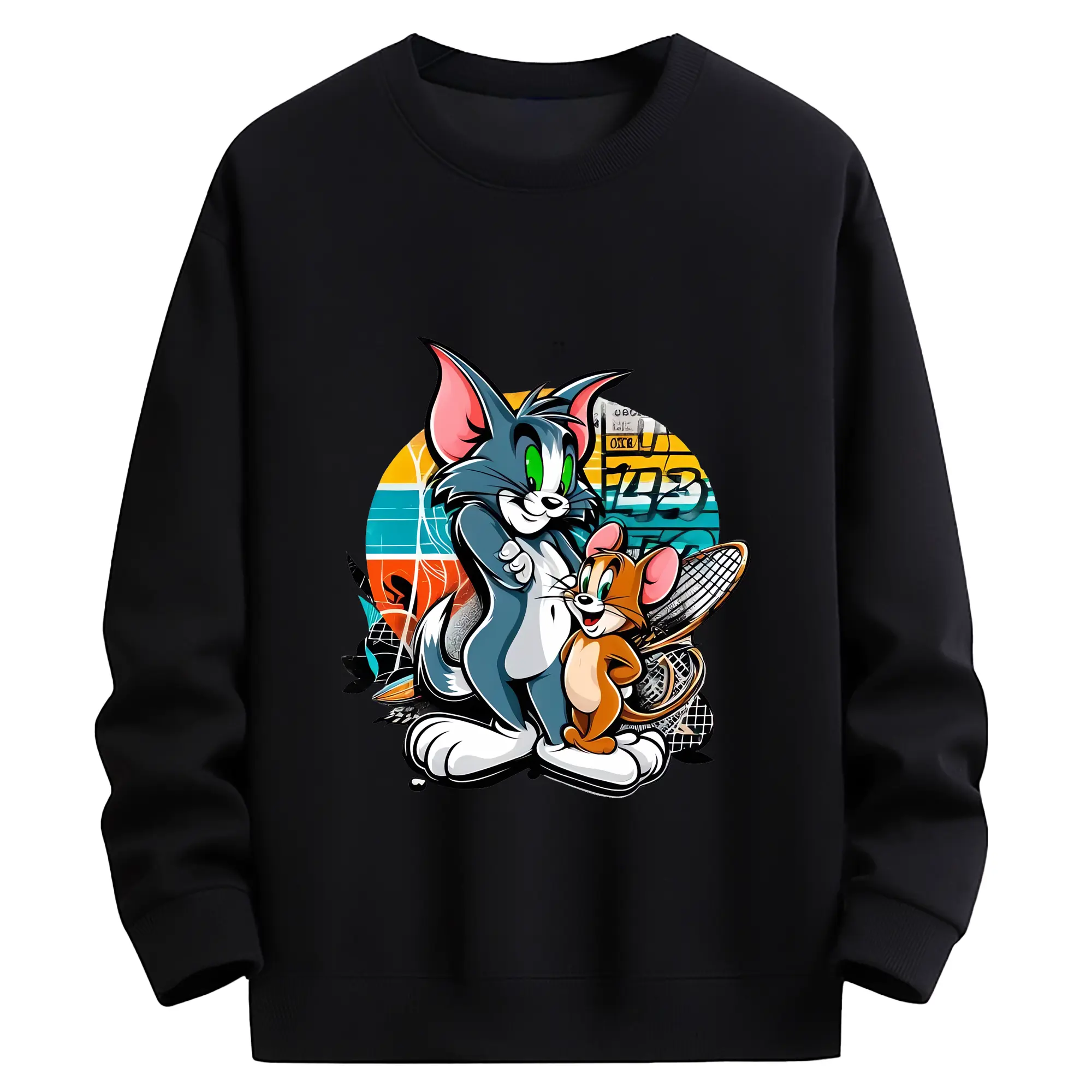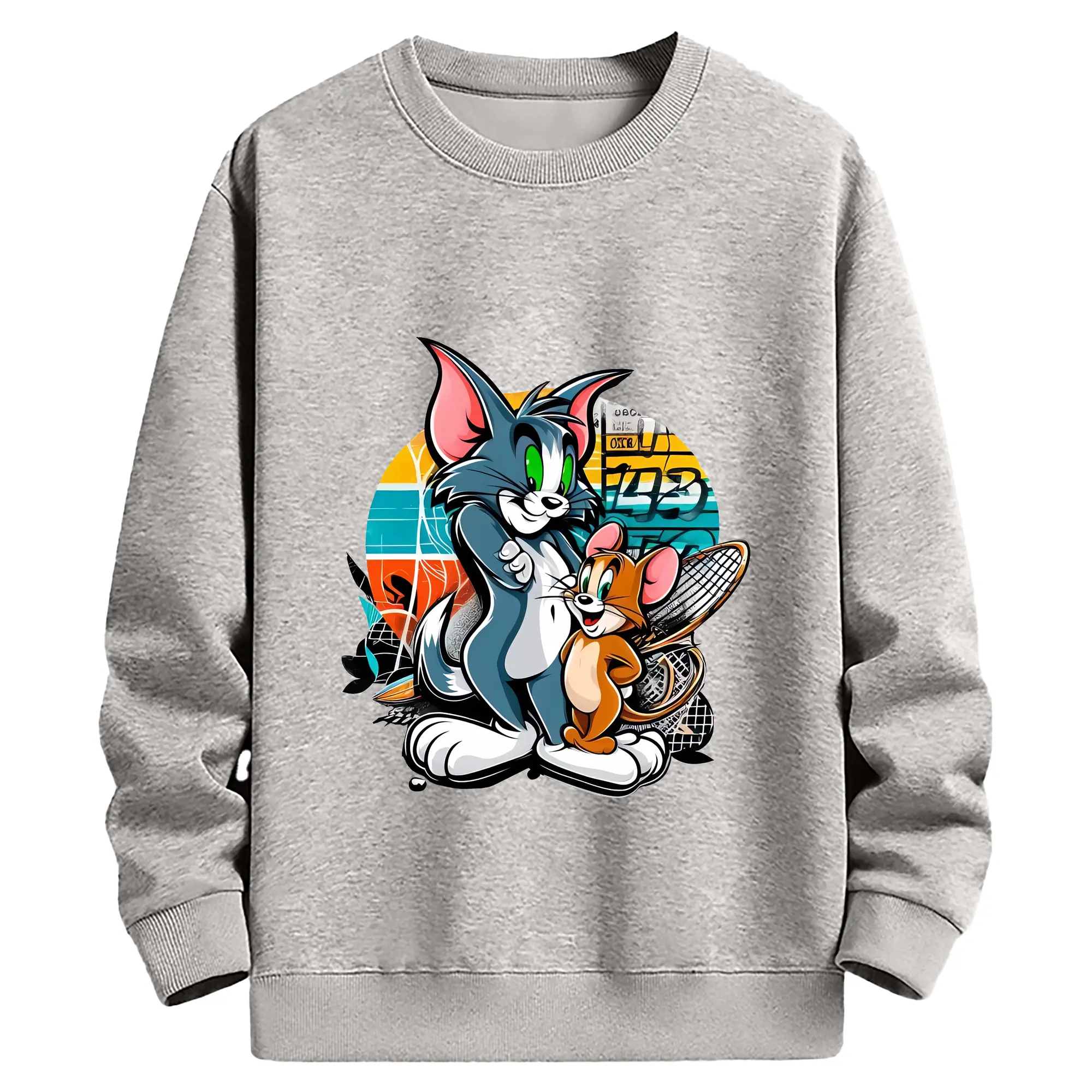 トムとジェリー グッズ トム - 高品質 クルーネック スウェット ・ コットン59% ポリエステル41% ・ ユニセックス 長袖 トレーナー ・ カジュアル デイリー スポーツ 散歩用