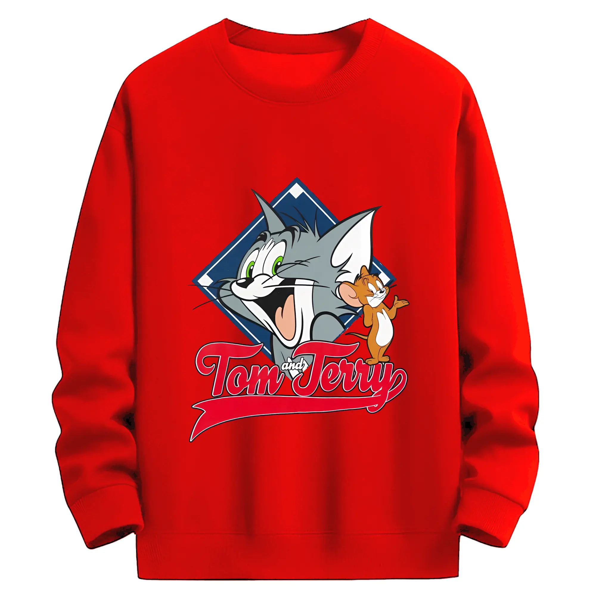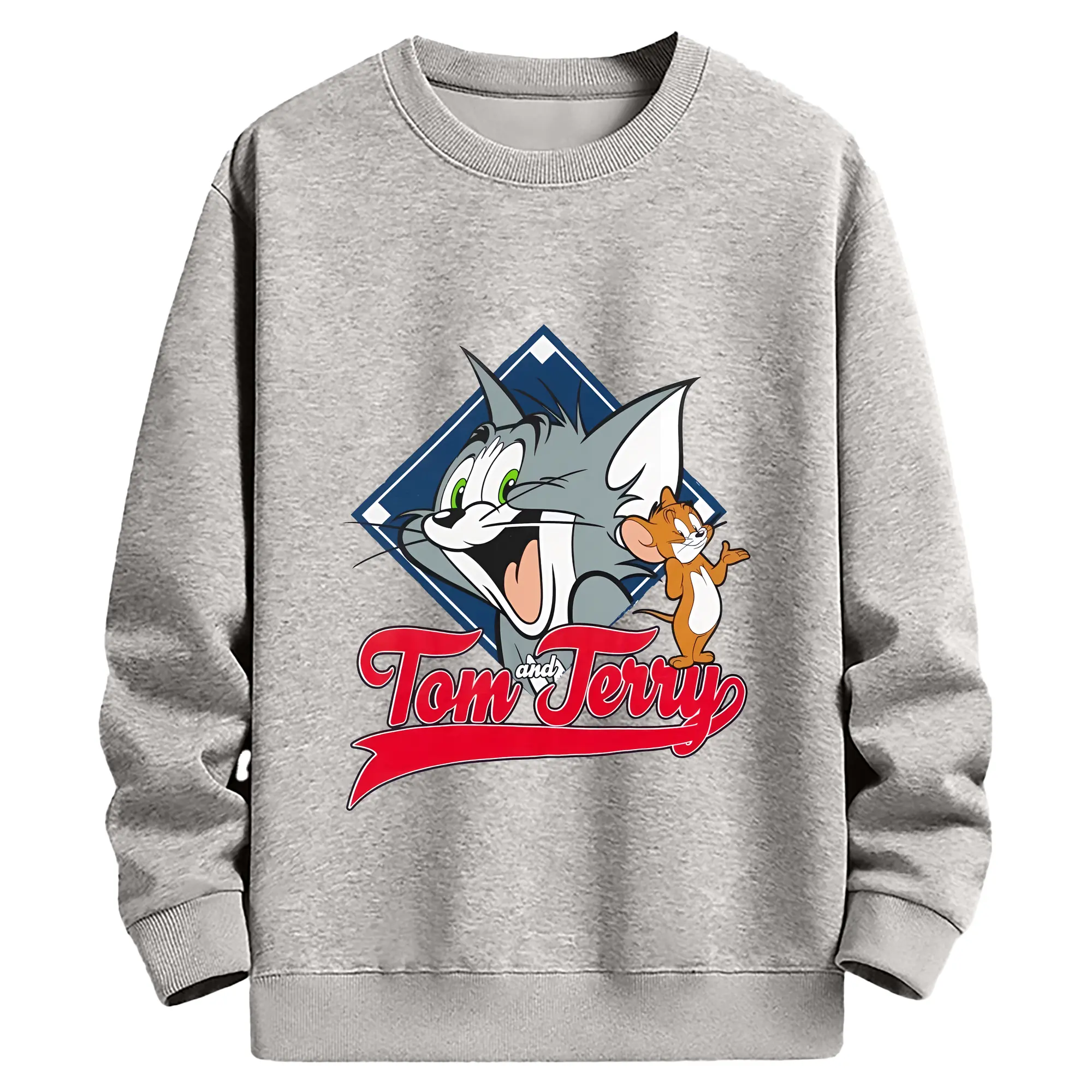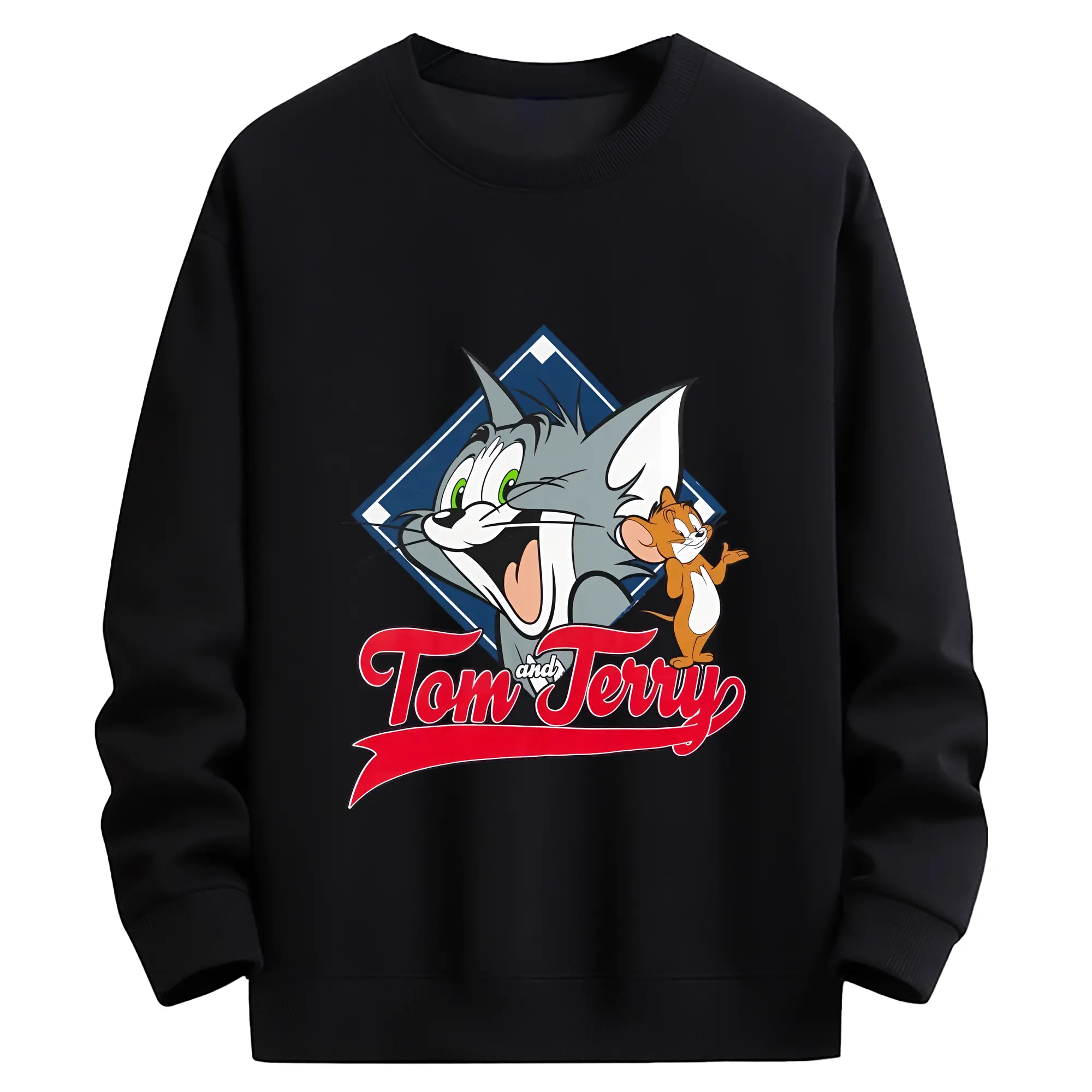 トムとジェリー グッズ トム - 高品質 クルーネック スウェット ・ コットン59% ポリエステル41% ・ ユニセックス 長袖 トレーナー ・ カジュアル デイリー スポーツ 散歩用
