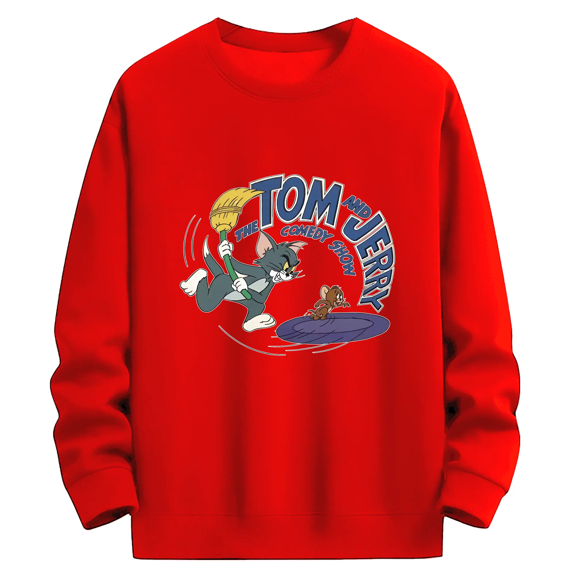 トムとジェリー グッズ トム - 高品質 クルーネック スウェット ・ コットン59% ポリエステル41% ・ ユニセックス 長袖 トレーナー ・ カジュアル デイリー スポーツ 散歩用
