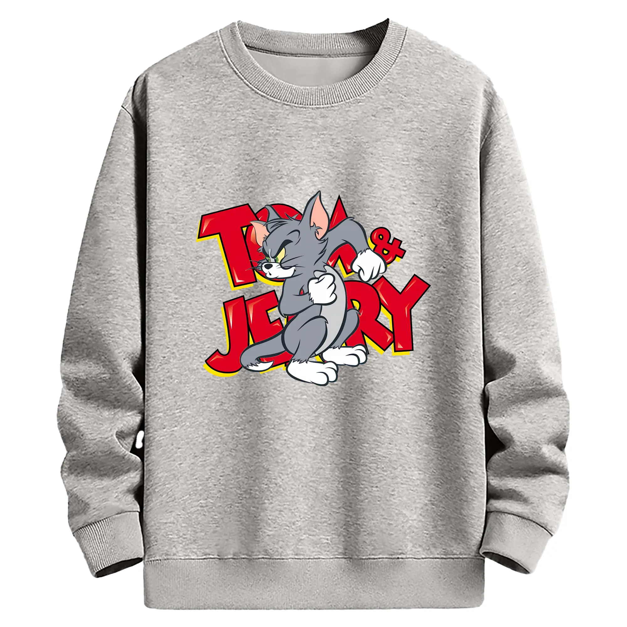 トムとジェリー グッズ トム - 薄手 クルーネック スウェット 裏毛260g · ポリエステル 春秋向け カジュアル 男女兼用 · トレーナー デイリー スポーツ 散歩に最適