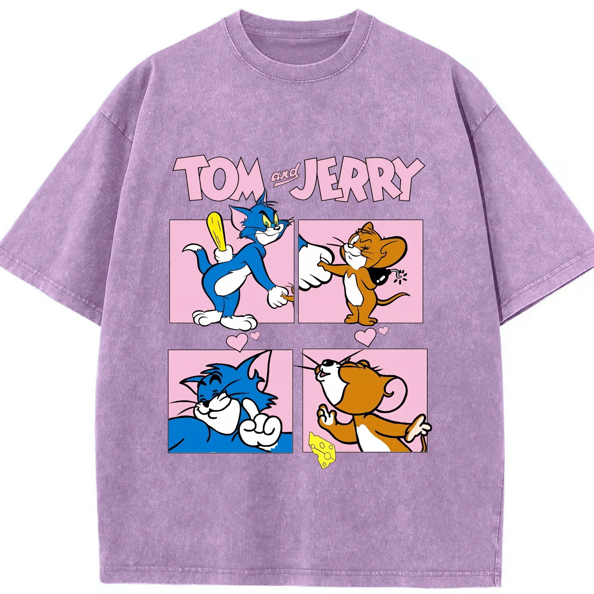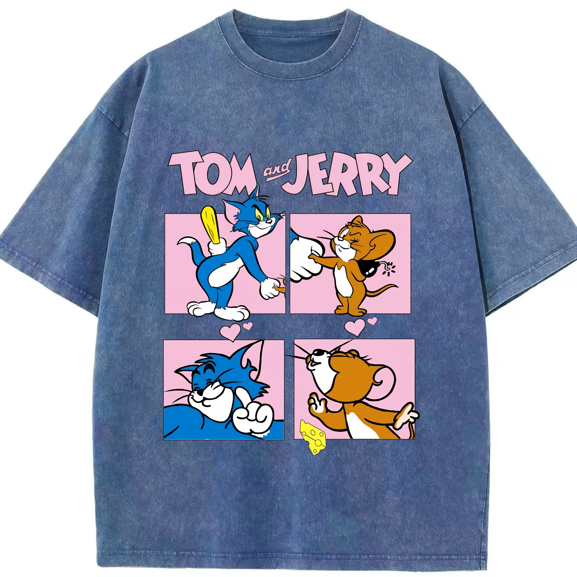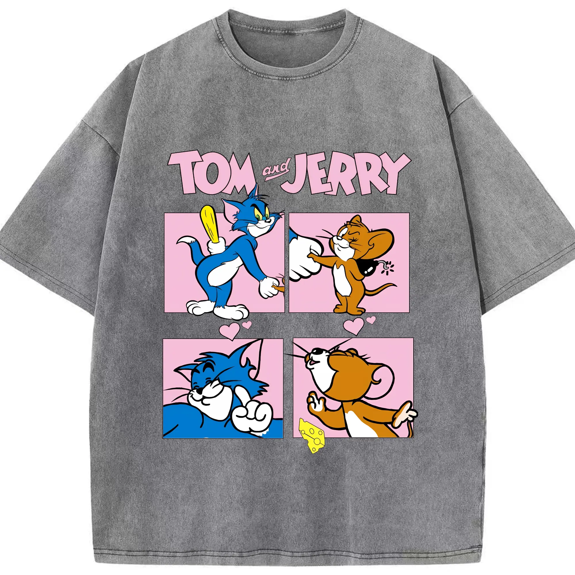 トムとジェリー グッズ トム - 綿100% ヴィンテージ風 半袖Tシャツ ・ 背面プリント ・ 柔らか肌触り ・ 通気性 快適 ・ スポーツ カジュアル 外出用