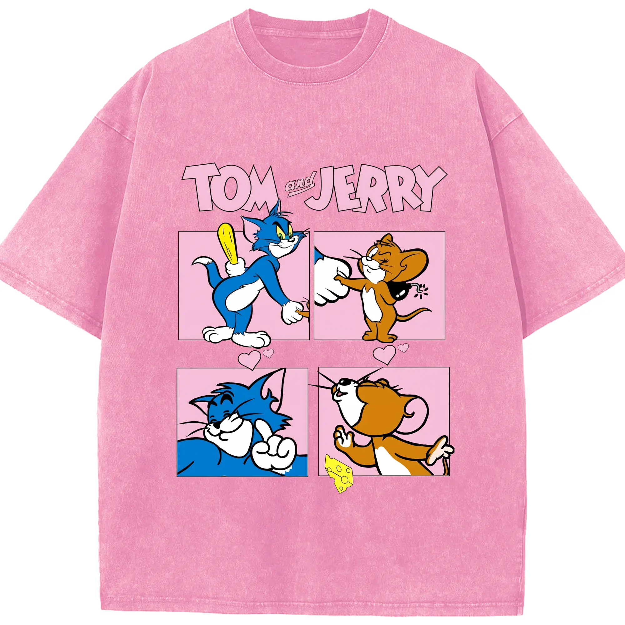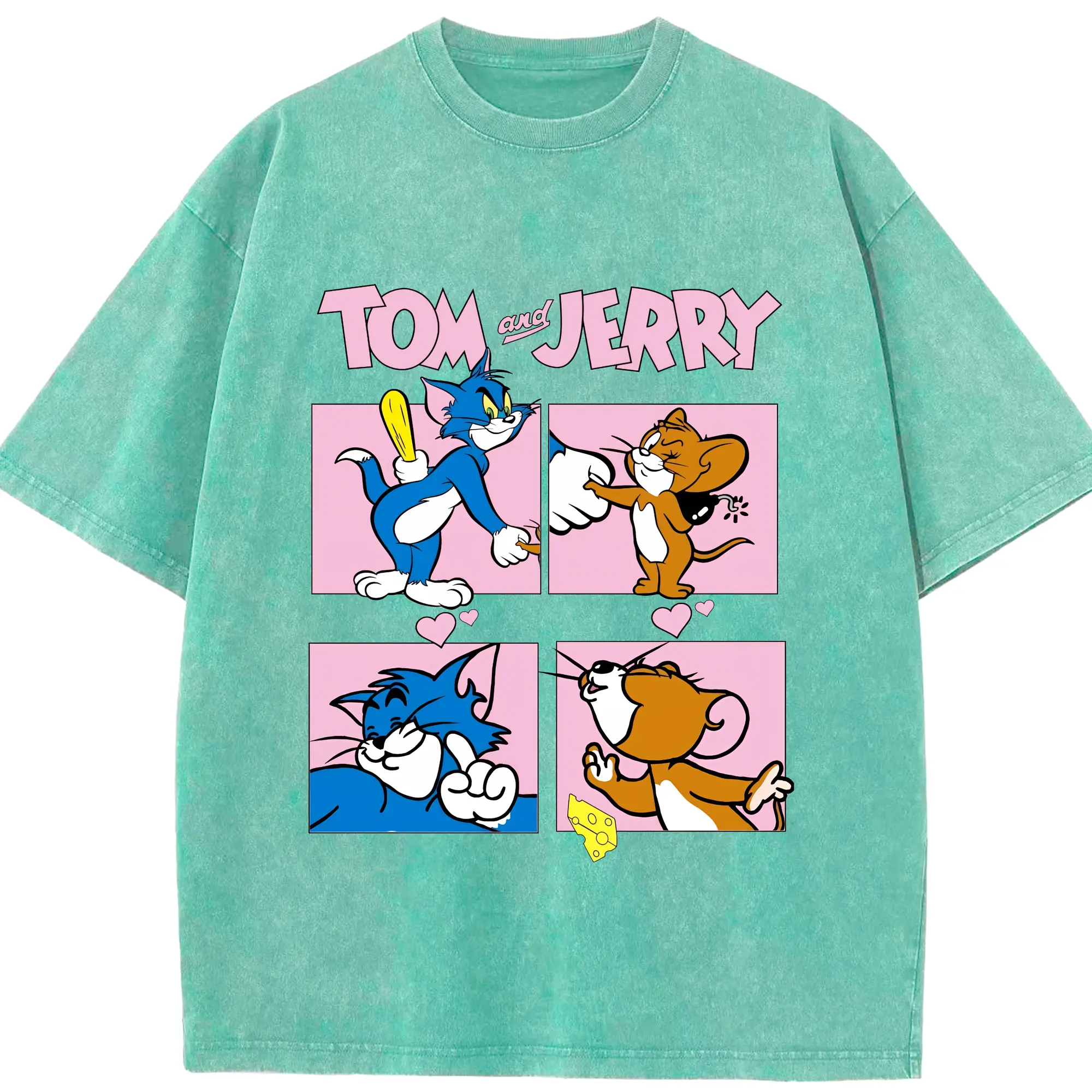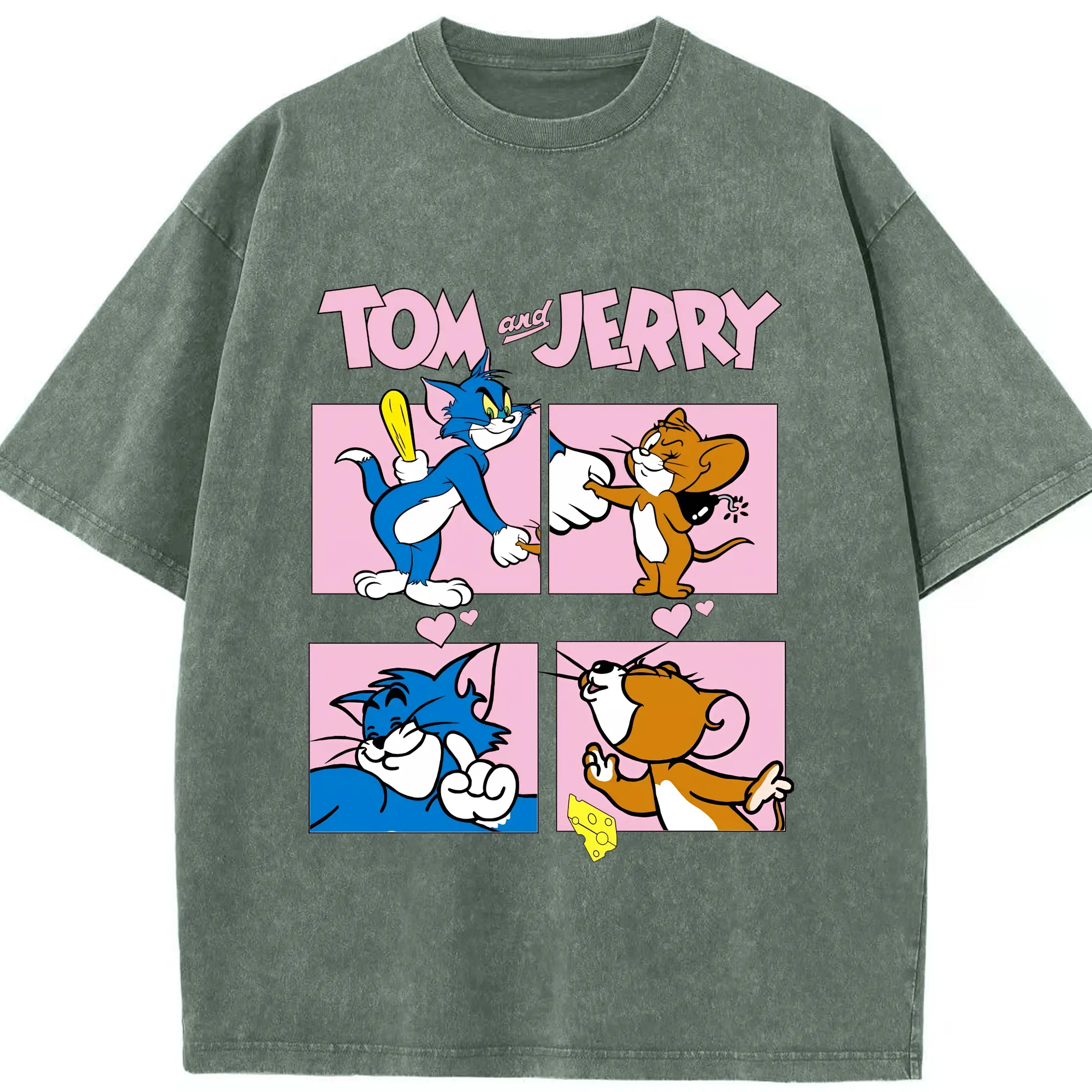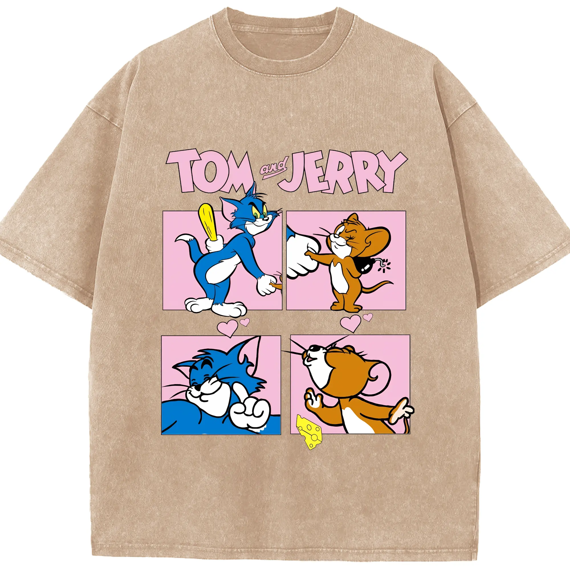トムとジェリー グッズ トム - 綿100% ヴィンテージ風 半袖Tシャツ ・ 背面プリント ・ 柔らか肌触り ・ 通気性 快適 ・ スポーツ カジュアル 外出用