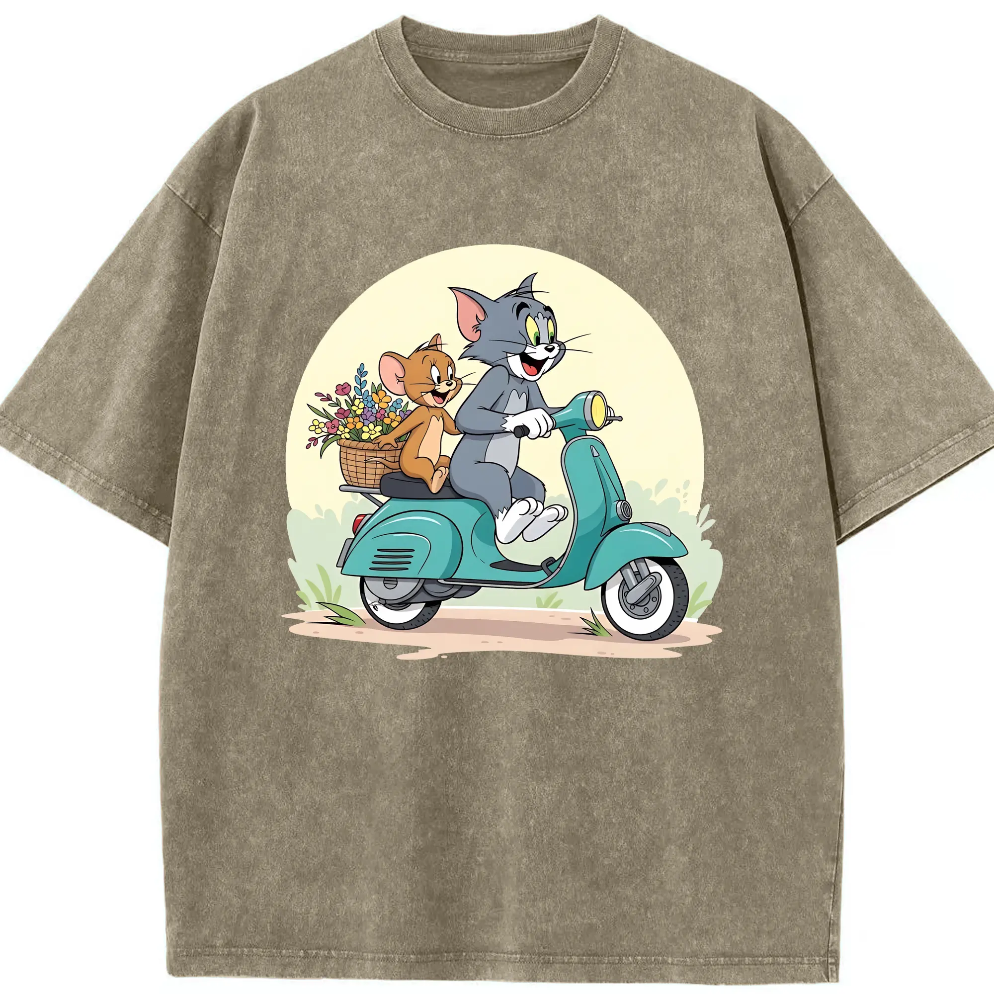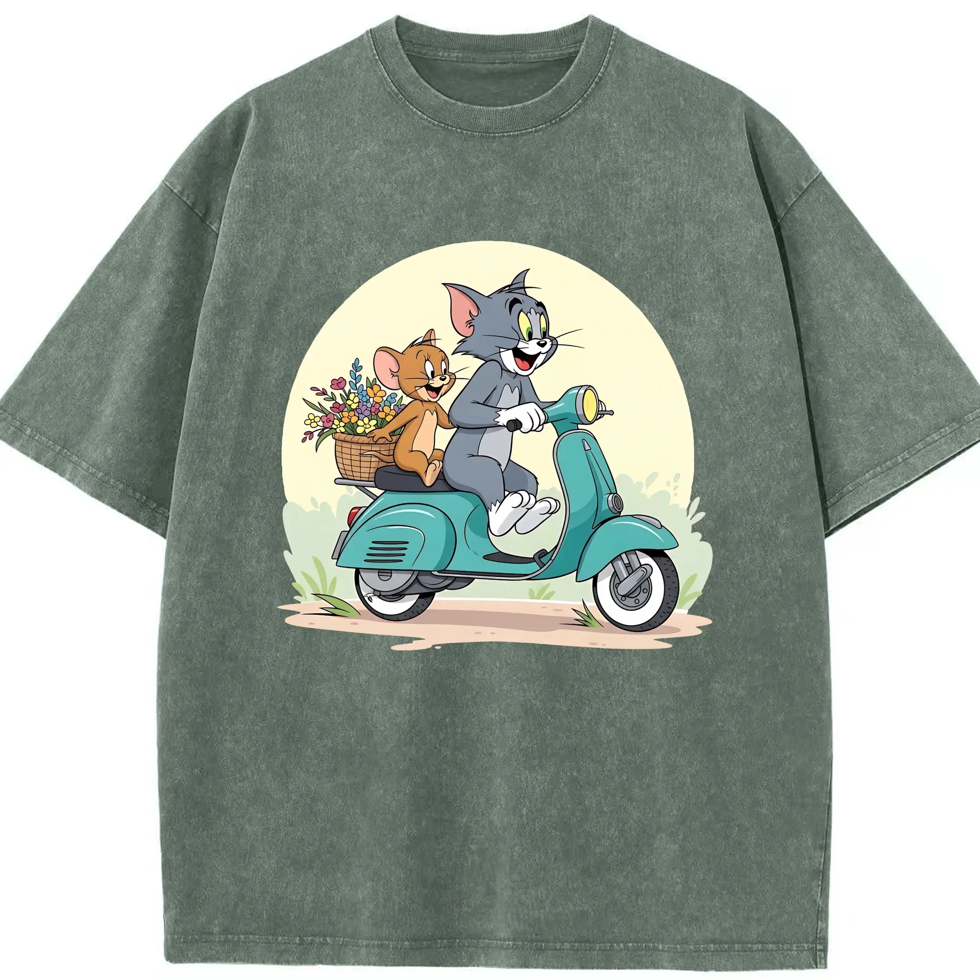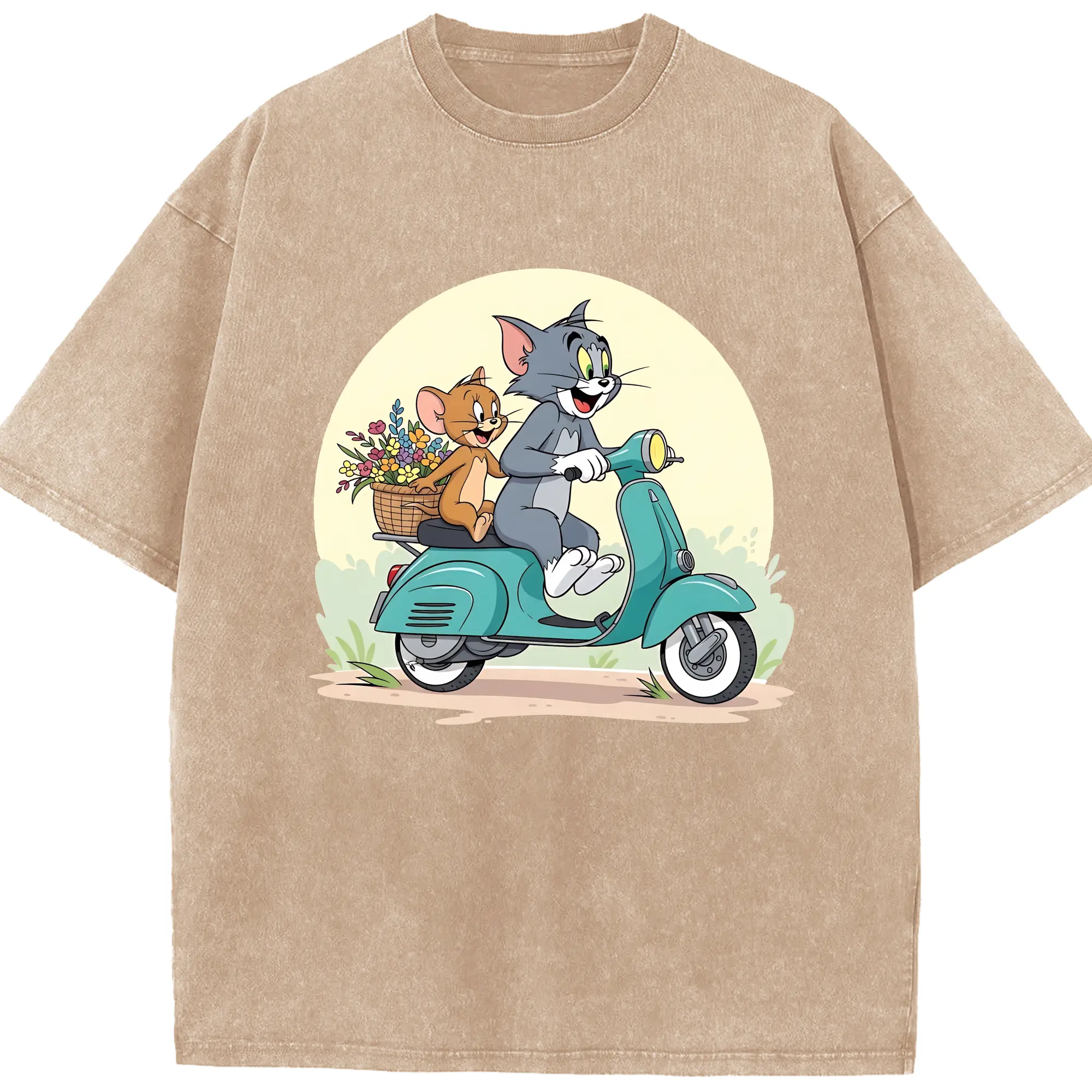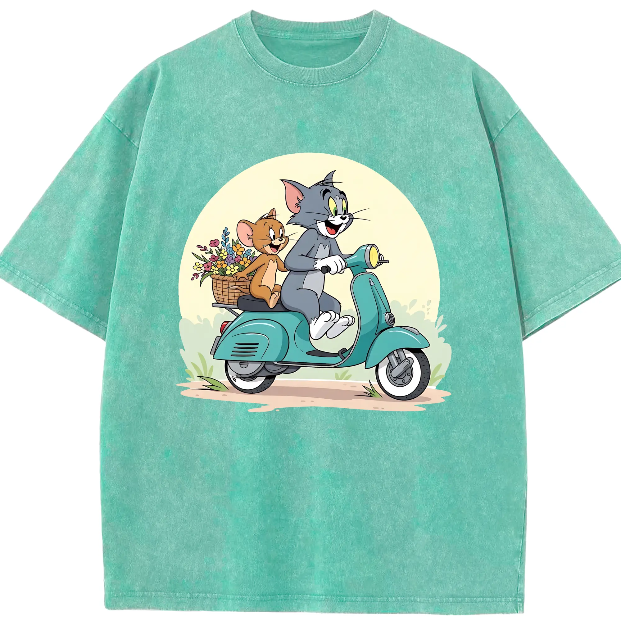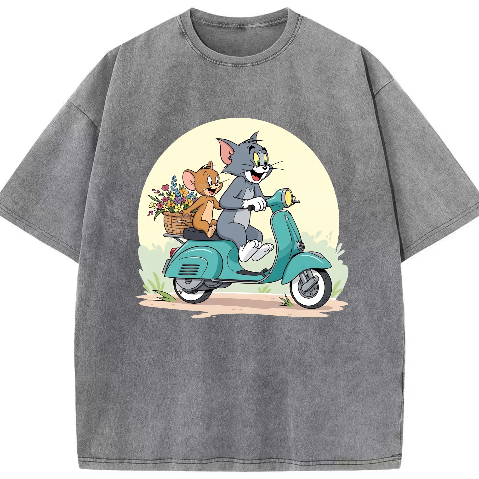 トムとジェリー グッズ トム - 綿100% ヴィンテージ風 半袖Tシャツ ・ 背面プリント ・ 柔らか肌触り ・ 通気性 快適 ・ スポーツ カジュアル 外出用