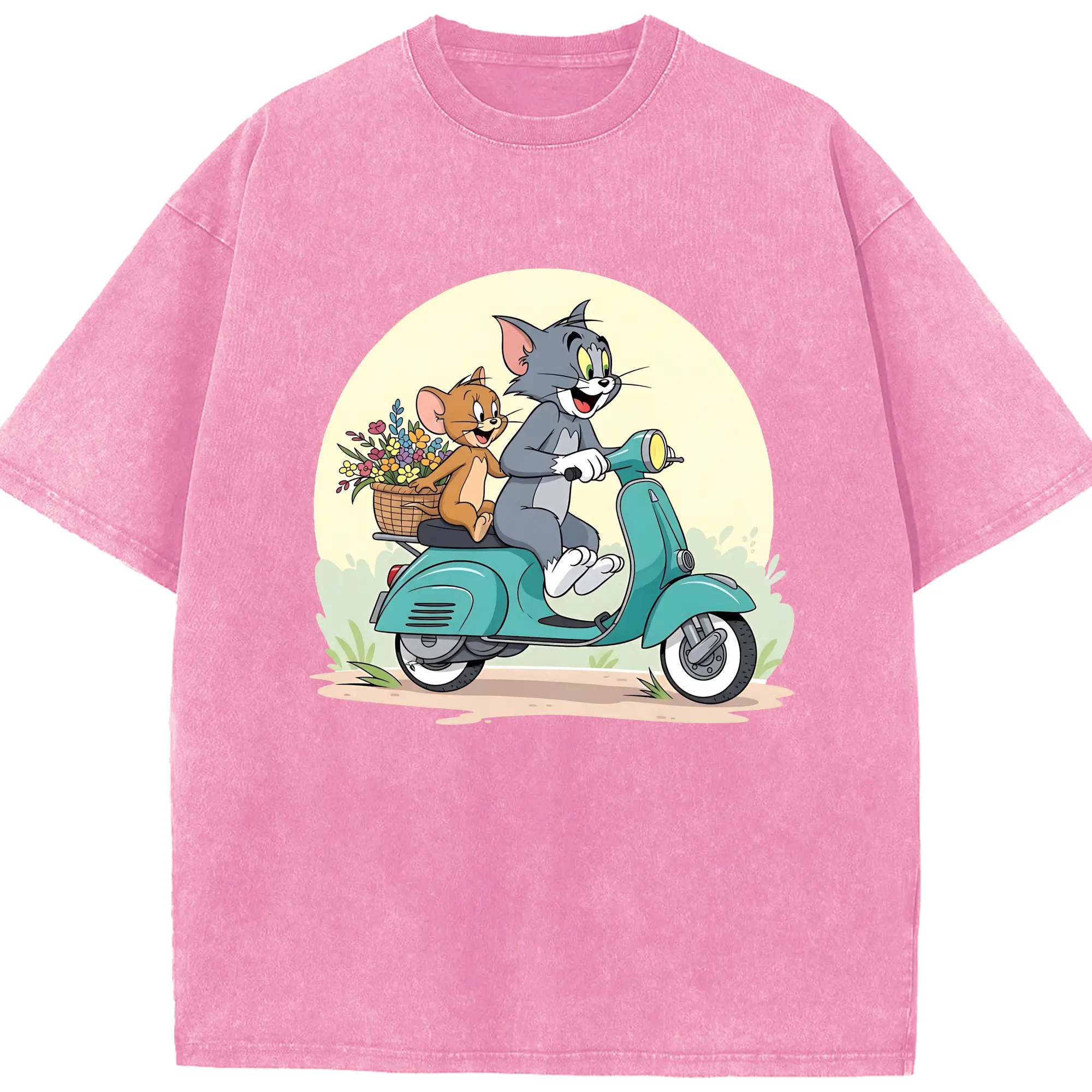 トムとジェリー グッズ トム - 綿100% 半袖Tシャツ ・ バックプリント ・ 快適 通気性 ・ 日常使い 散歩 スポーツ用
