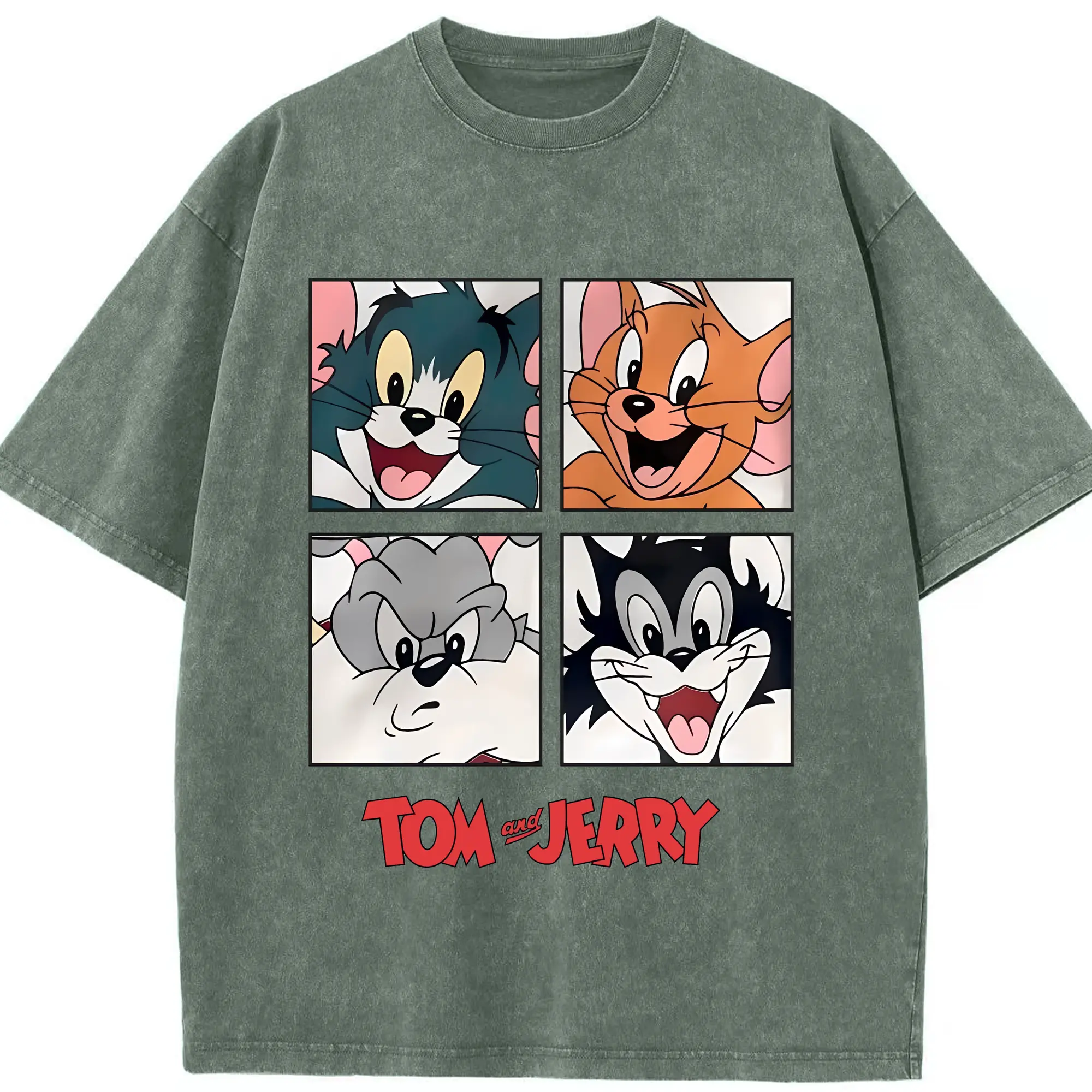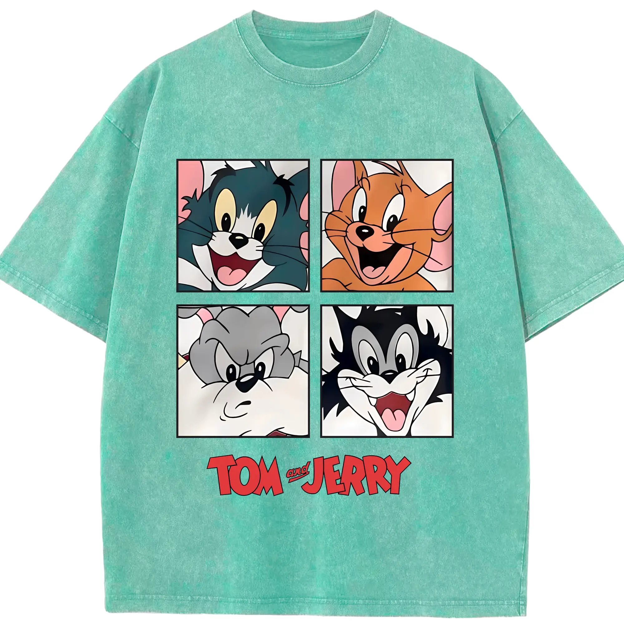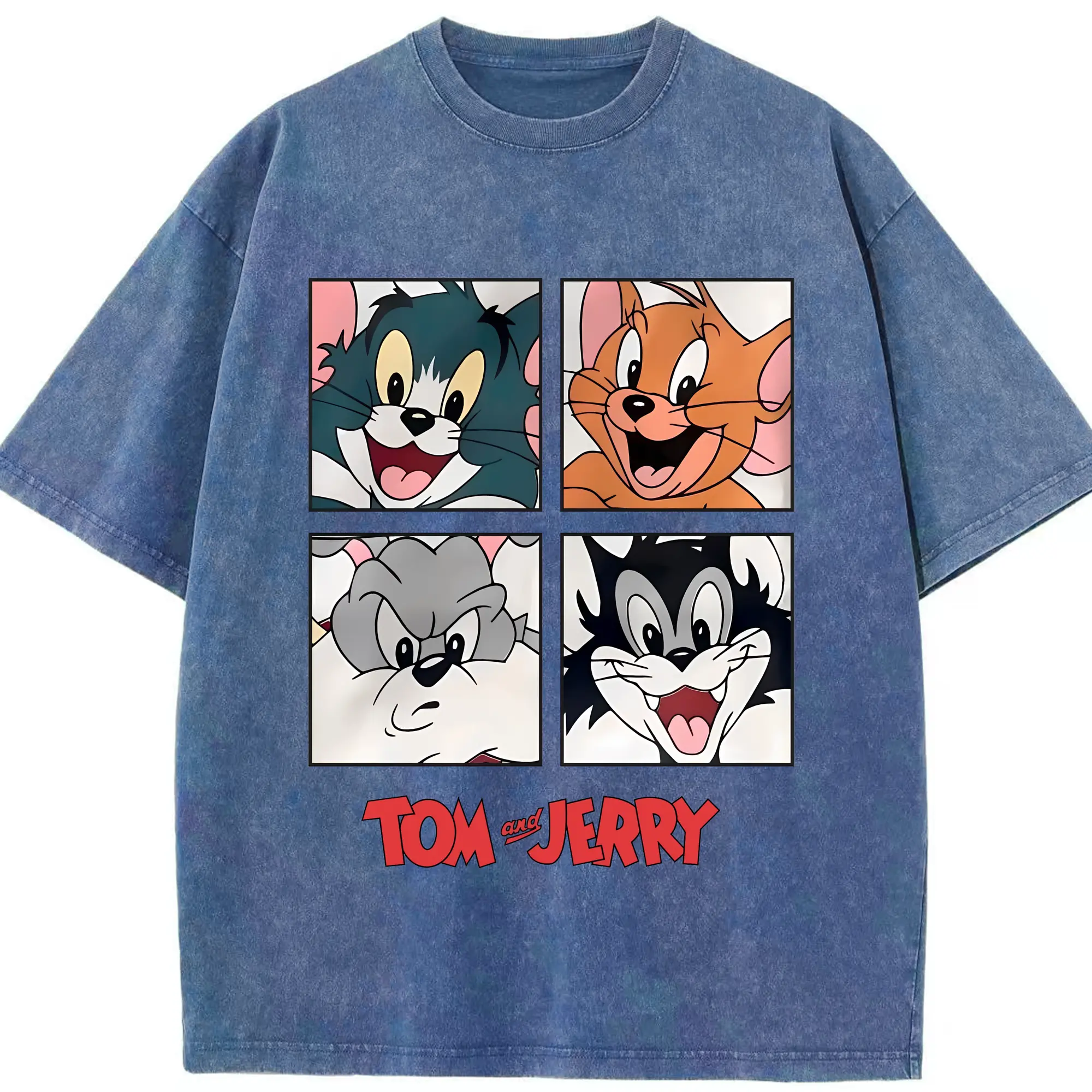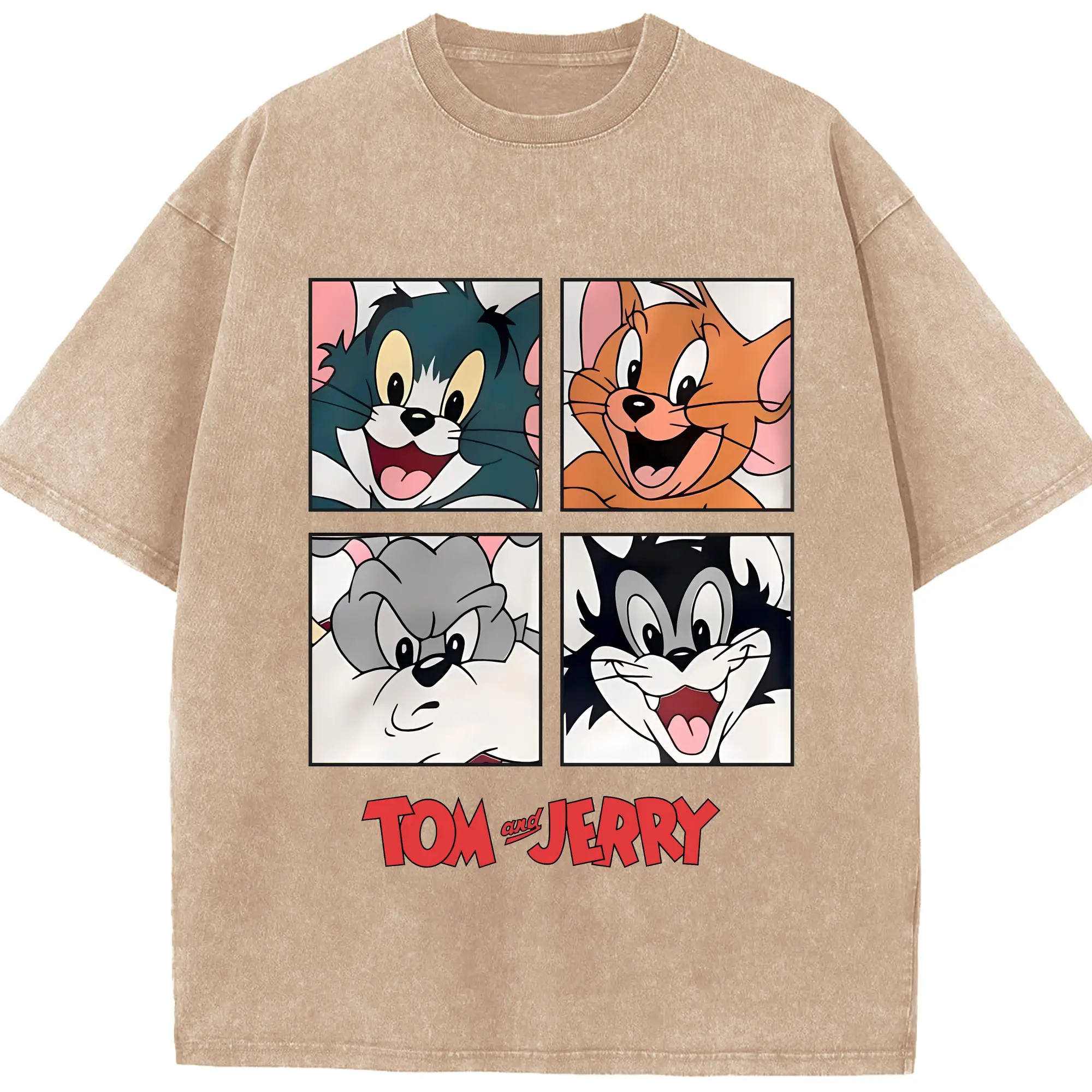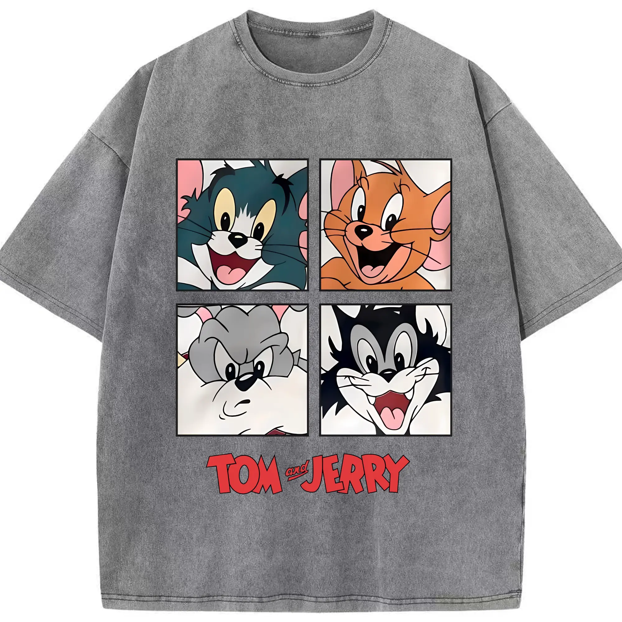 トムとジェリー グッズ トム - 綿100% ヴィンテージ風 半袖Tシャツ ・ 背面プリント ・ 柔らか肌触り ・ 通気性 快適 ・ スポーツ カジュアル 外出用
