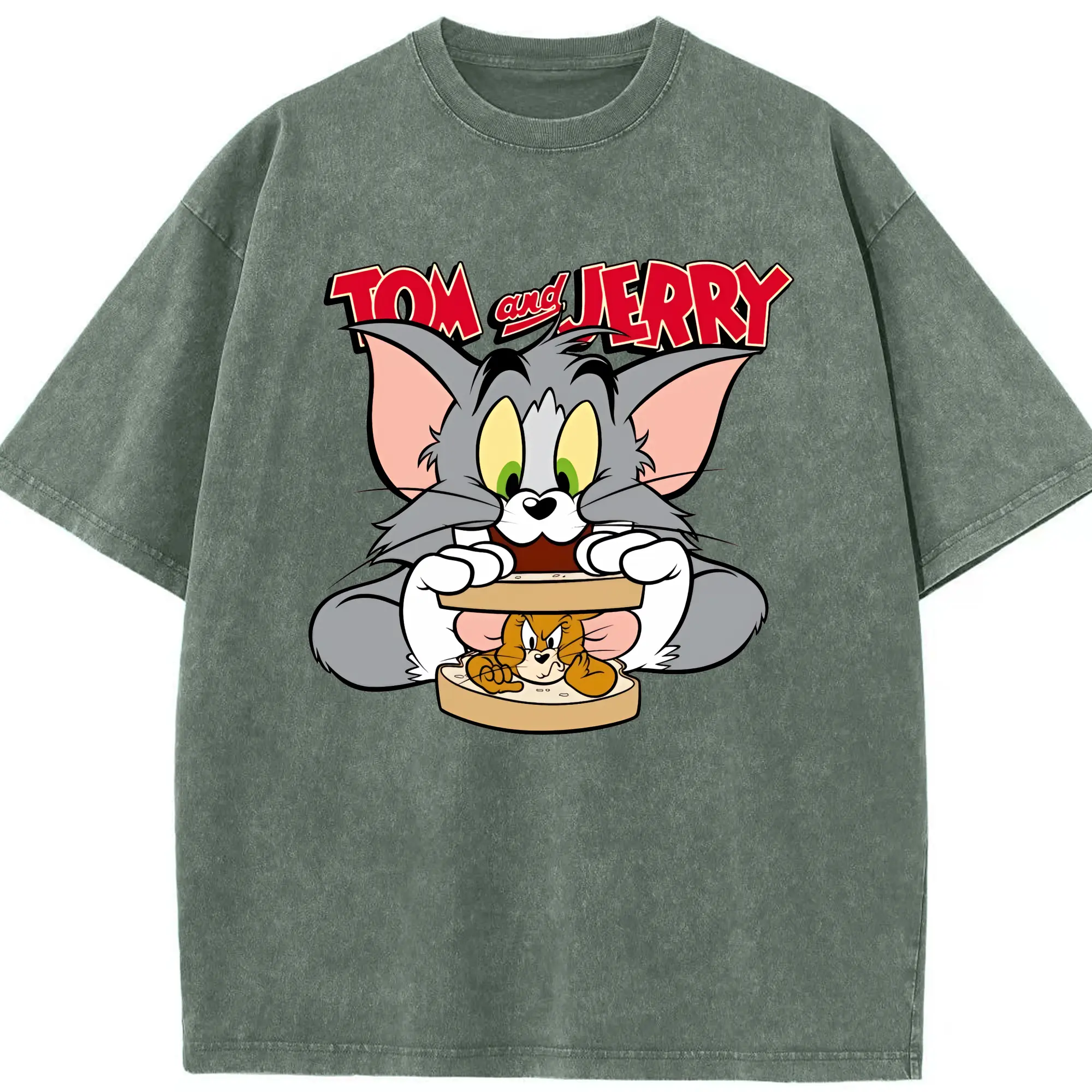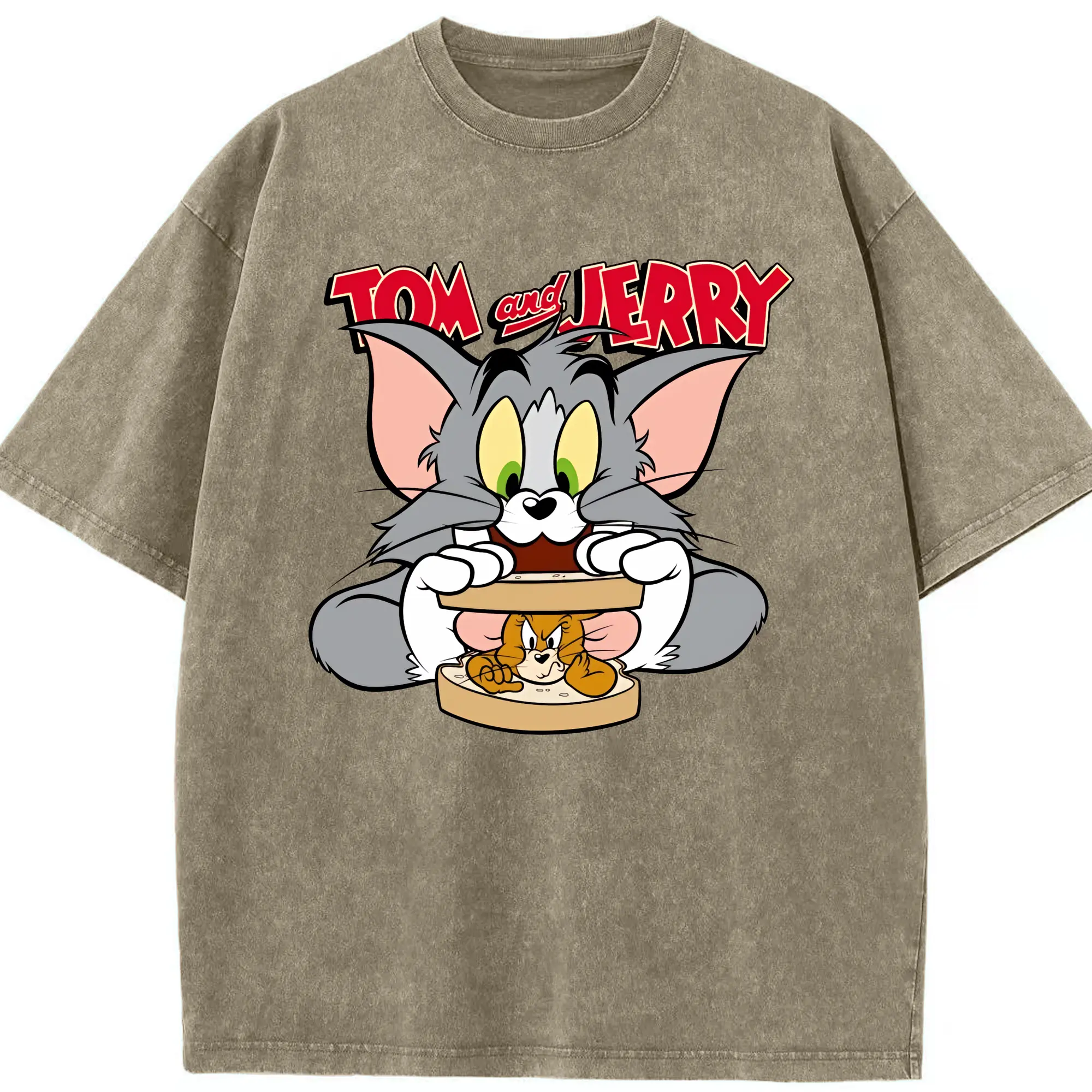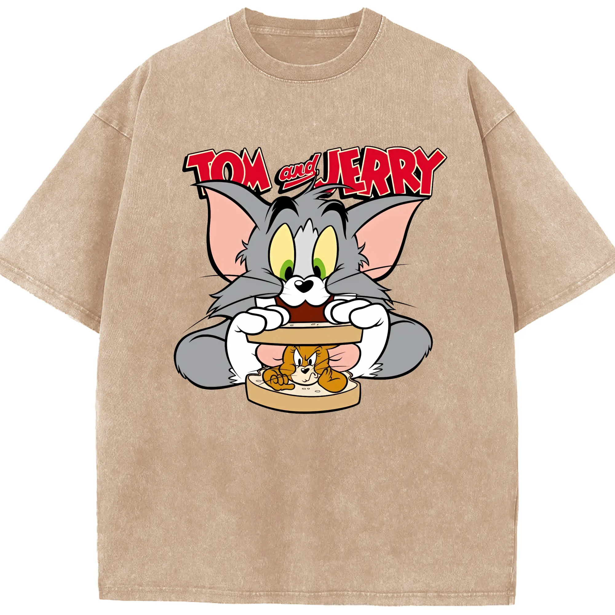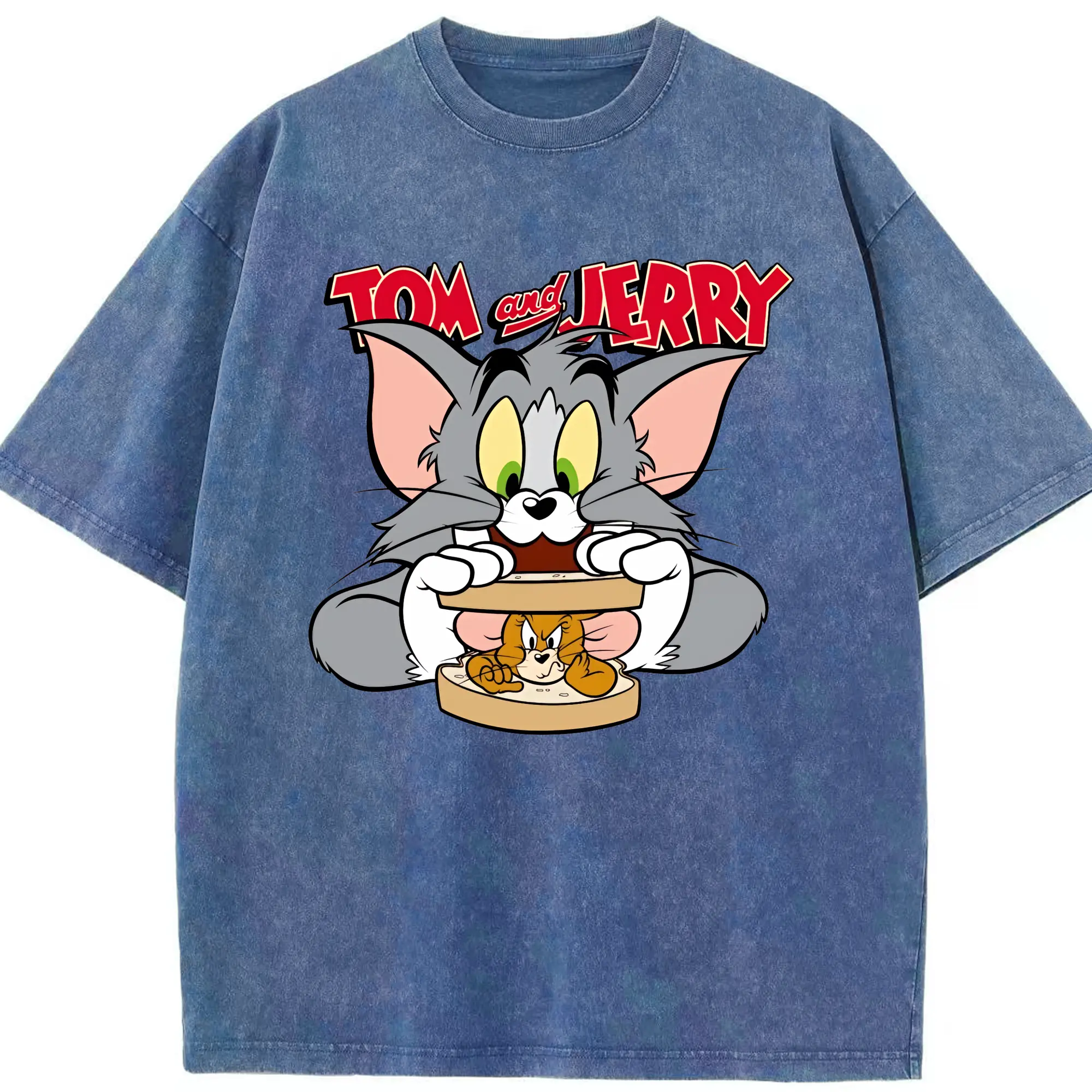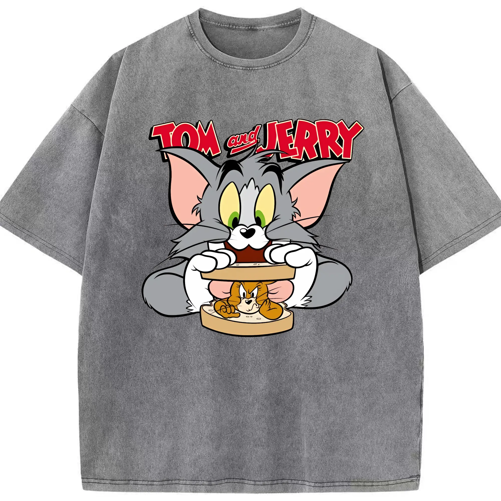 トムとジェリー グッズ トム - 綿100% ヴィンテージ風 半袖Tシャツ ・ 背面プリント ・ 柔らか肌触り ・ 通気性 快適 ・ スポーツ カジュアル 外出用