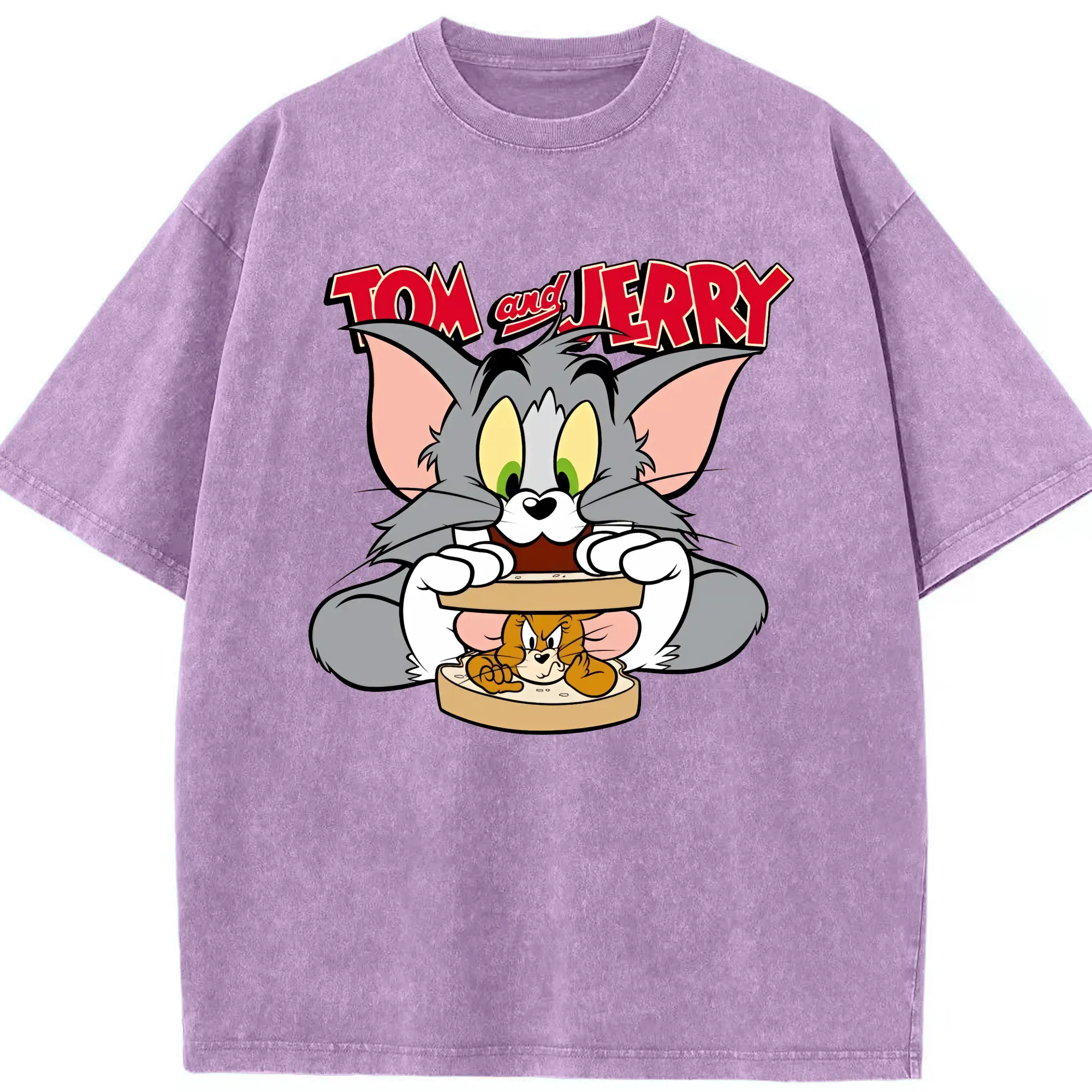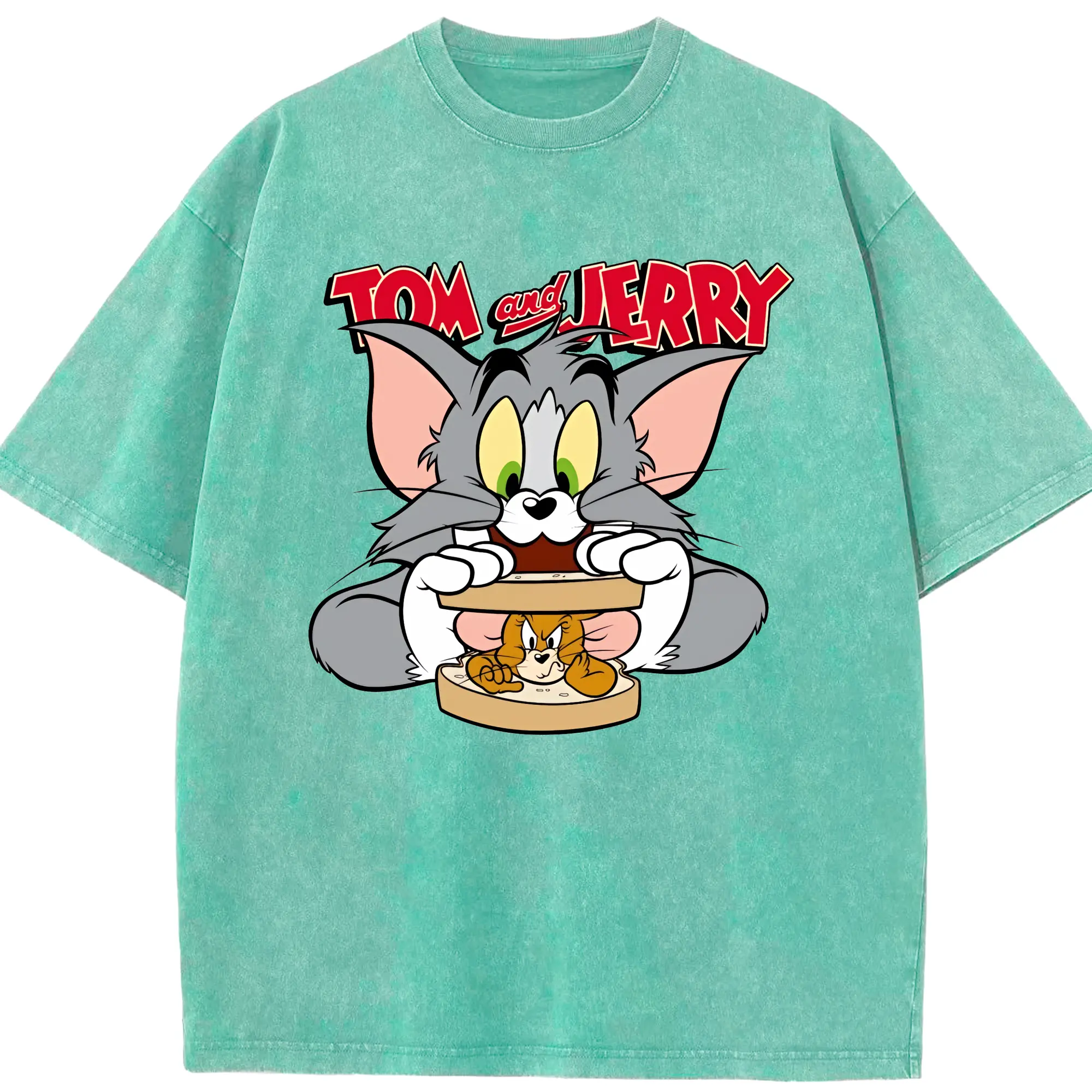 トムとジェリー グッズ トム - 綿100% 半袖Tシャツ ・ フロントプリント ・ 快適 通気性 ・ 日常使い 散歩 スポーツ用