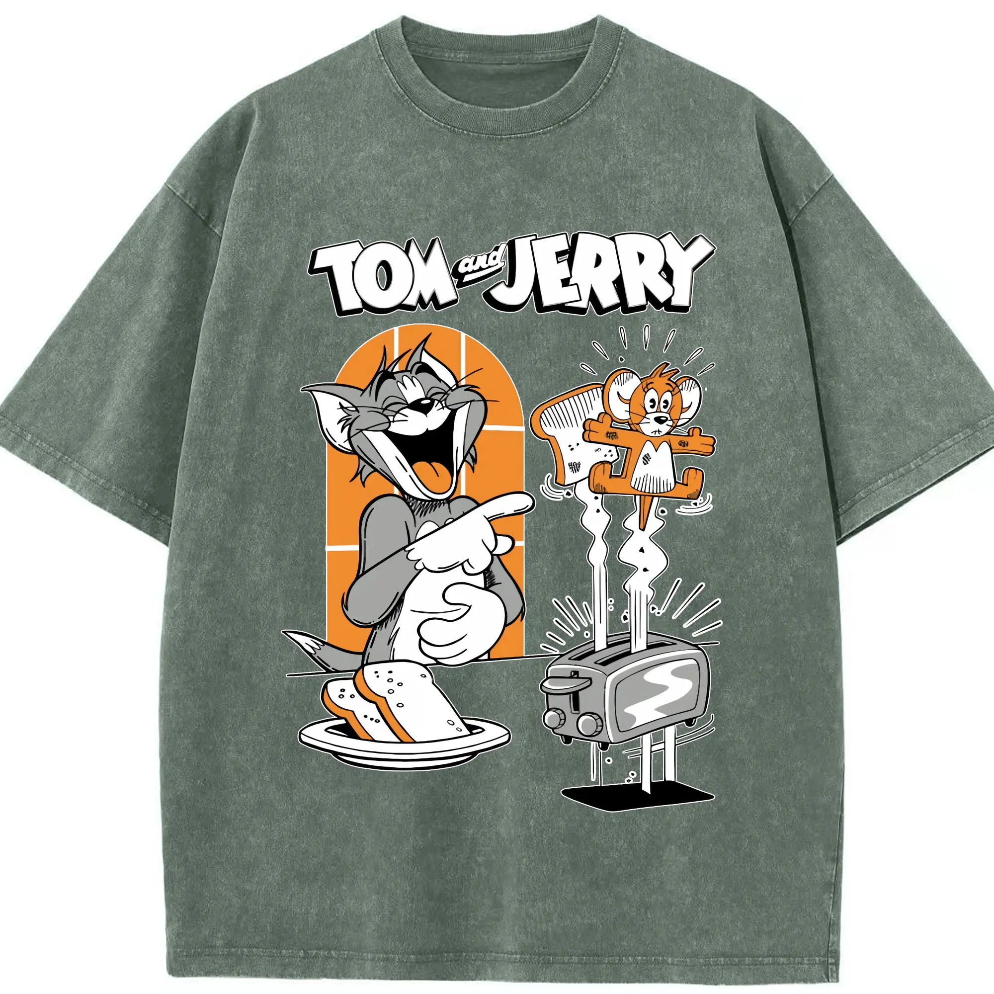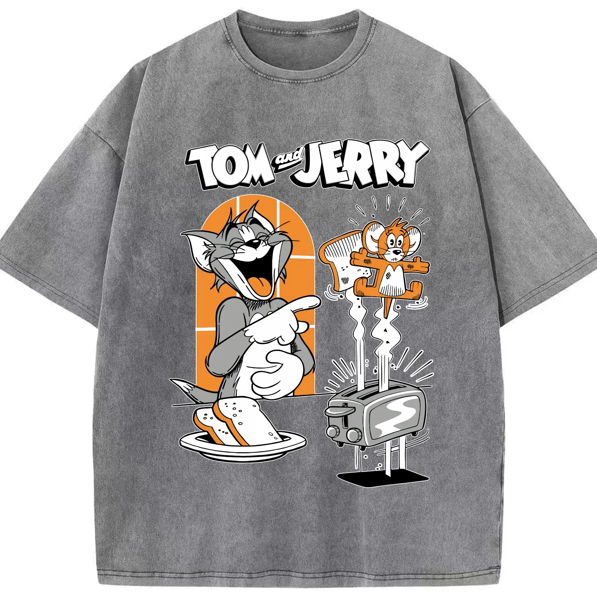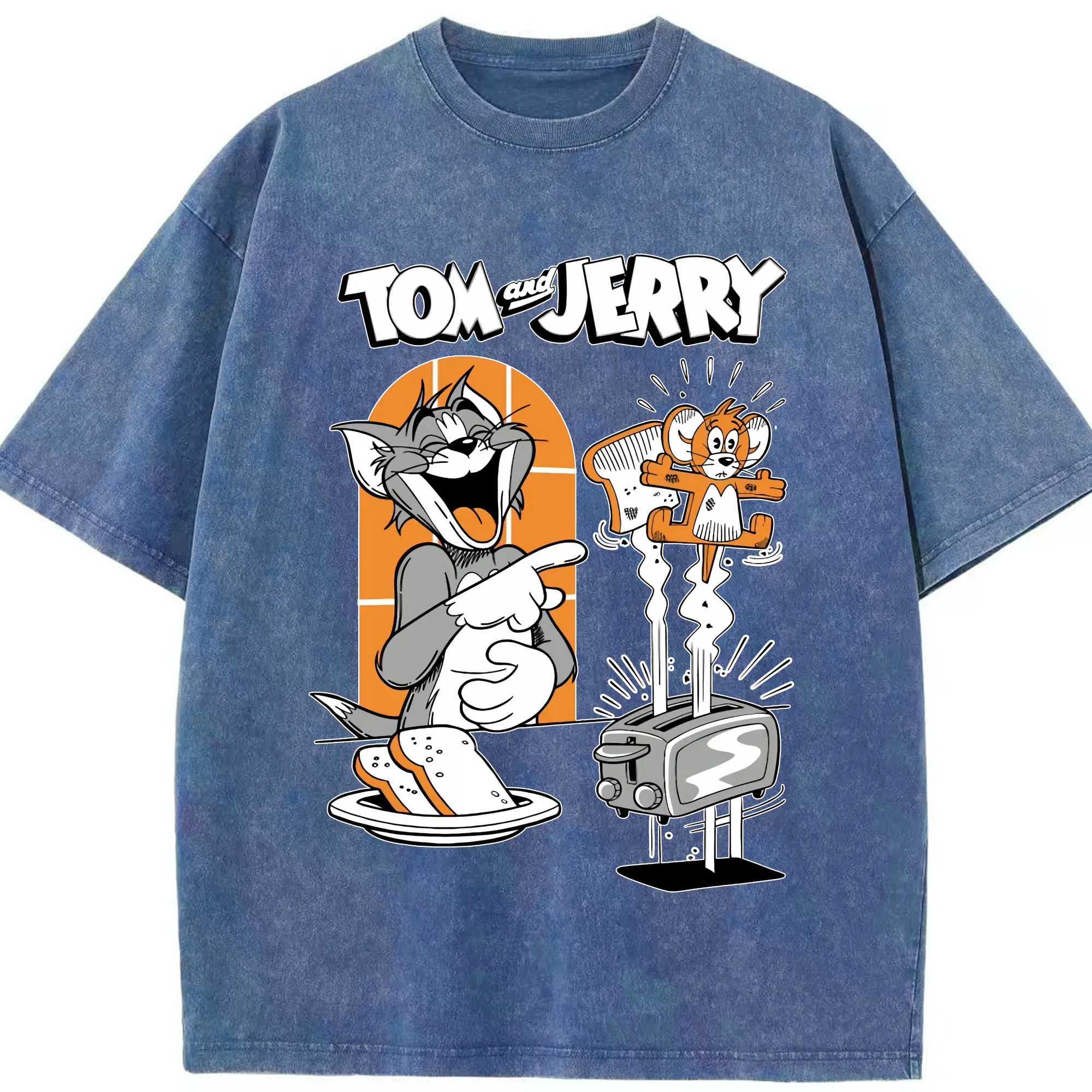 トムとジェリー グッズ トム - 綿100% ヴィンテージ風 半袖Tシャツ ・ 背面プリント ・ 柔らか肌触り ・ 通気性 快適 ・ スポーツ カジュアル 外出用
