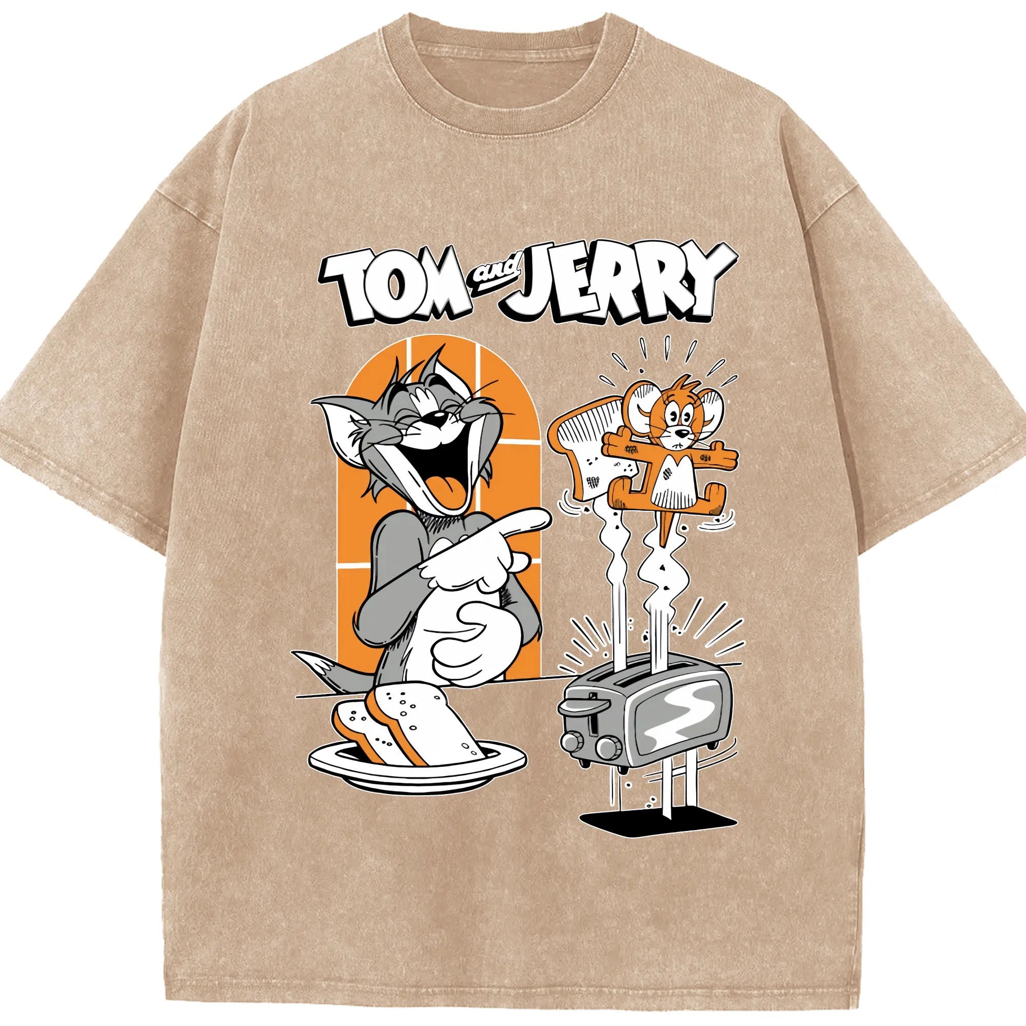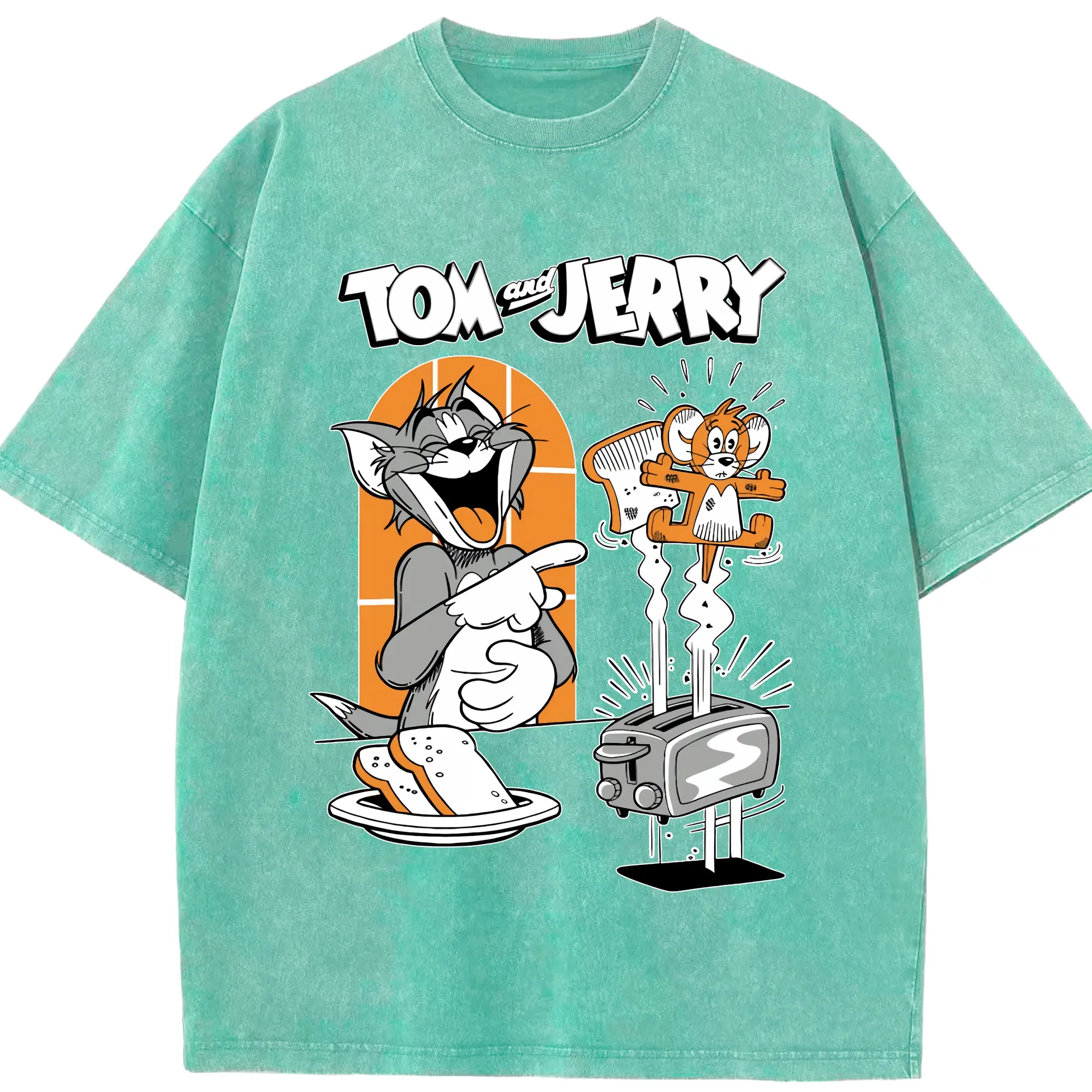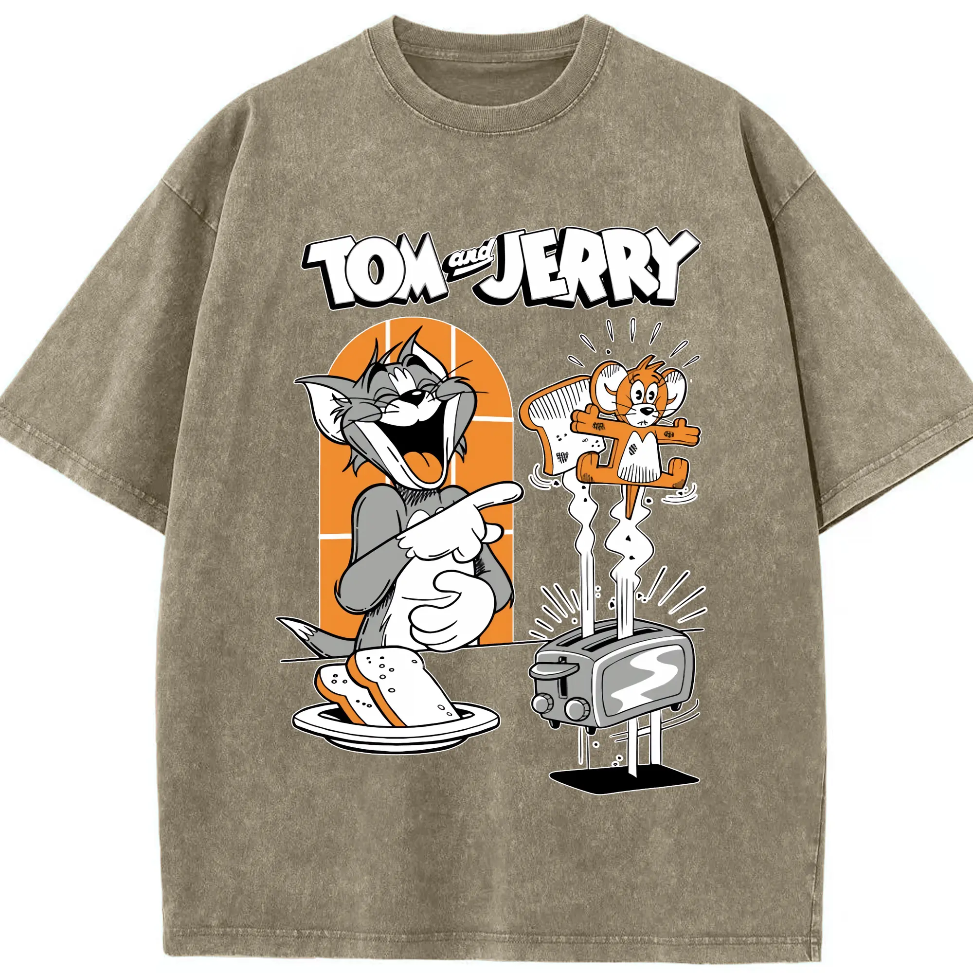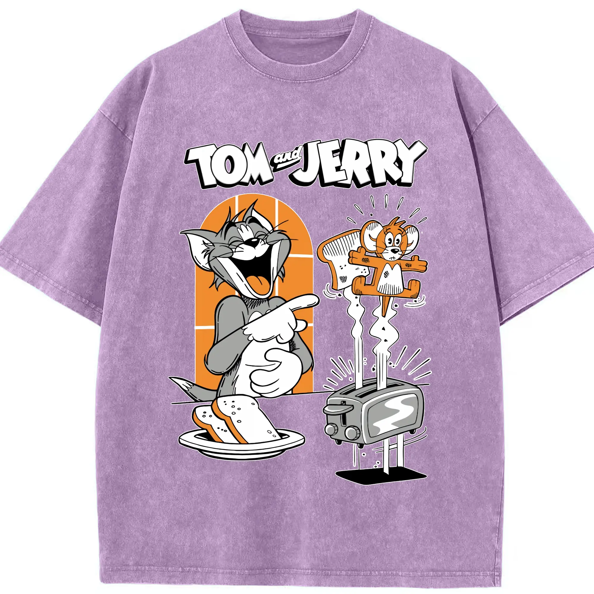 トムとジェリー グッズ トム - 綿100% ヴィンテージ風 半袖Tシャツ ・ 背面プリント ・ 柔らか肌触り ・ 通気性 快適 ・ スポーツ カジュアル 外出用