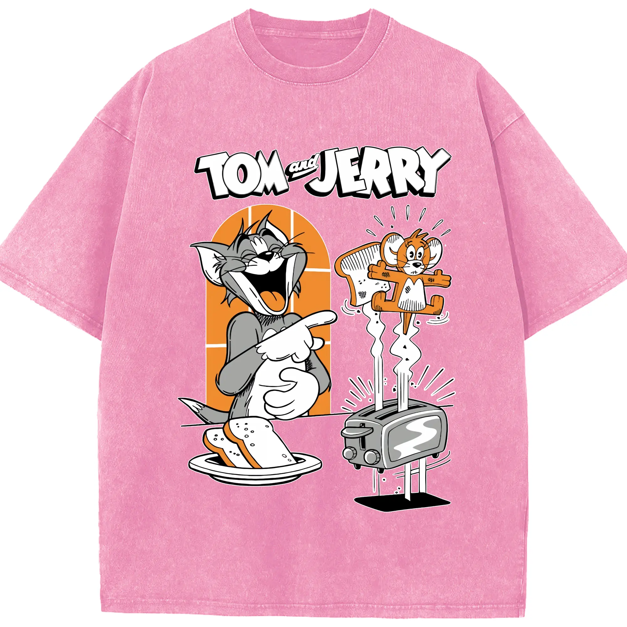 トムとジェリー グッズ トム - 綿100% 半袖Tシャツ ・ バックプリント ・ 快適 通気性 ・ 日常使い 散歩 スポーツ用