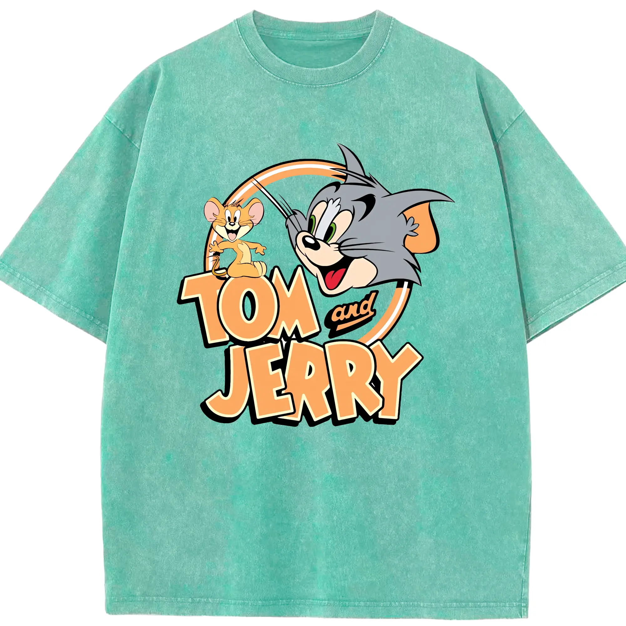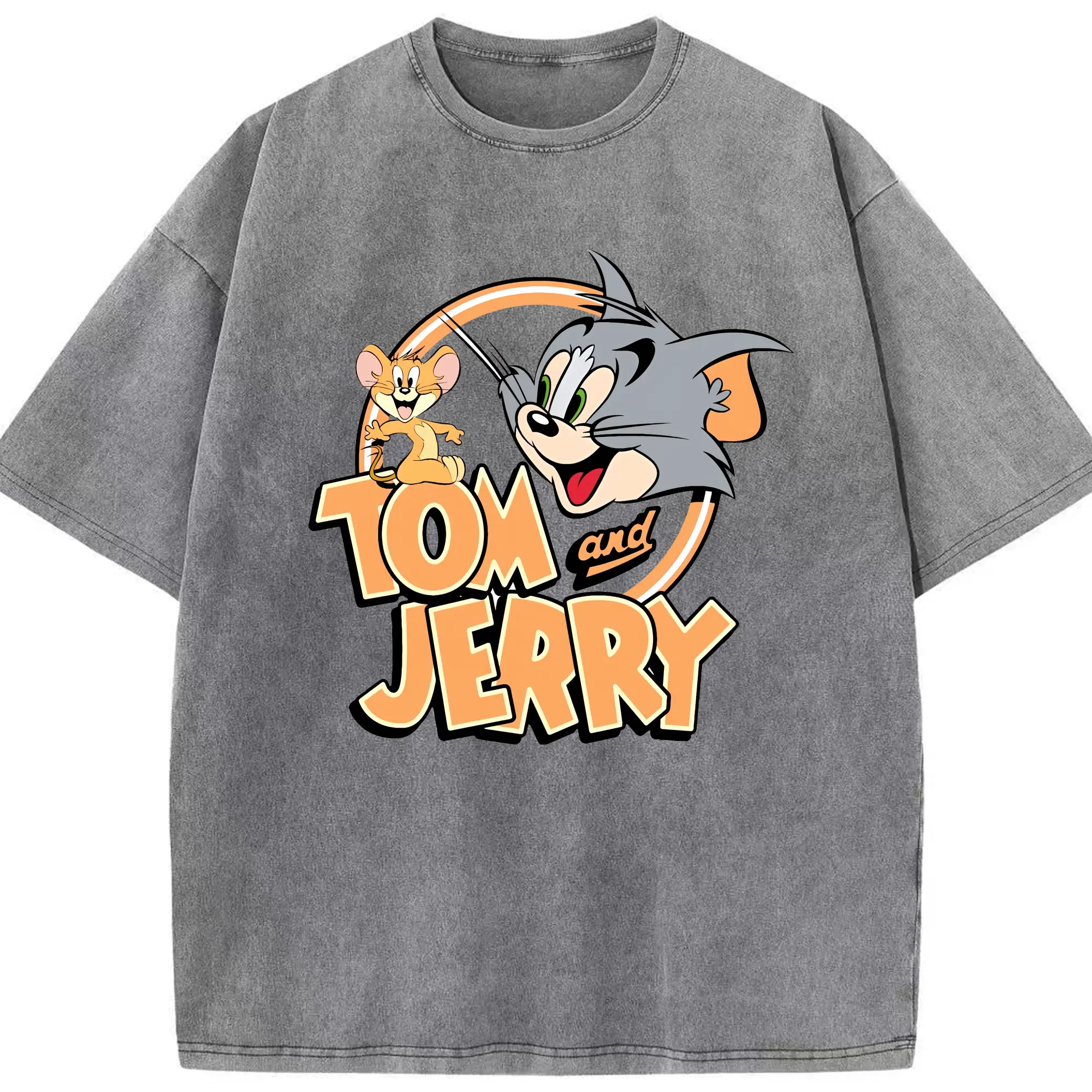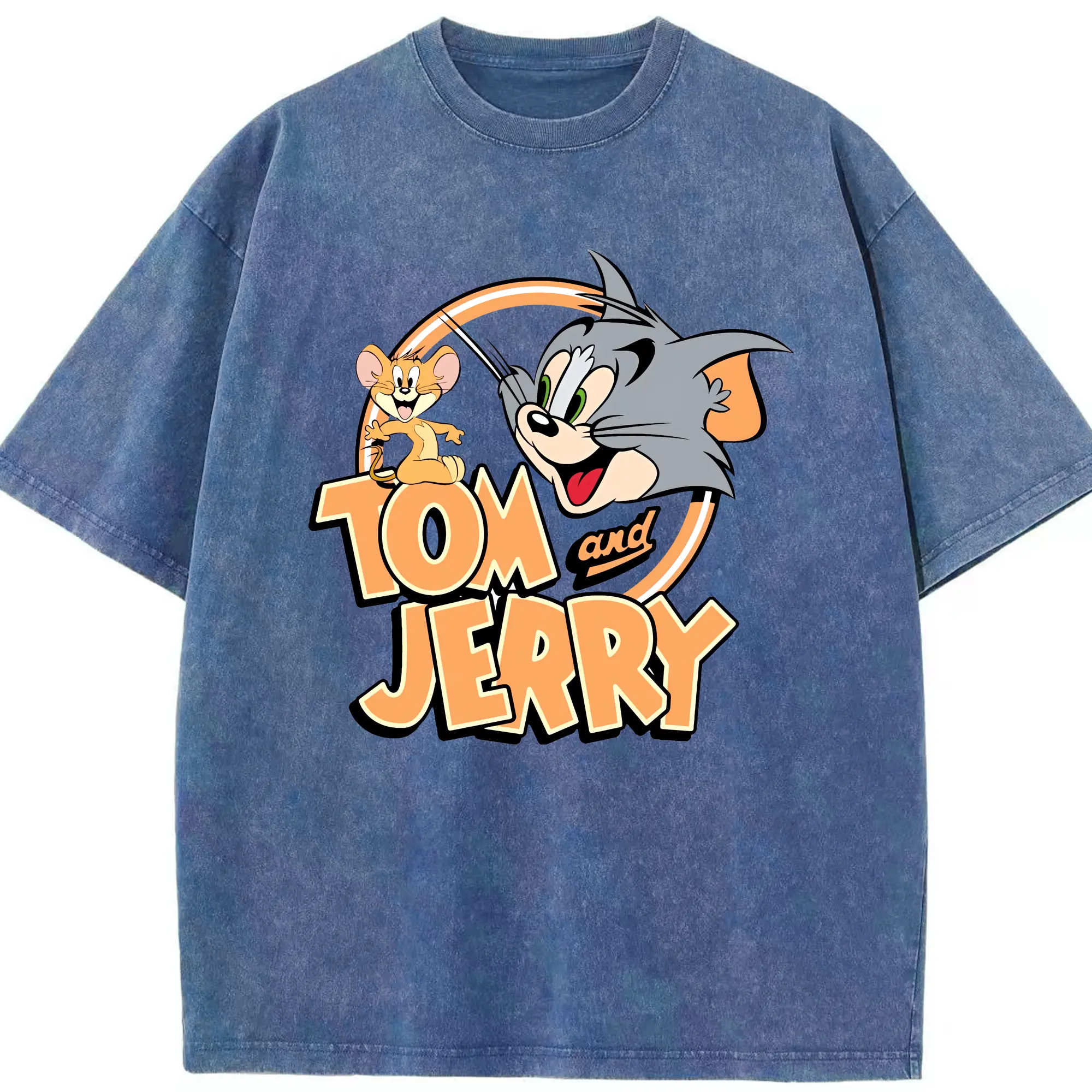 トムとジェリー グッズ トム - 綿100% ヴィンテージ風 半袖Tシャツ ・ 背面プリント ・ 柔らか肌触り ・ 通気性 快適 ・ スポーツ カジュアル 外出用