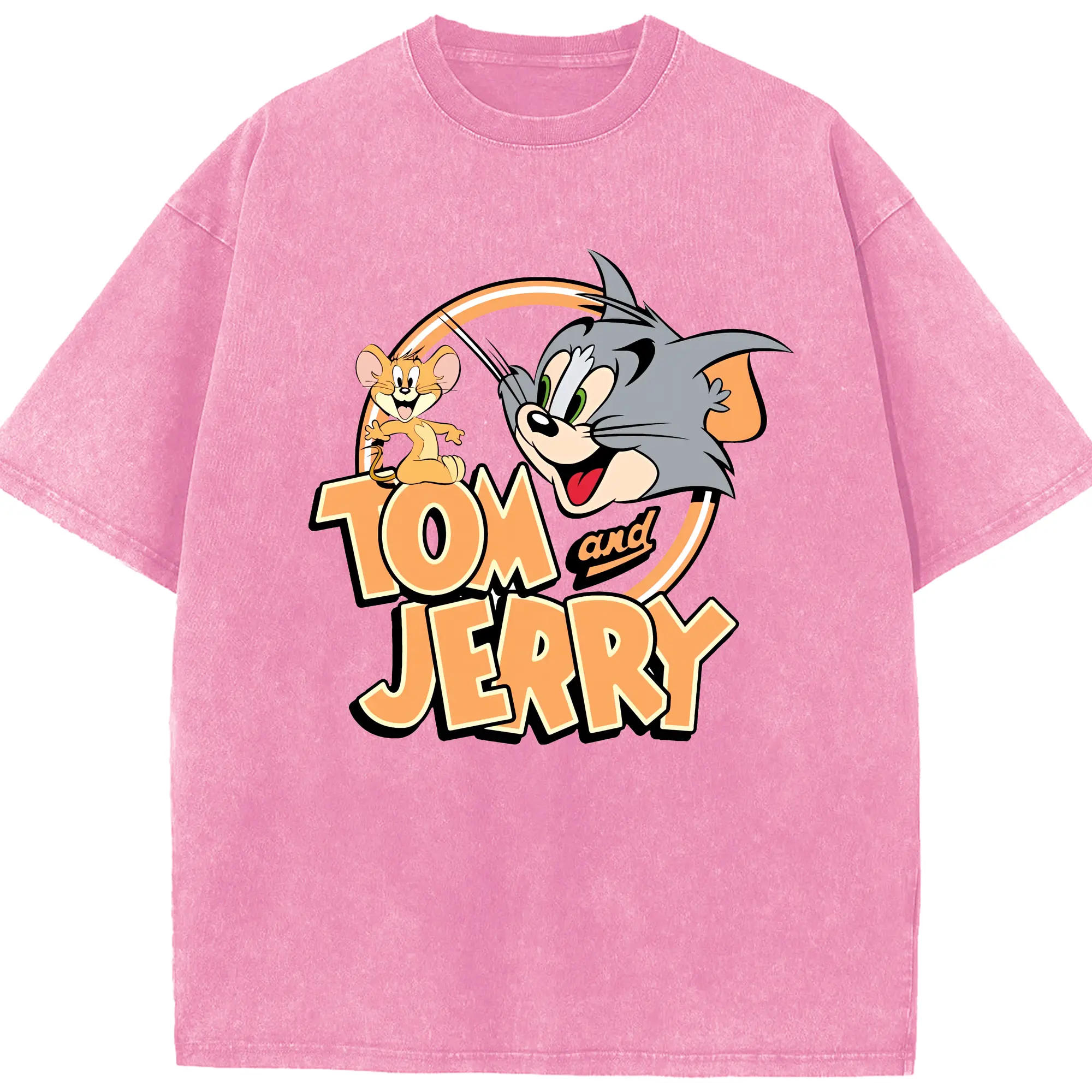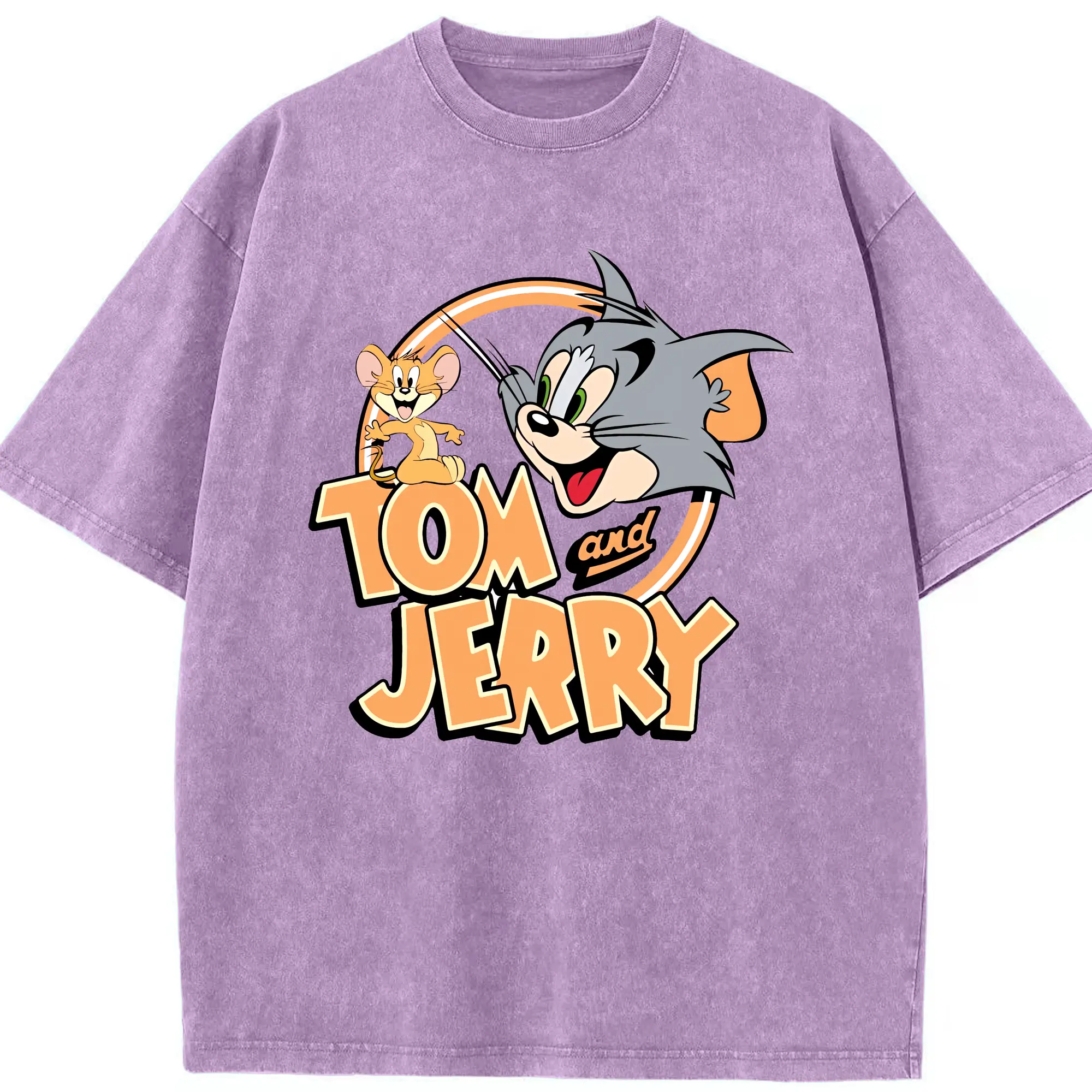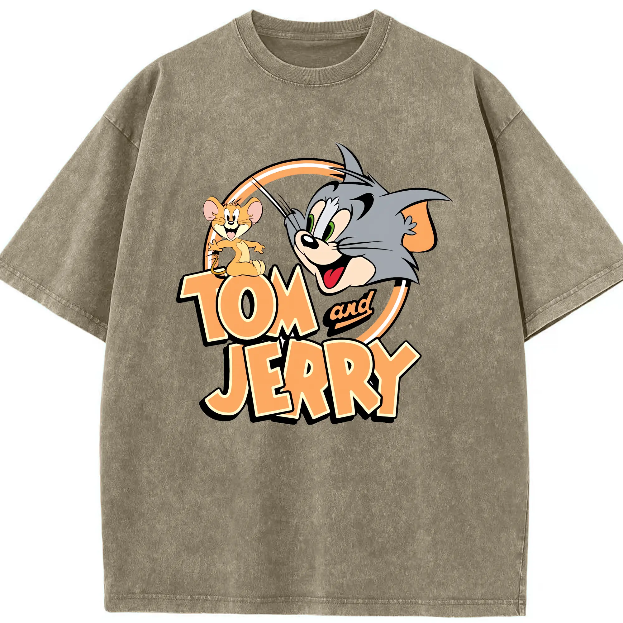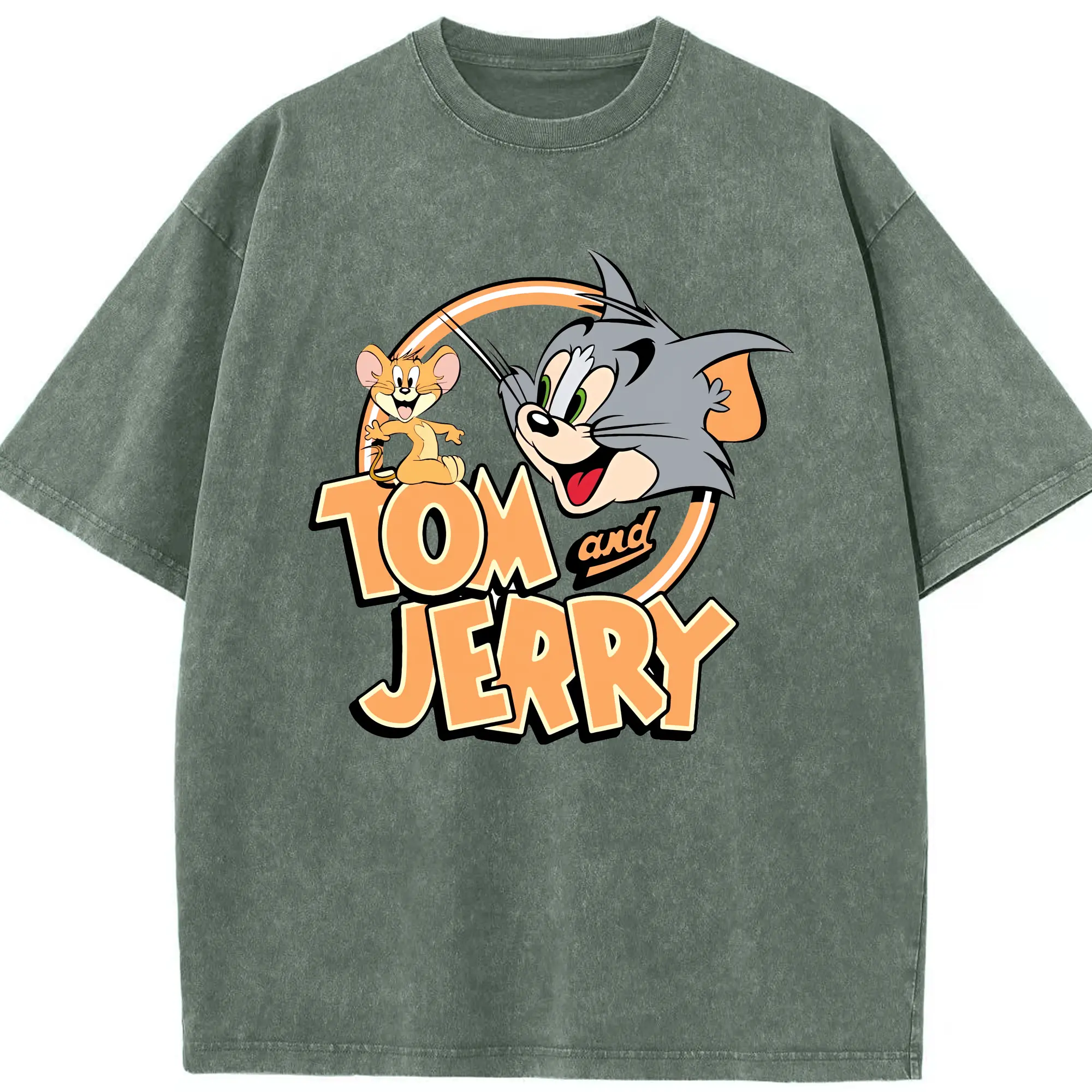 トムとジェリー グッズ トム - 綿100% ヴィンテージ風 半袖Tシャツ ・ 背面プリント ・ 柔らか肌触り ・ 通気性 快適 ・ スポーツ カジュアル 外出用