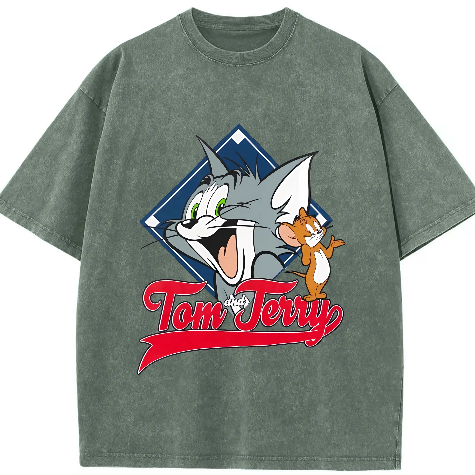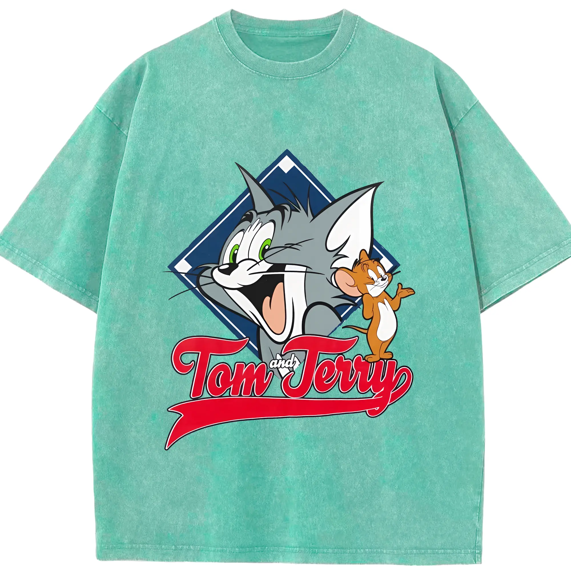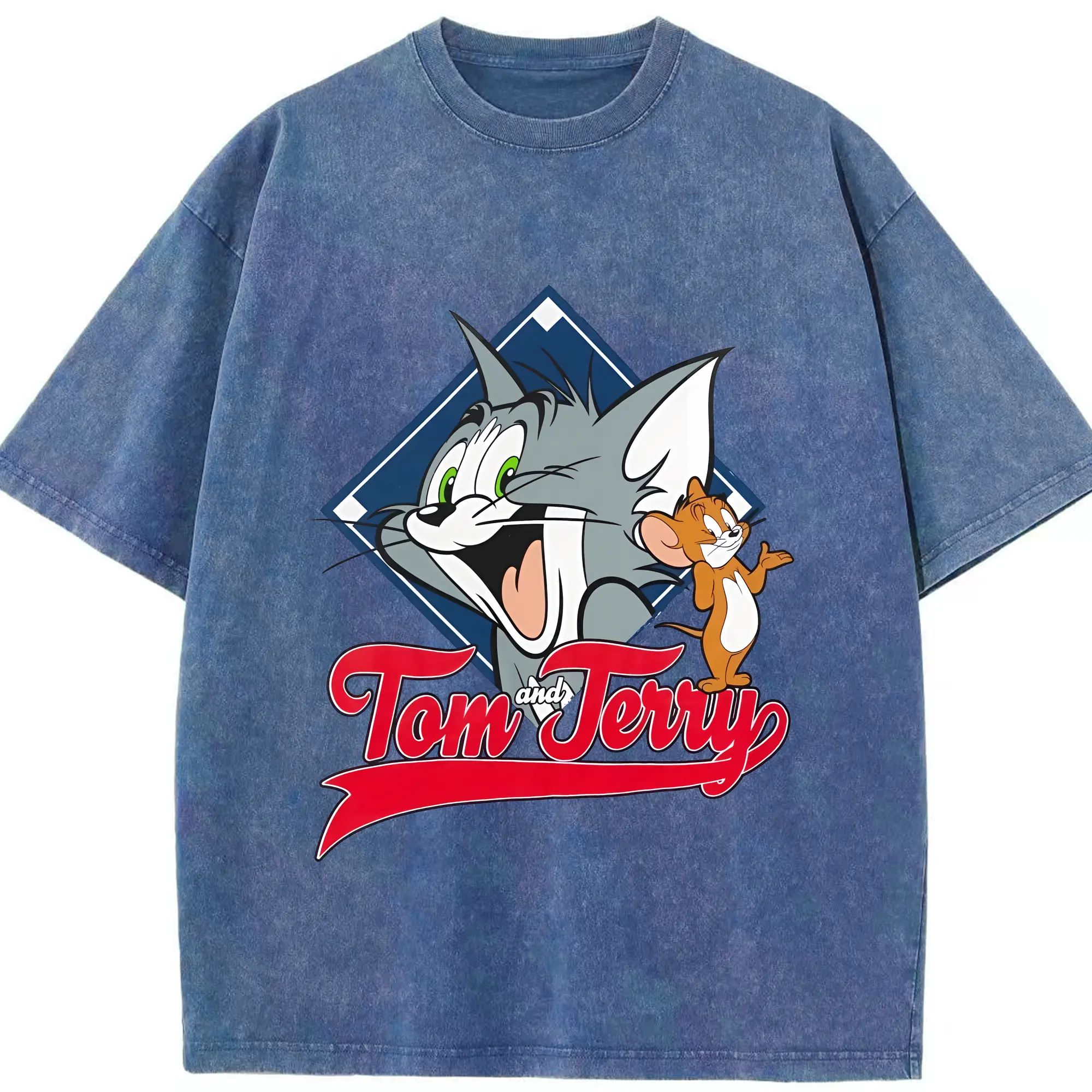 トムとジェリー グッズ トム - 綿100% ヴィンテージ風 半袖Tシャツ ・ 背面プリント ・ 柔らか肌触り ・ 通気性 快適 ・ スポーツ カジュアル 外出用