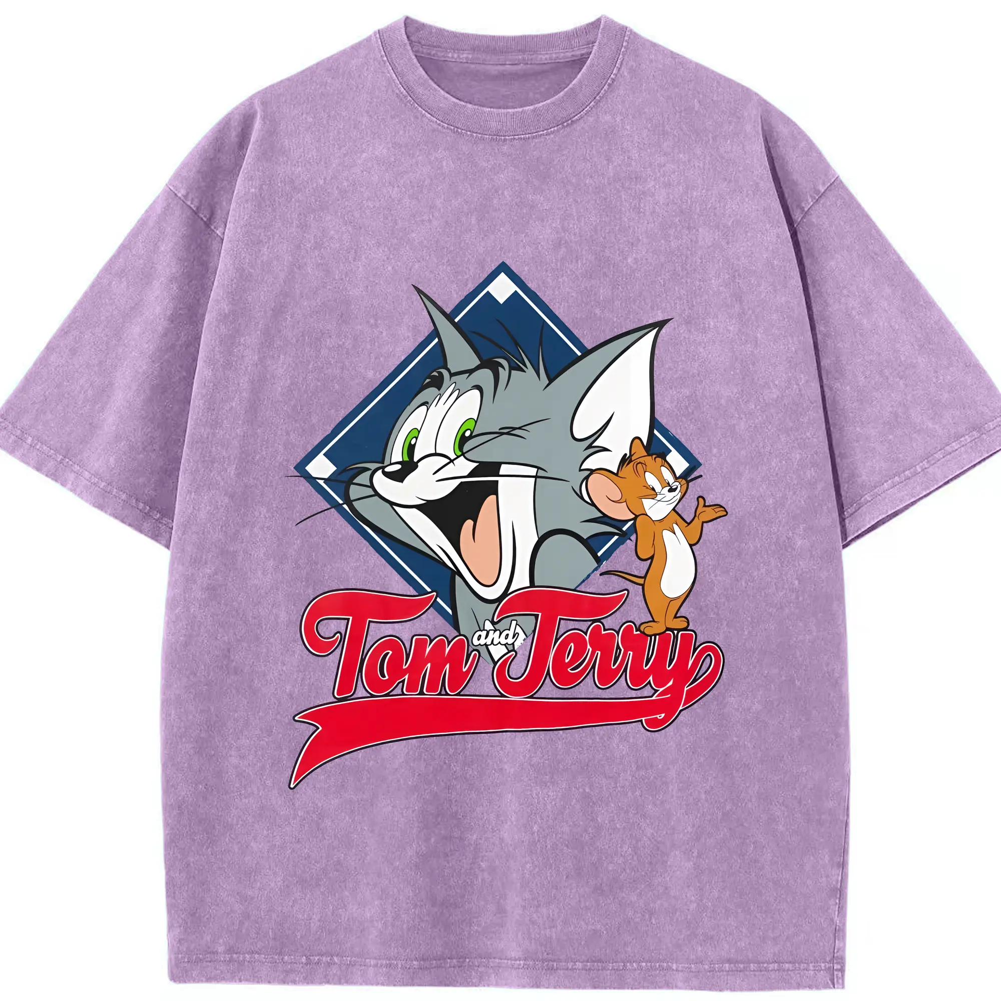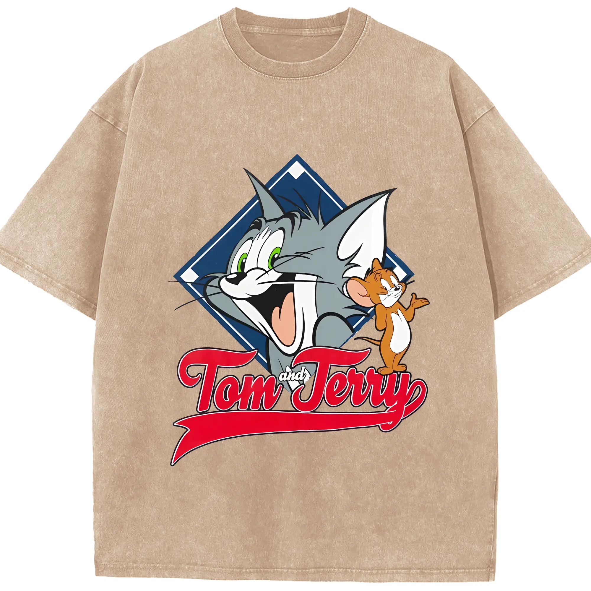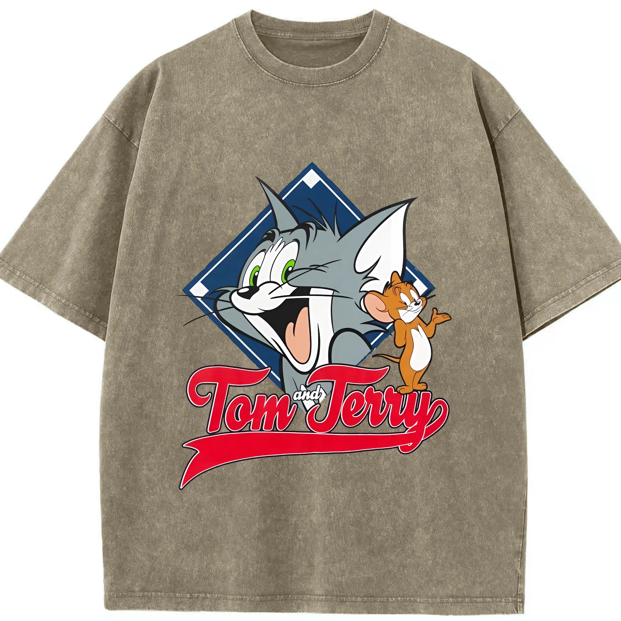 トムとジェリー グッズ トム - 綿100% ヴィンテージ風 半袖Tシャツ ・ 背面プリント ・ 柔らか肌触り ・ 通気性 快適 ・ スポーツ カジュアル 外出用