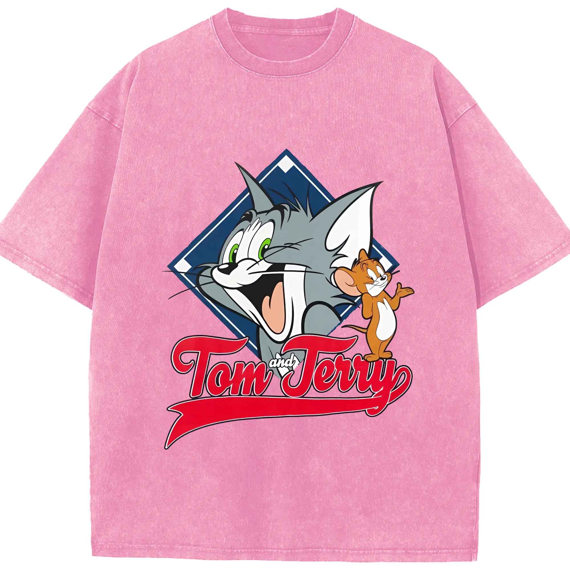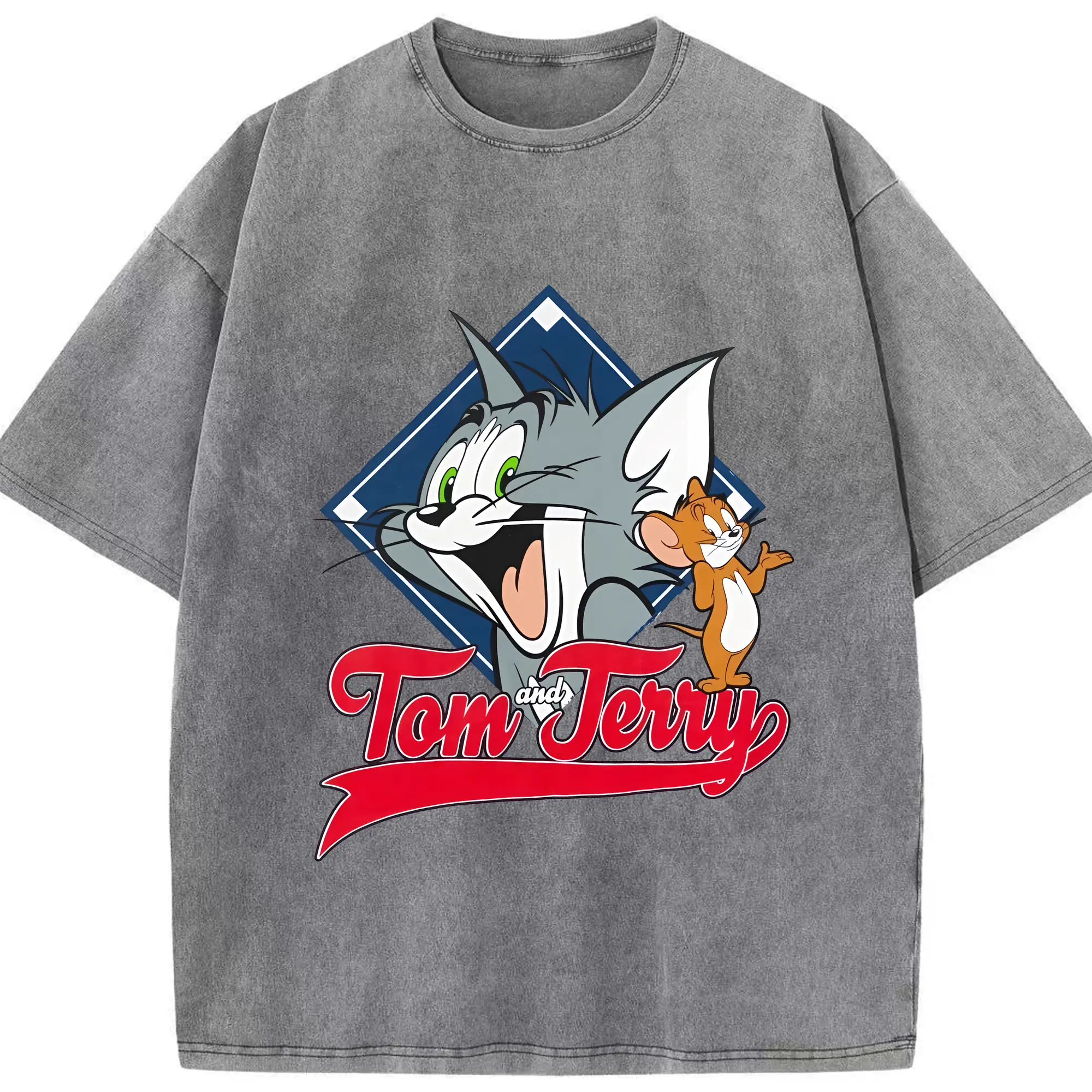 トムとジェリー グッズ トム - 綿100% 半袖Tシャツ ・ フロントプリント ・ 快適 通気性 ・ 日常使い 散歩 スポーツ用