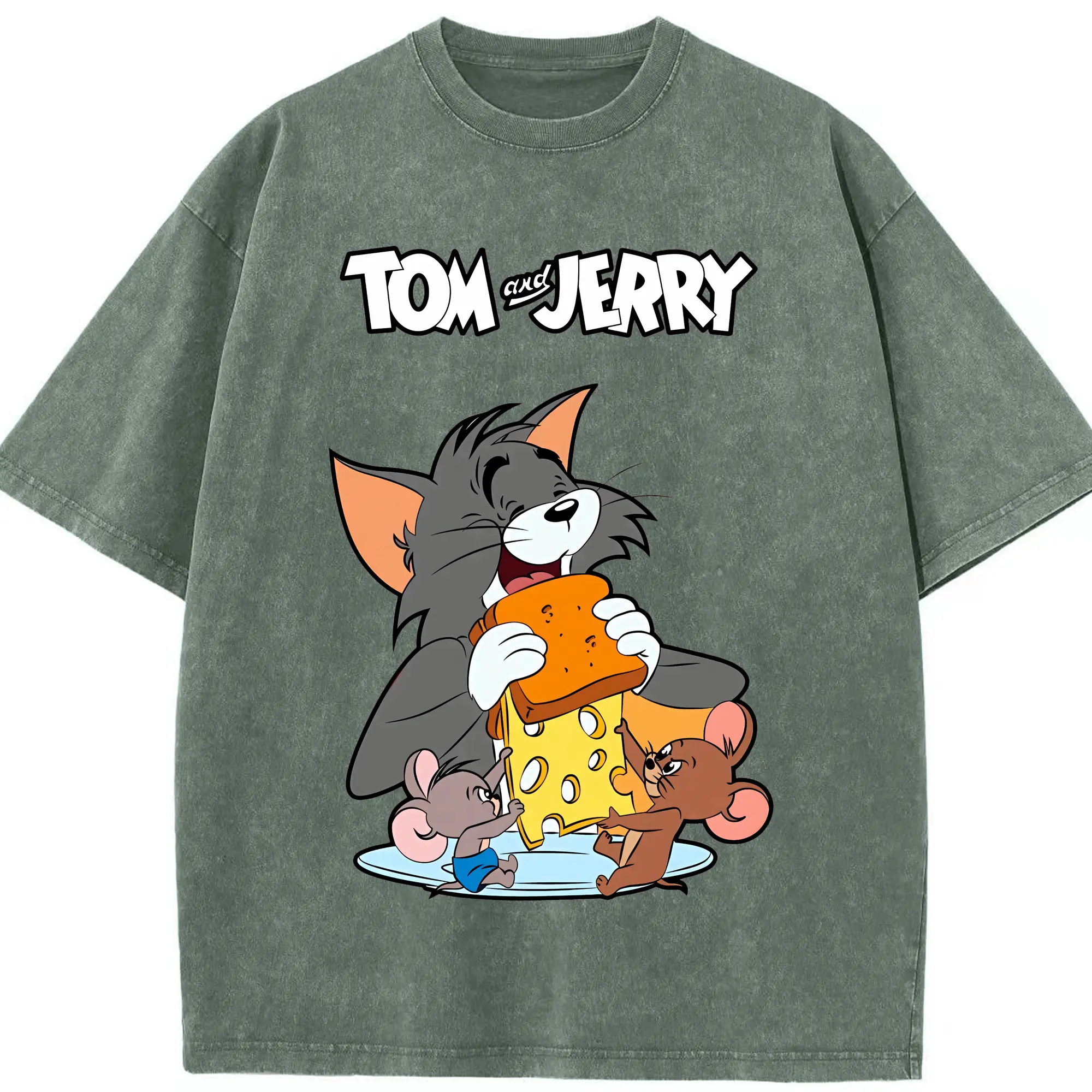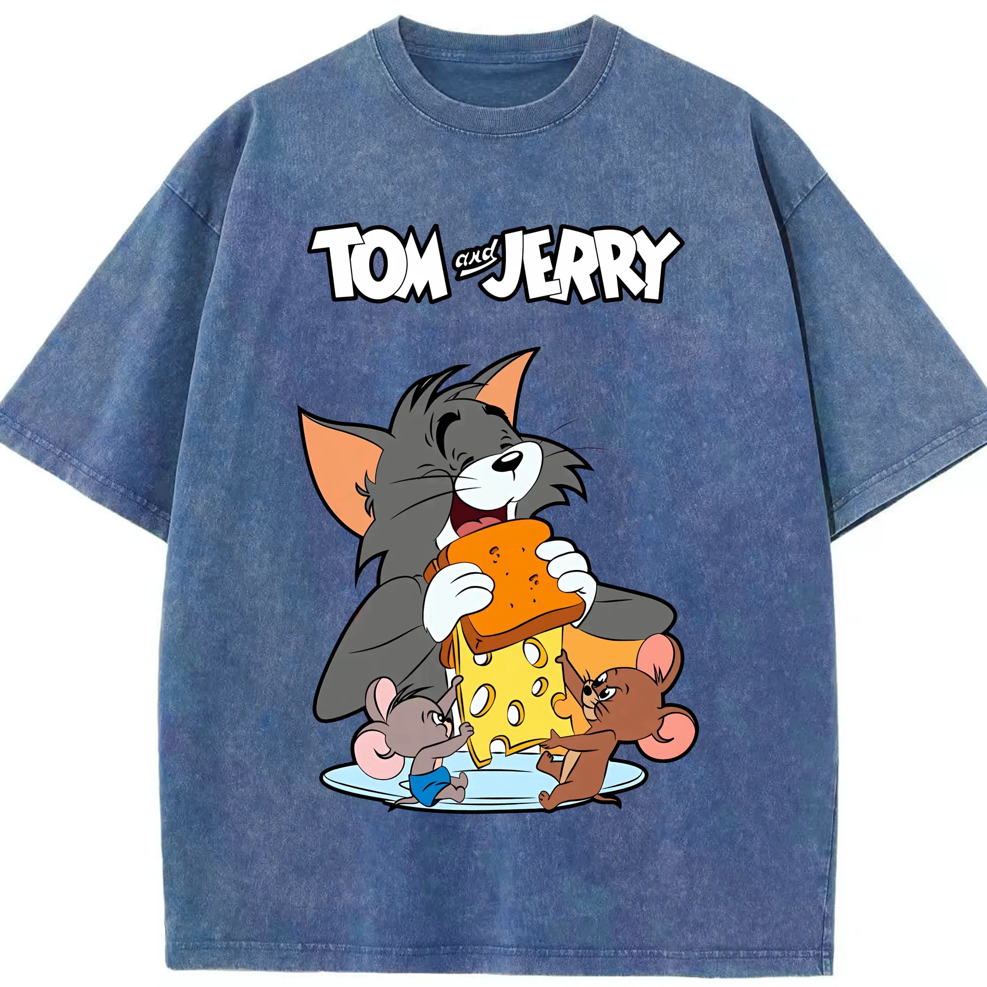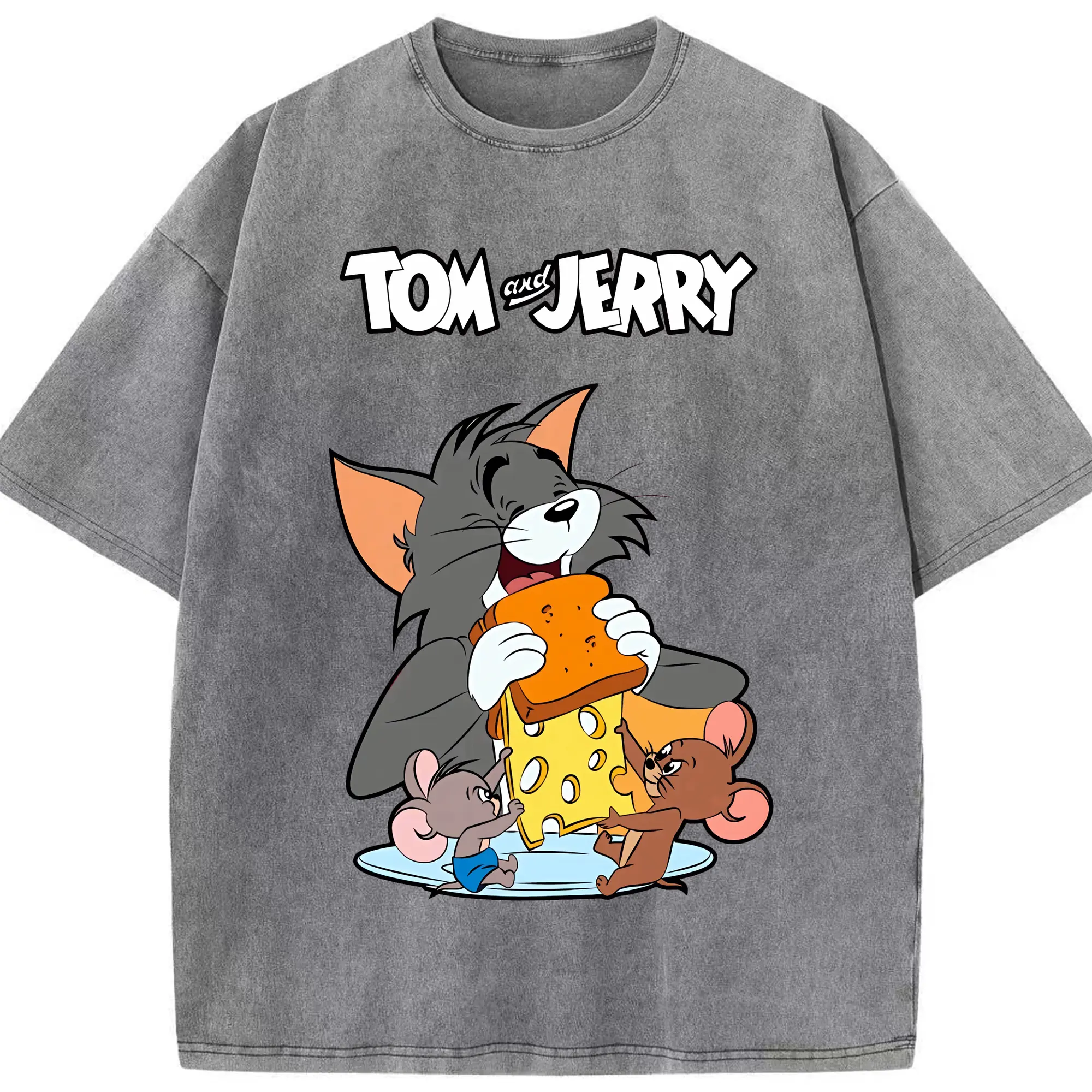 トムとジェリー グッズ トム - 綿100% ヴィンテージ風 半袖Tシャツ ・ 背面プリント ・ 柔らか肌触り ・ 通気性 快適 ・ スポーツ カジュアル 外出用