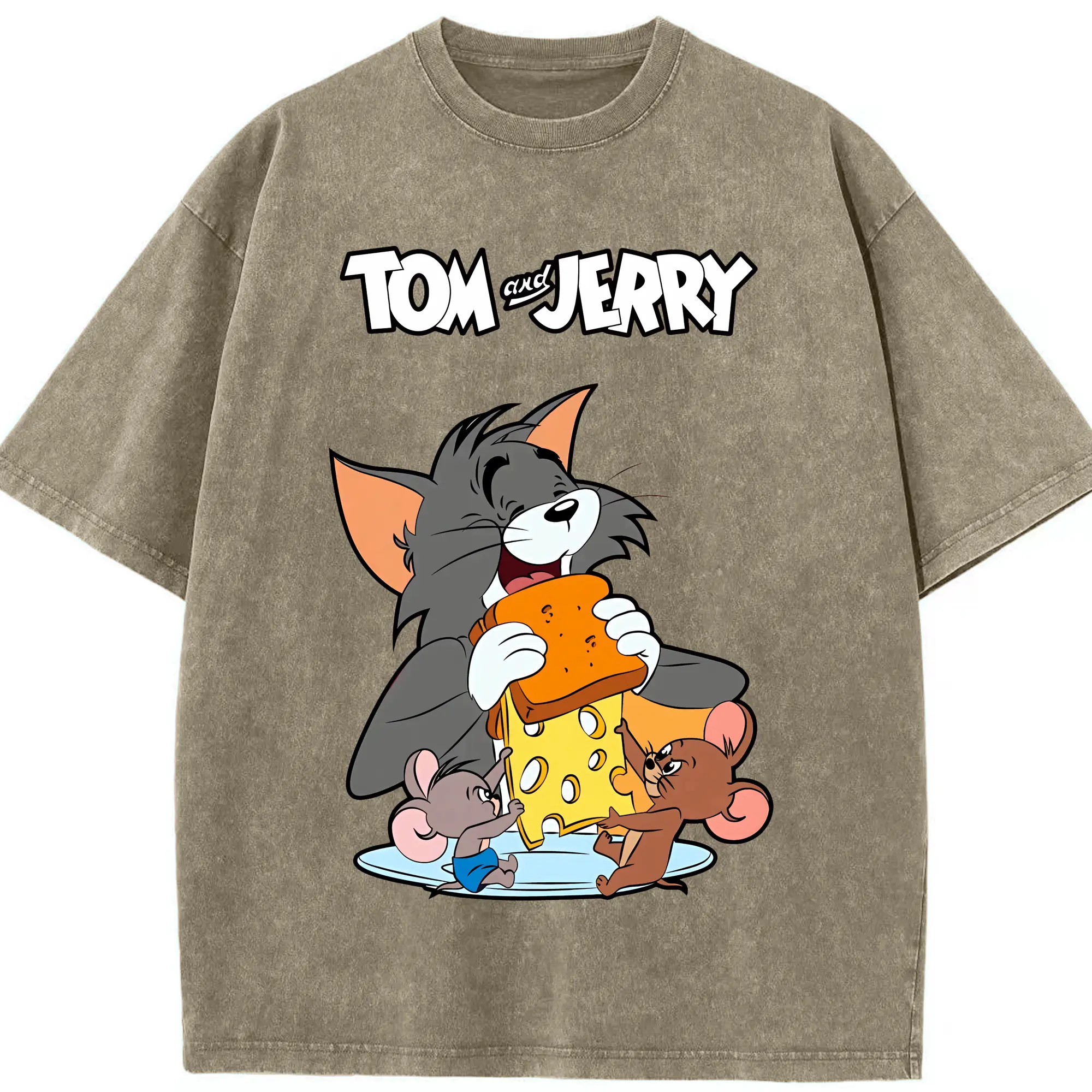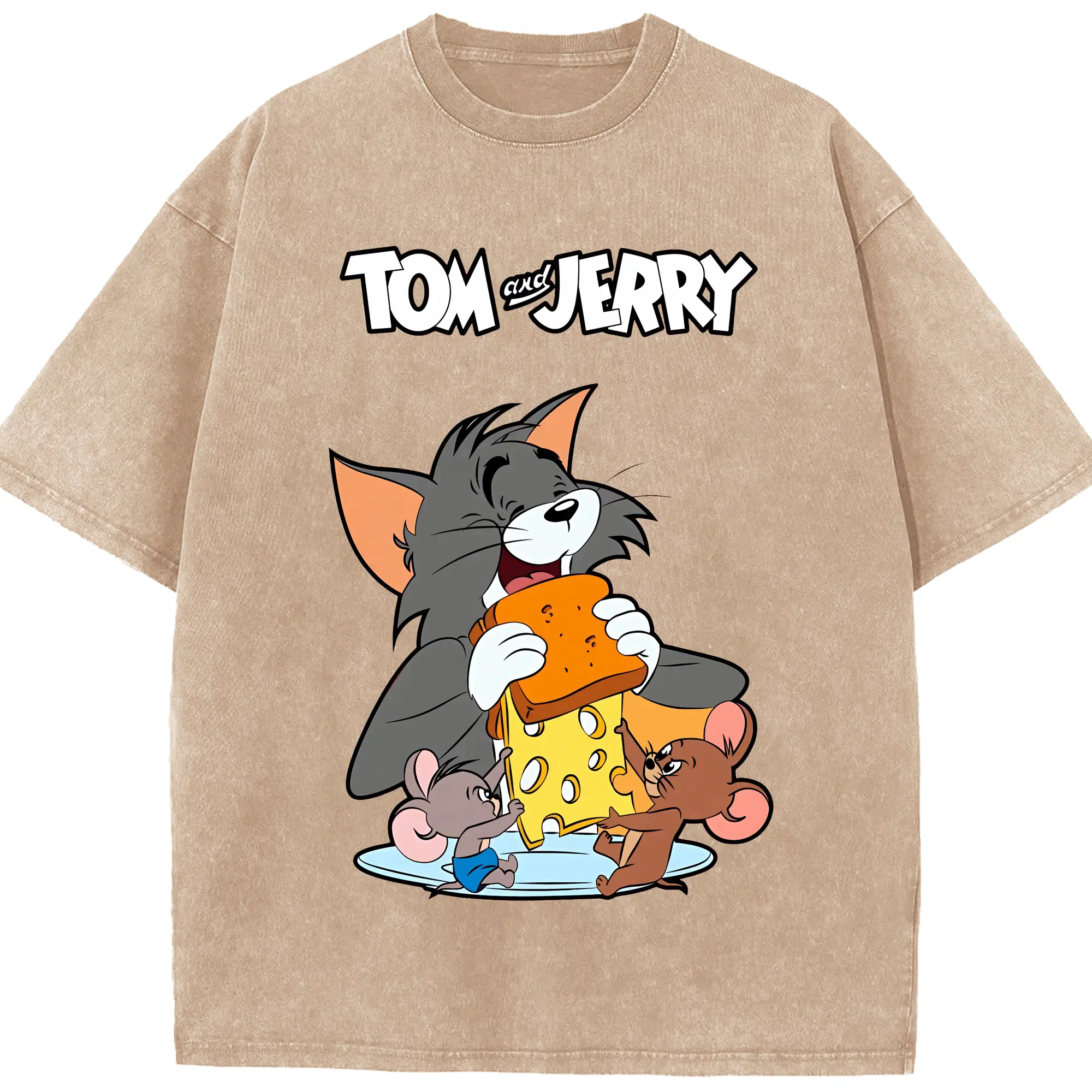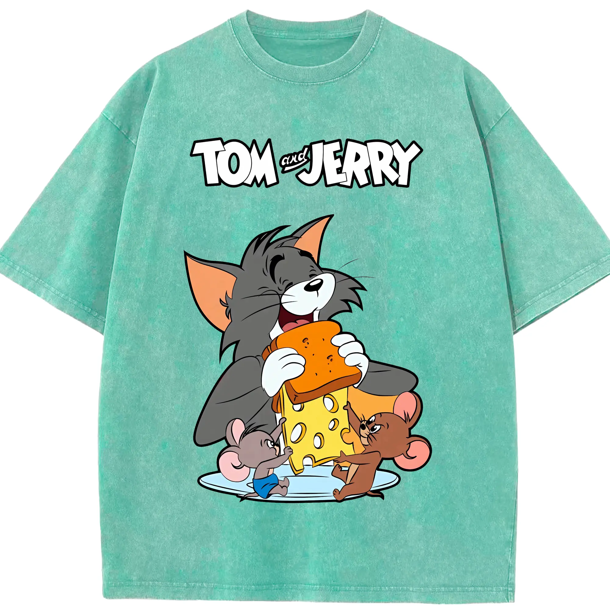 トムとジェリー グッズ トム - 綿100% ヴィンテージ風 半袖Tシャツ ・ 背面プリント ・ 柔らか肌触り ・ 通気性 快適 ・ スポーツ カジュアル 外出用