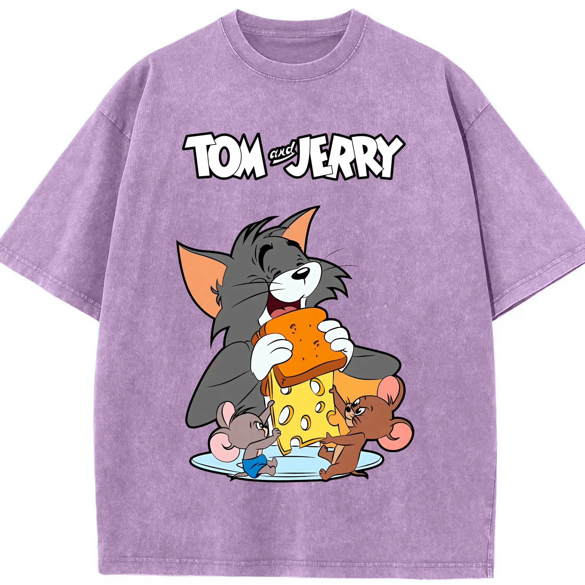 トムとジェリー グッズ トム - 綿100% 半袖Tシャツ ・ フロントプリント ・ 快適 通気性 ・ 日常使い 散歩 スポーツ用