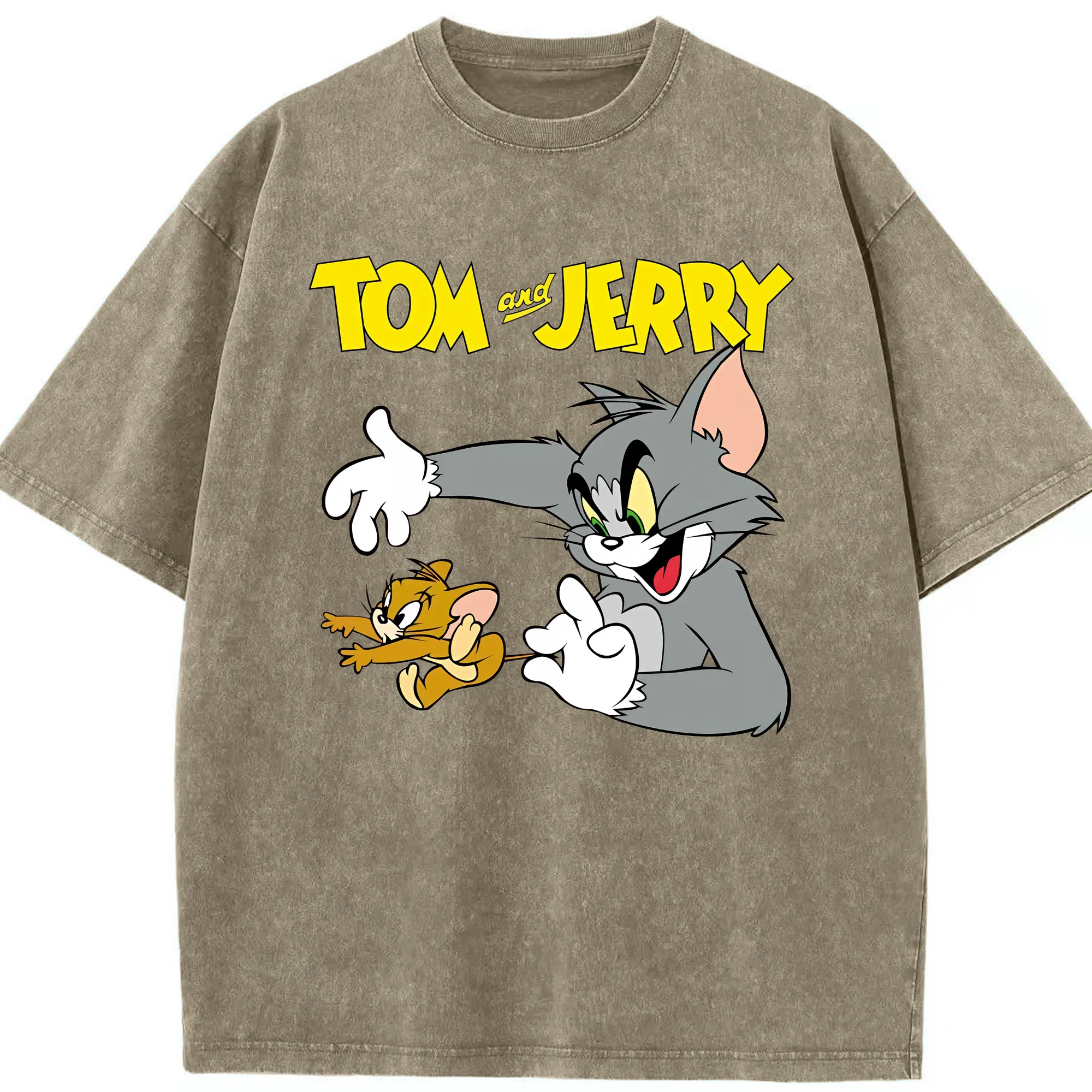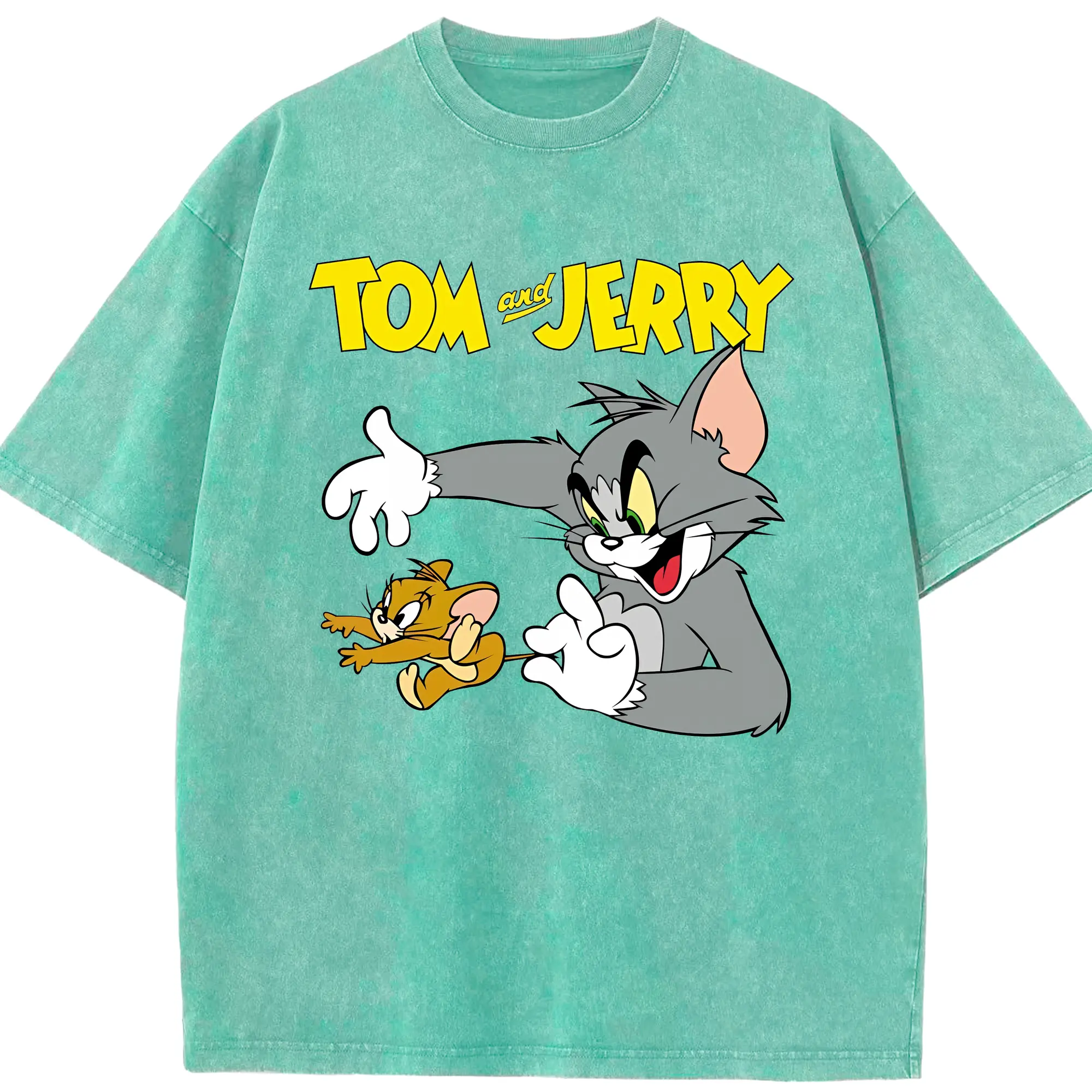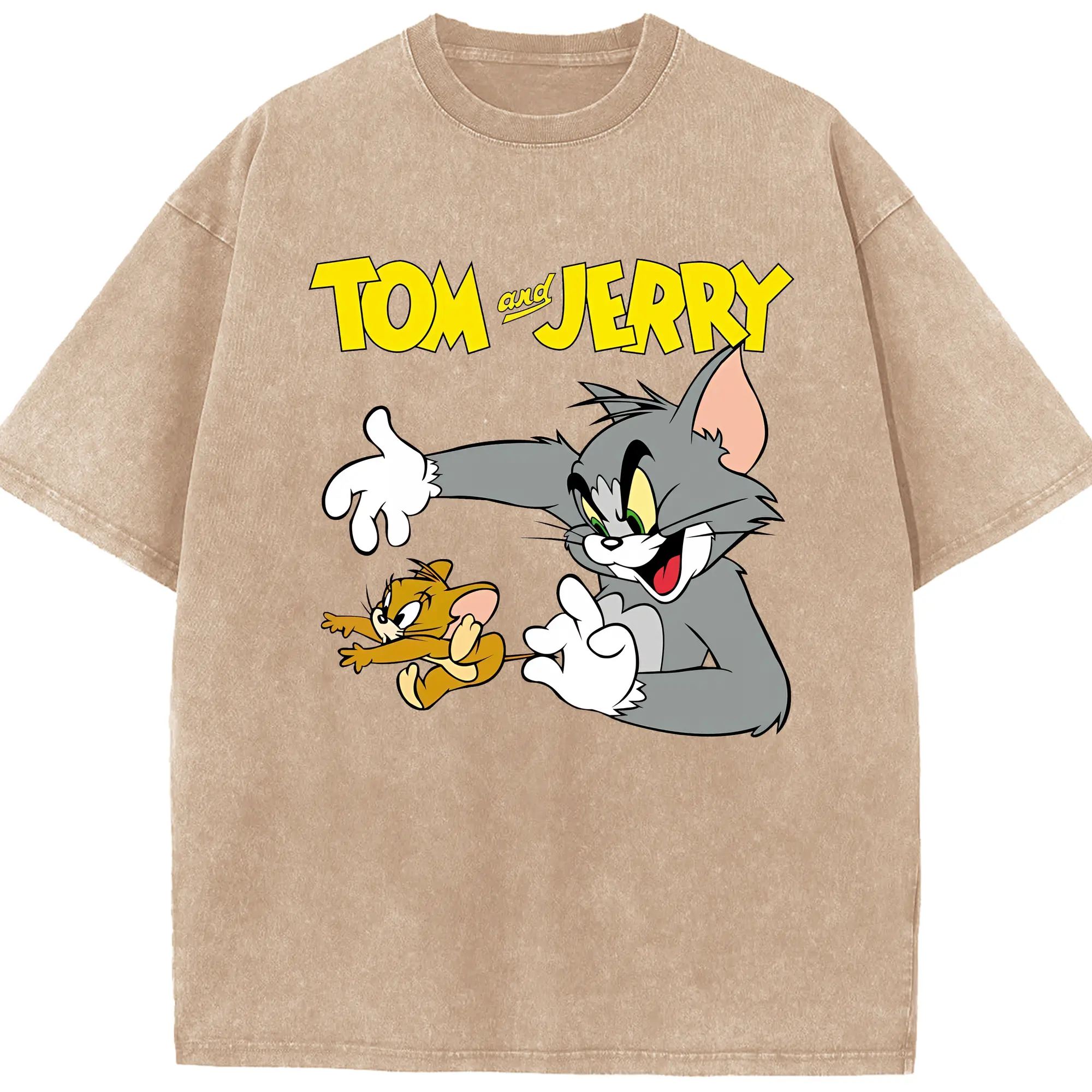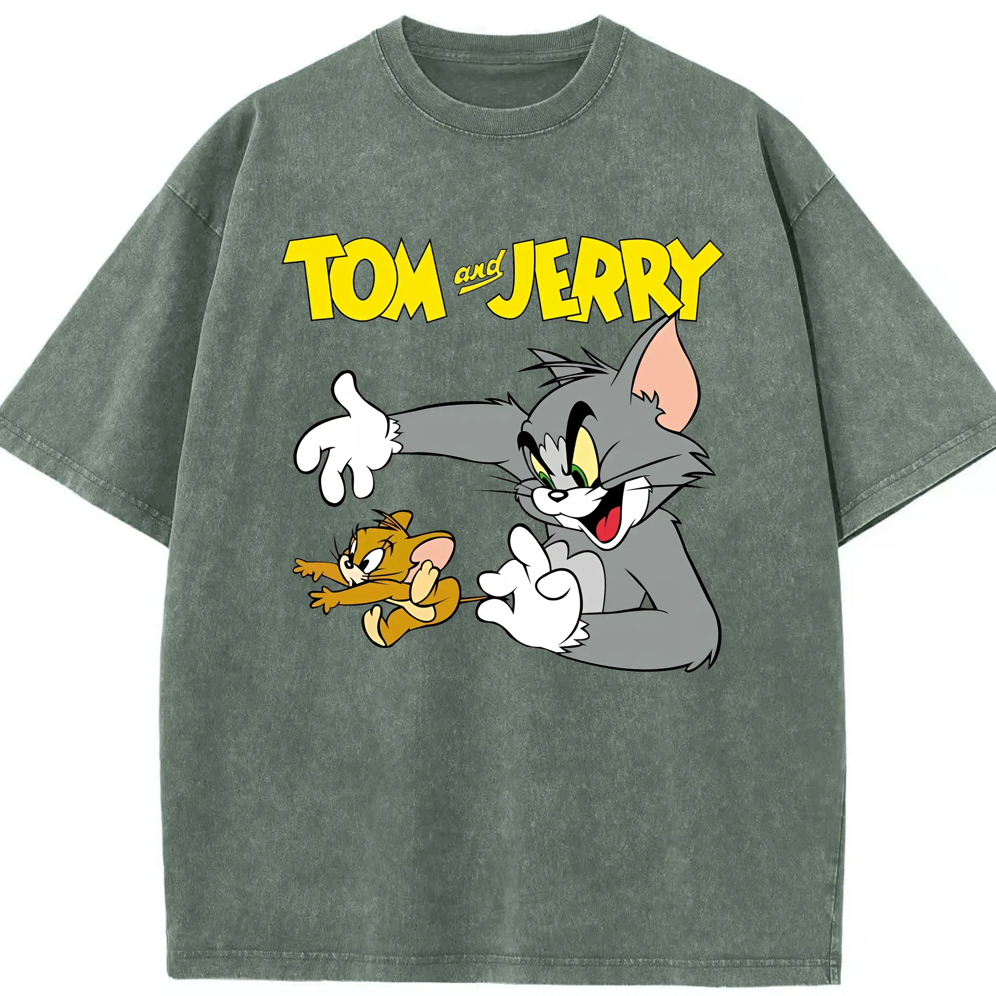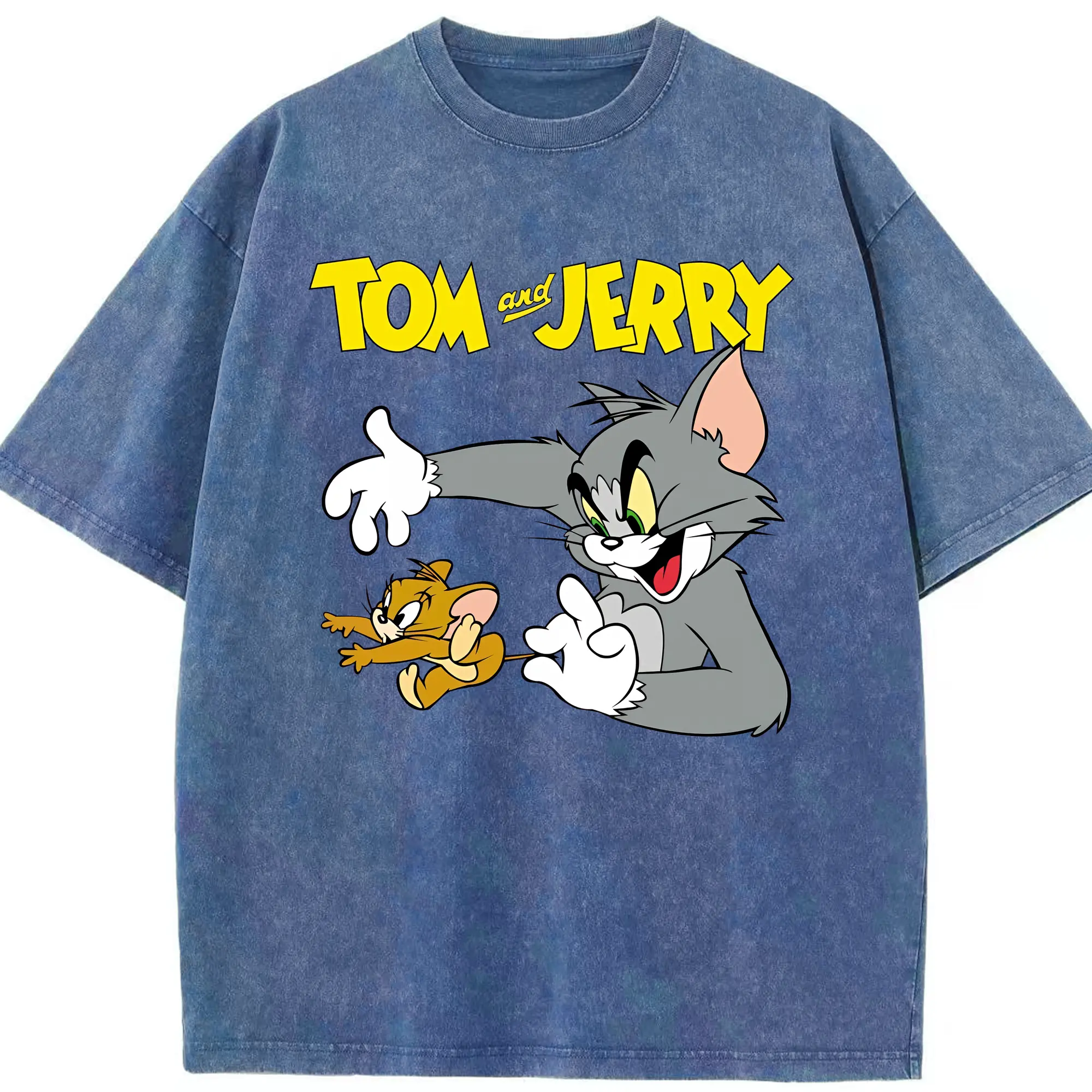 トムとジェリー グッズ トム - 綿100% ヴィンテージ風 半袖Tシャツ ・ 背面プリント ・ 柔らか肌触り ・ 通気性 快適 ・ スポーツ カジュアル 外出用