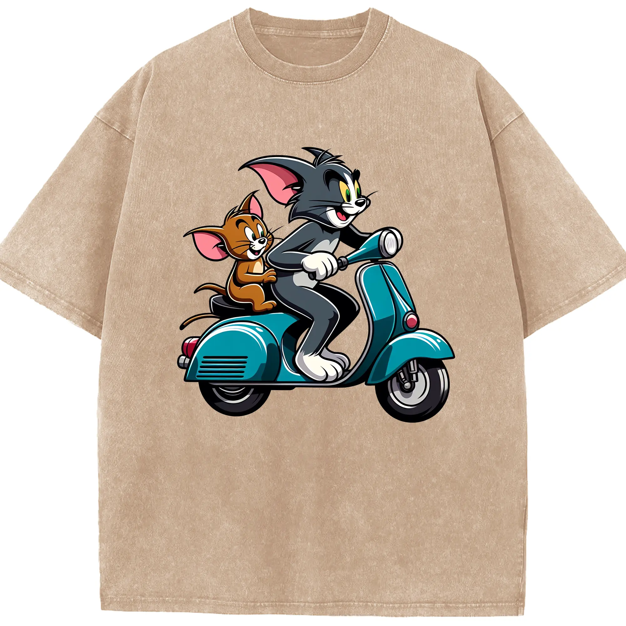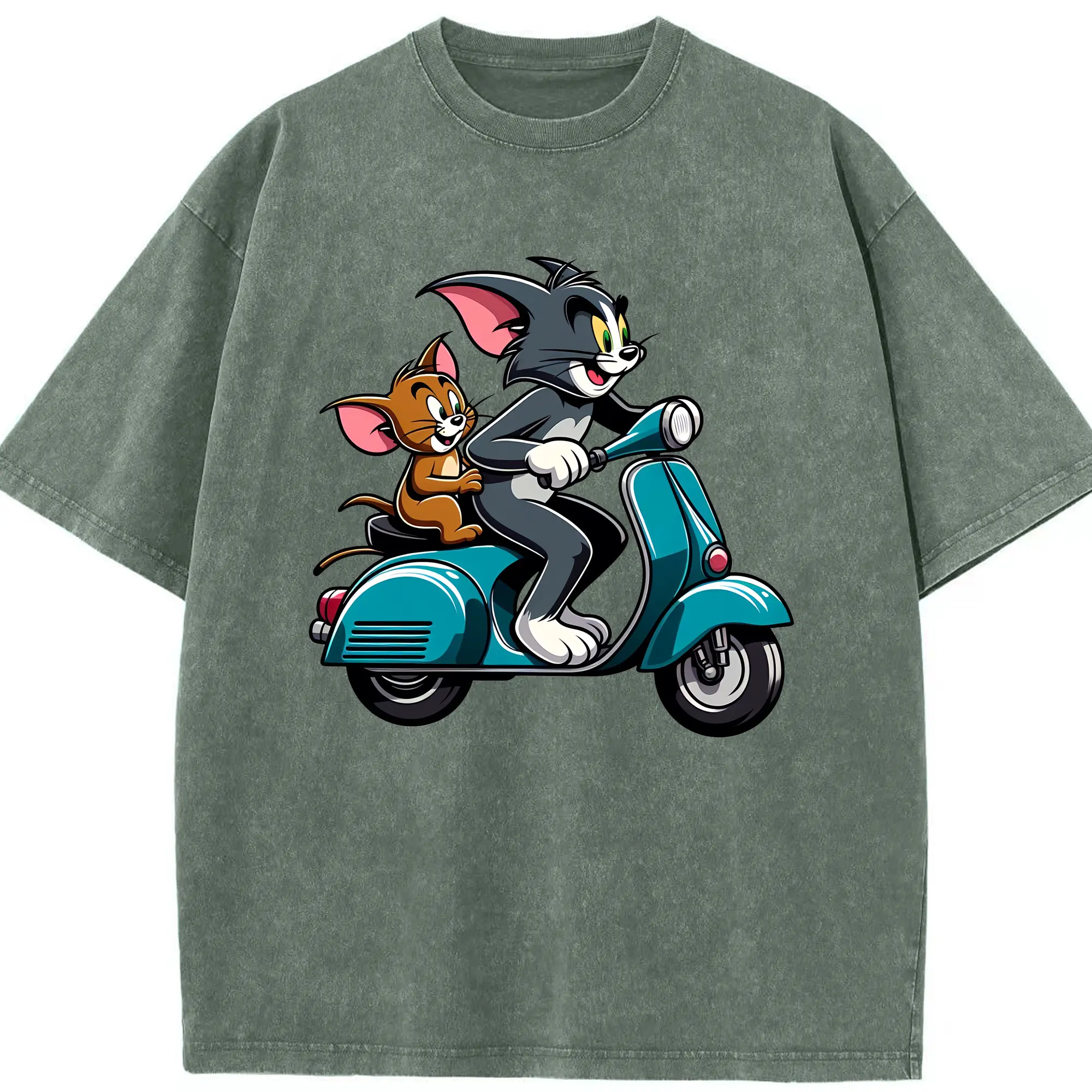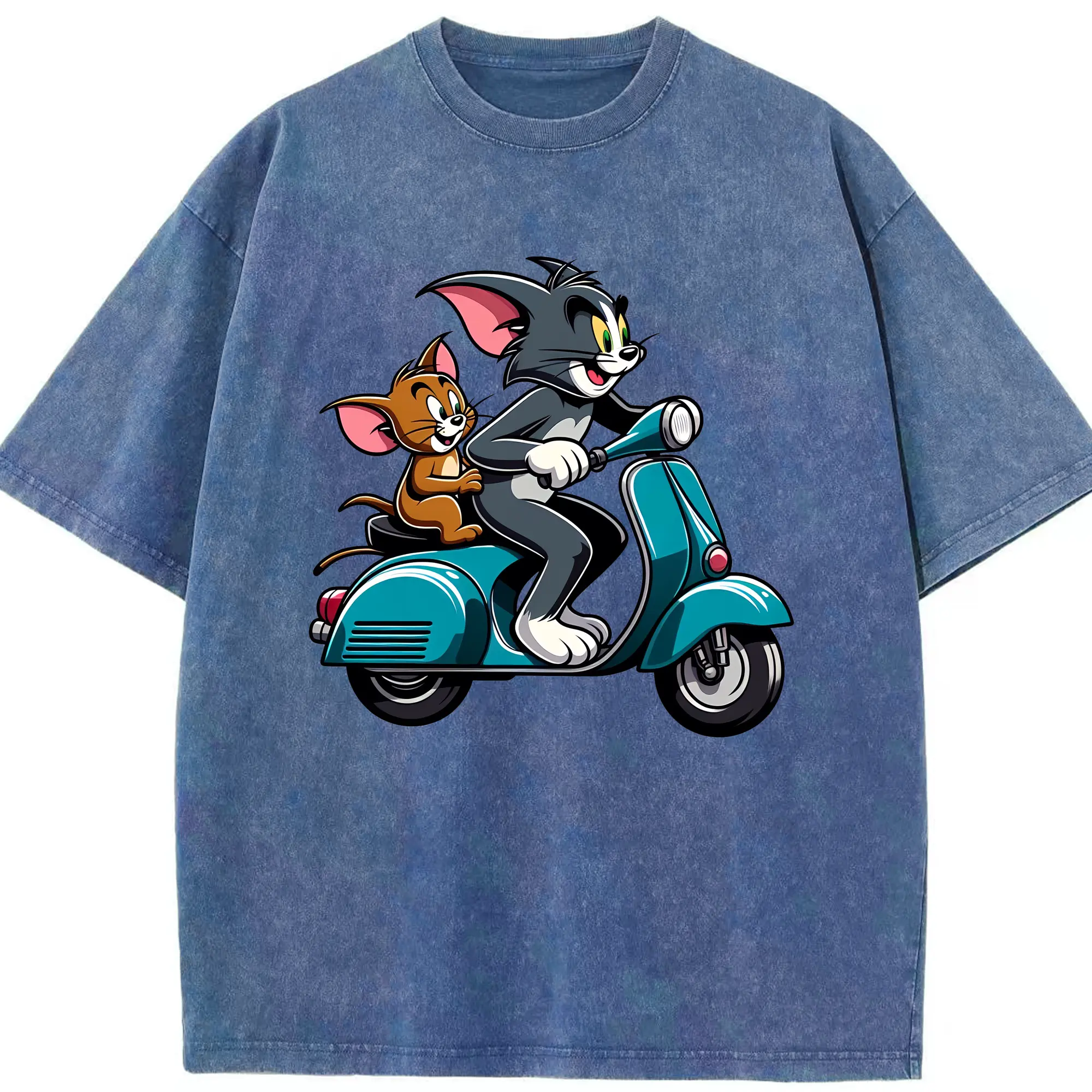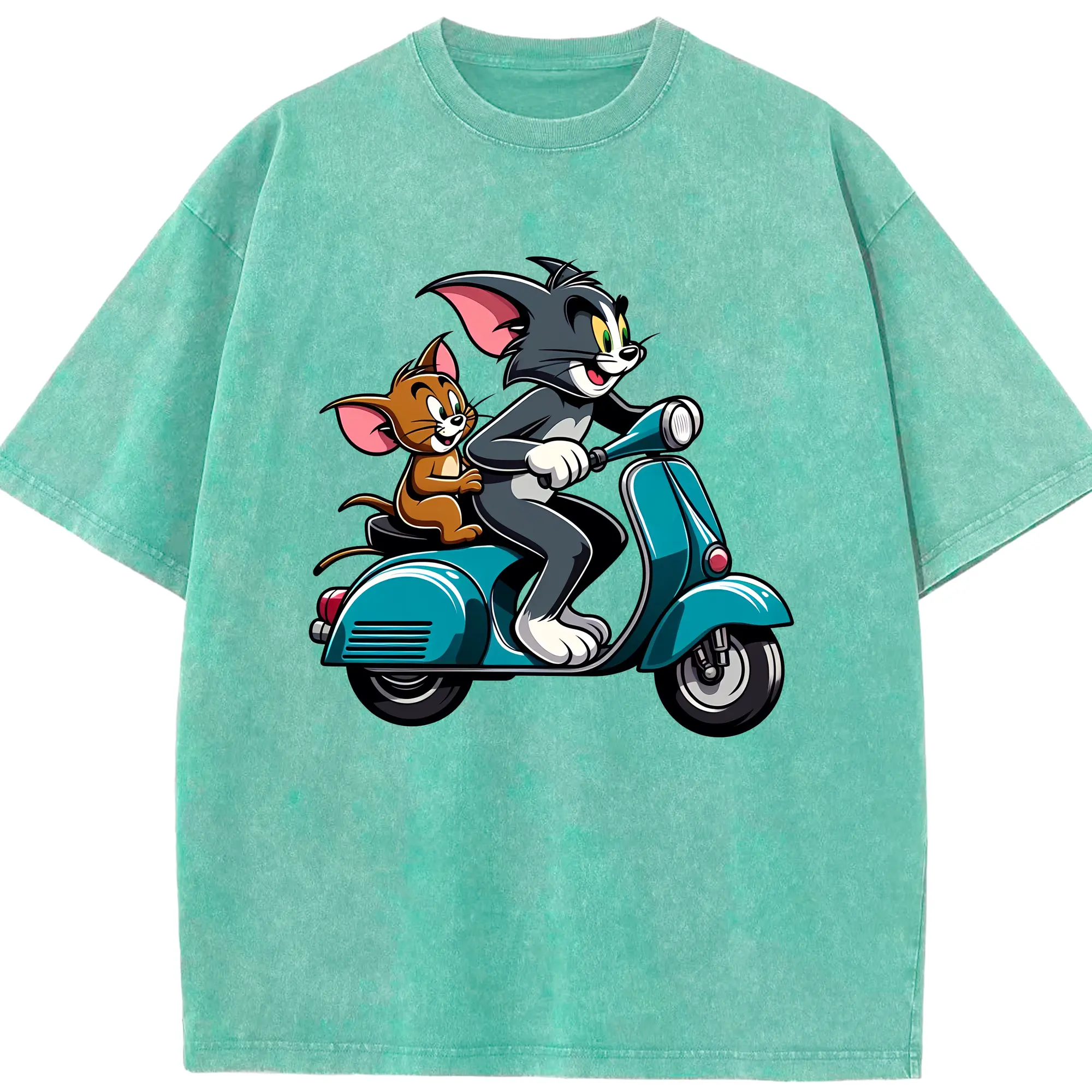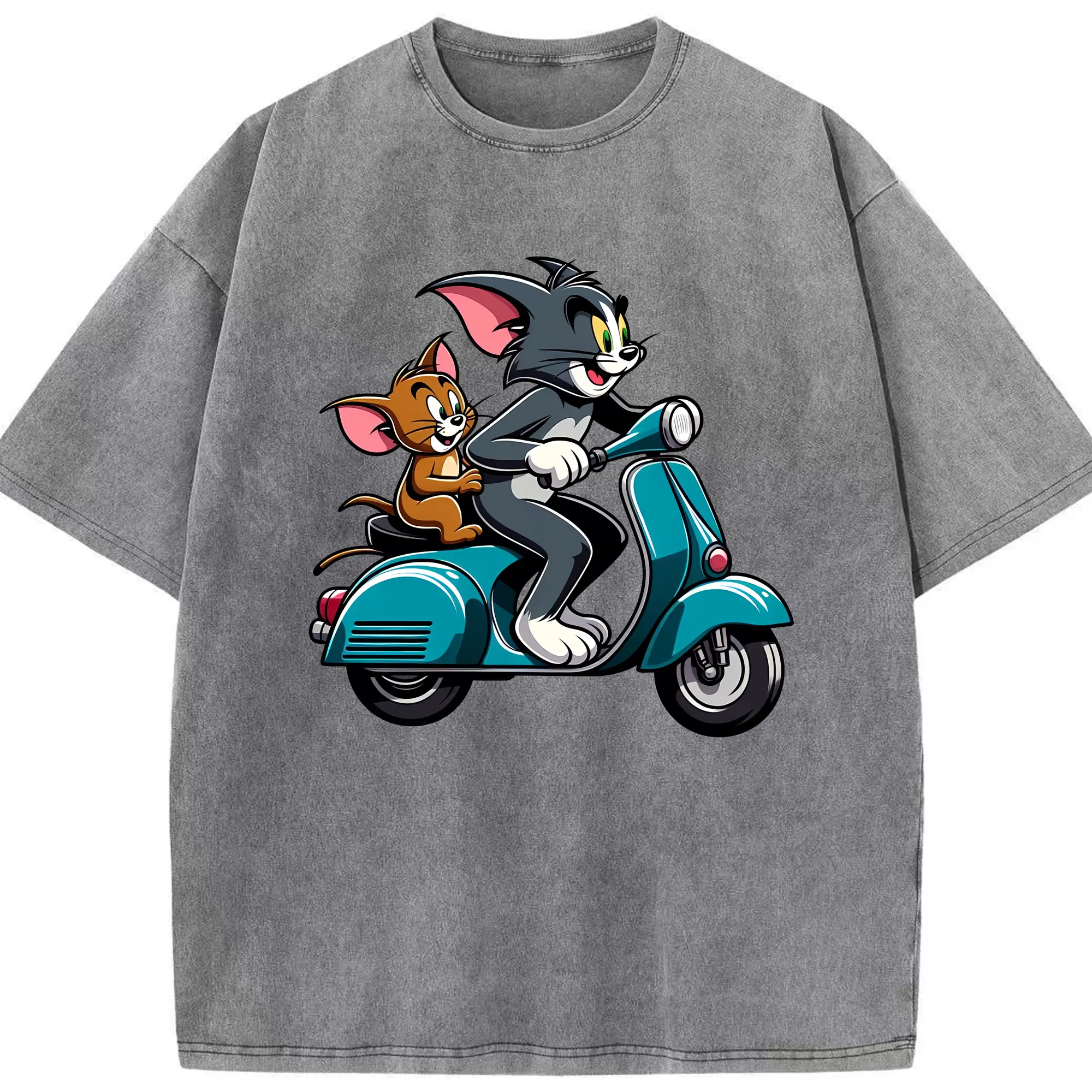 トムとジェリー グッズ トム - 綿100% ヴィンテージ風 半袖Tシャツ ・ 背面プリント ・ 柔らか肌触り ・ 通気性 快適 ・ スポーツ カジュアル 外出用