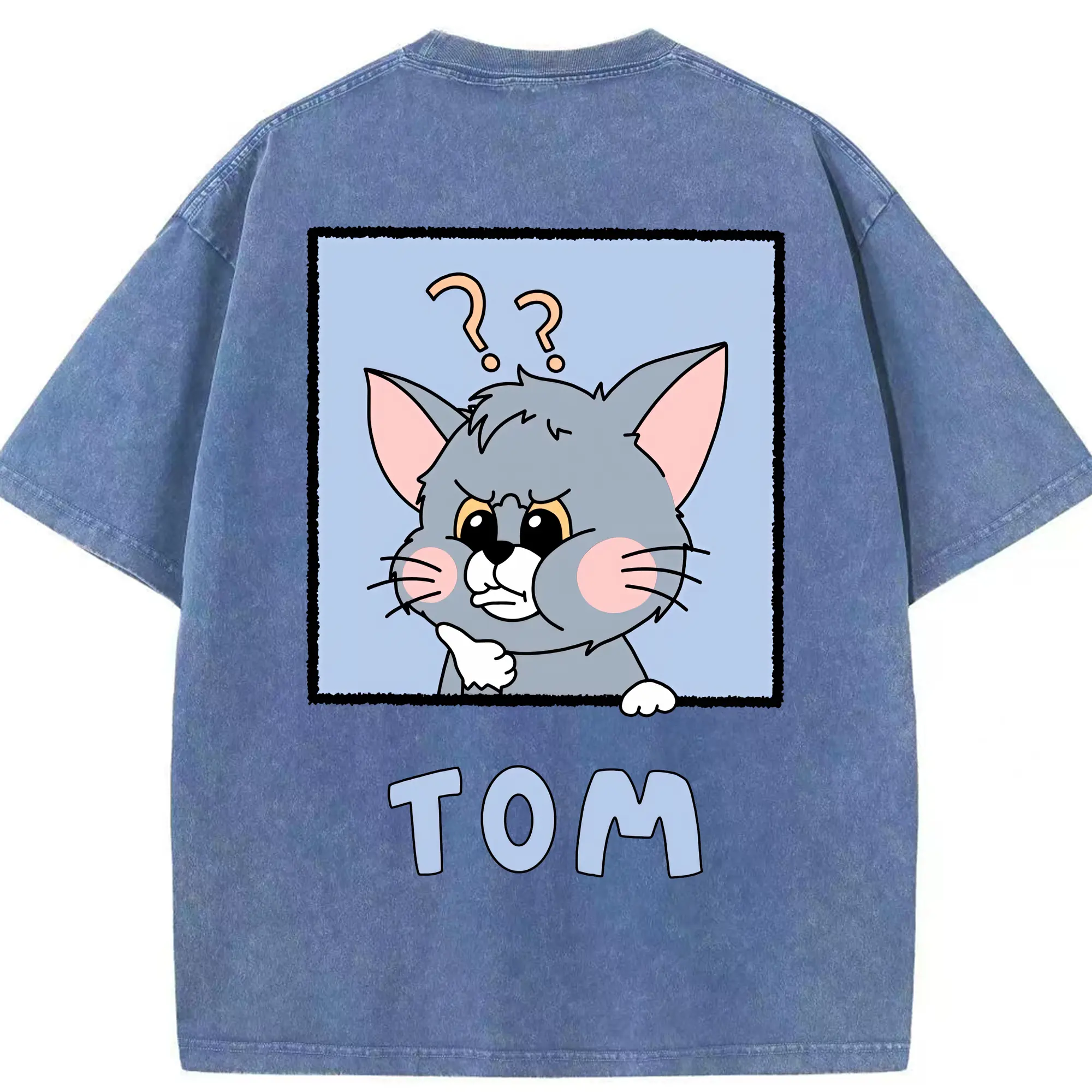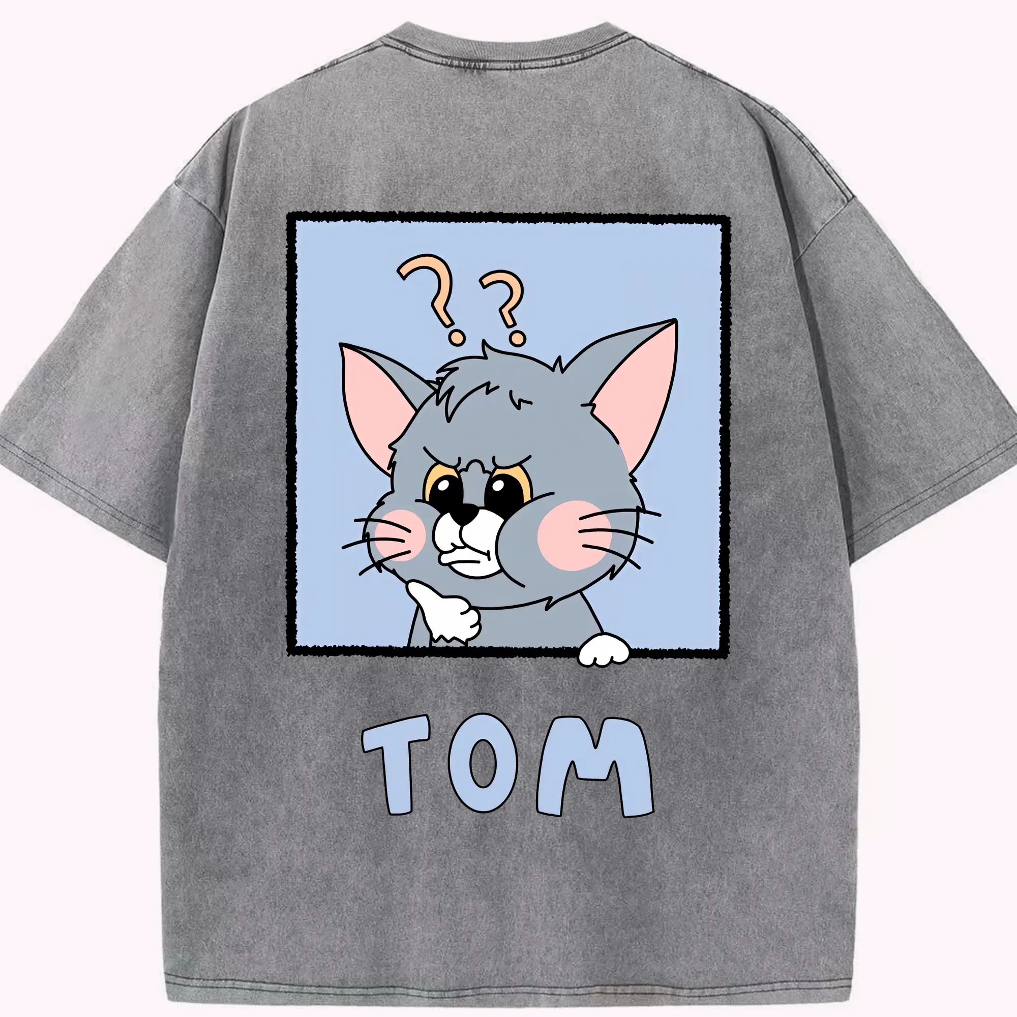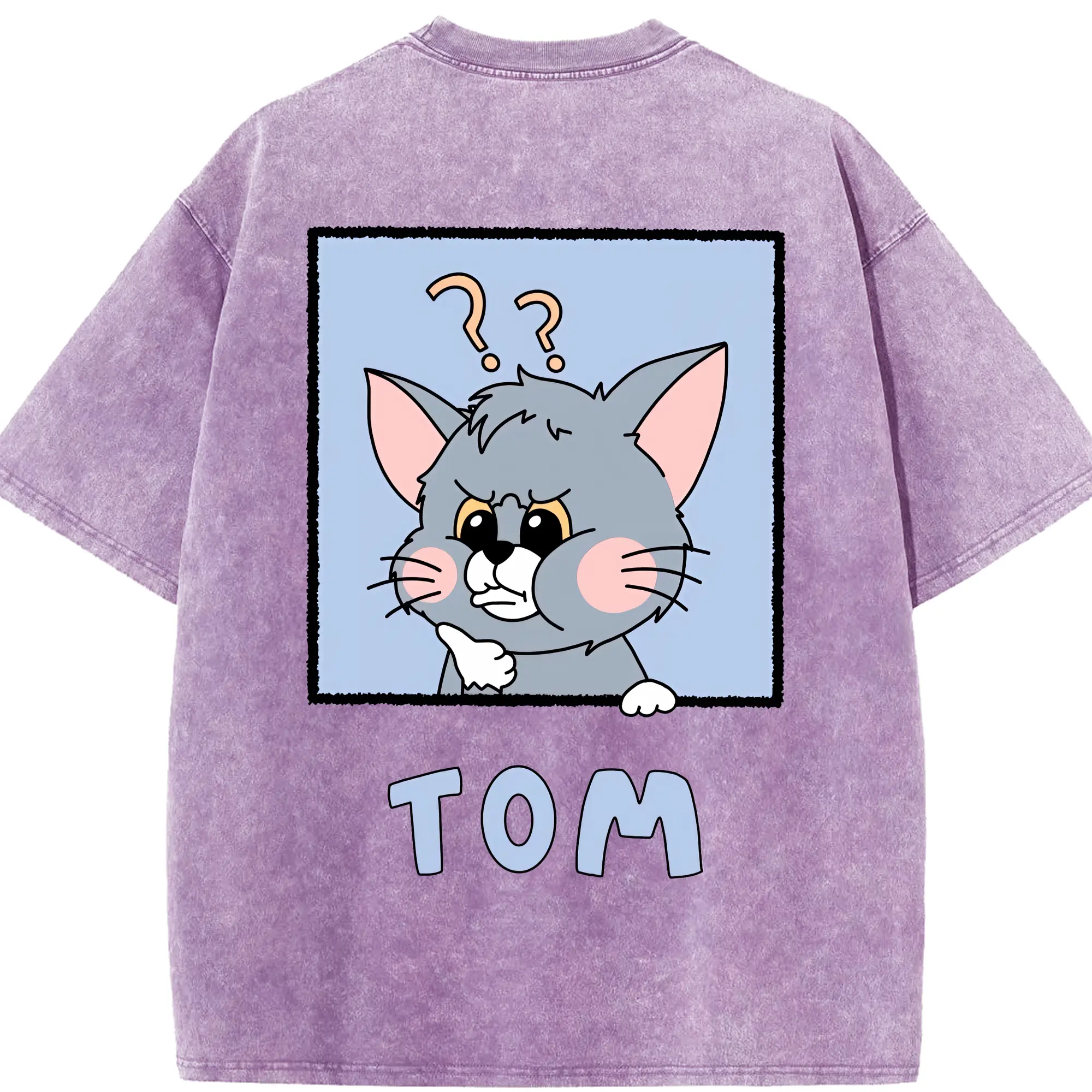 トムとジェリー グッズ トム - 綿100% ヴィンテージ風 半袖Tシャツ ・ フロントプリント ・ 柔らか肌触り ・ 通気性 快適 ・ スポーツ カジュアル 外出用