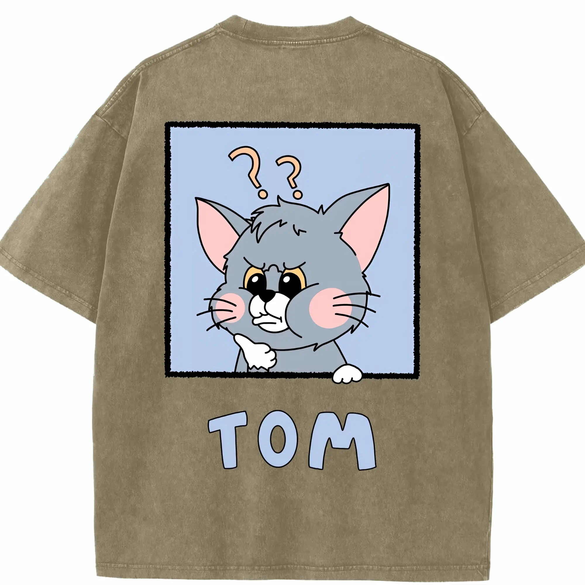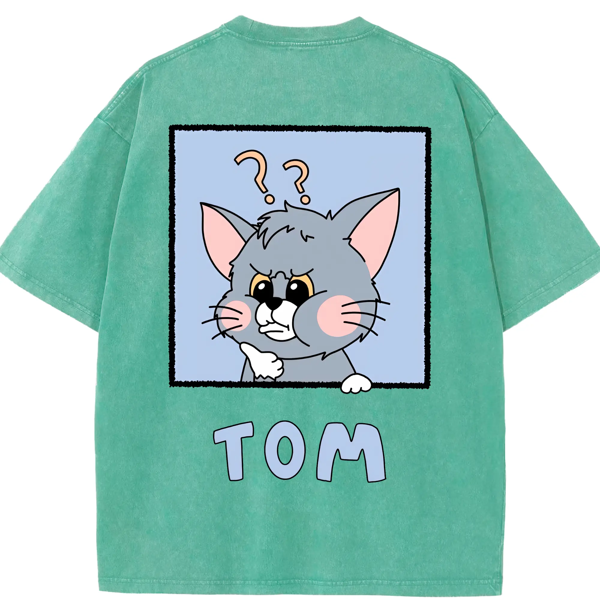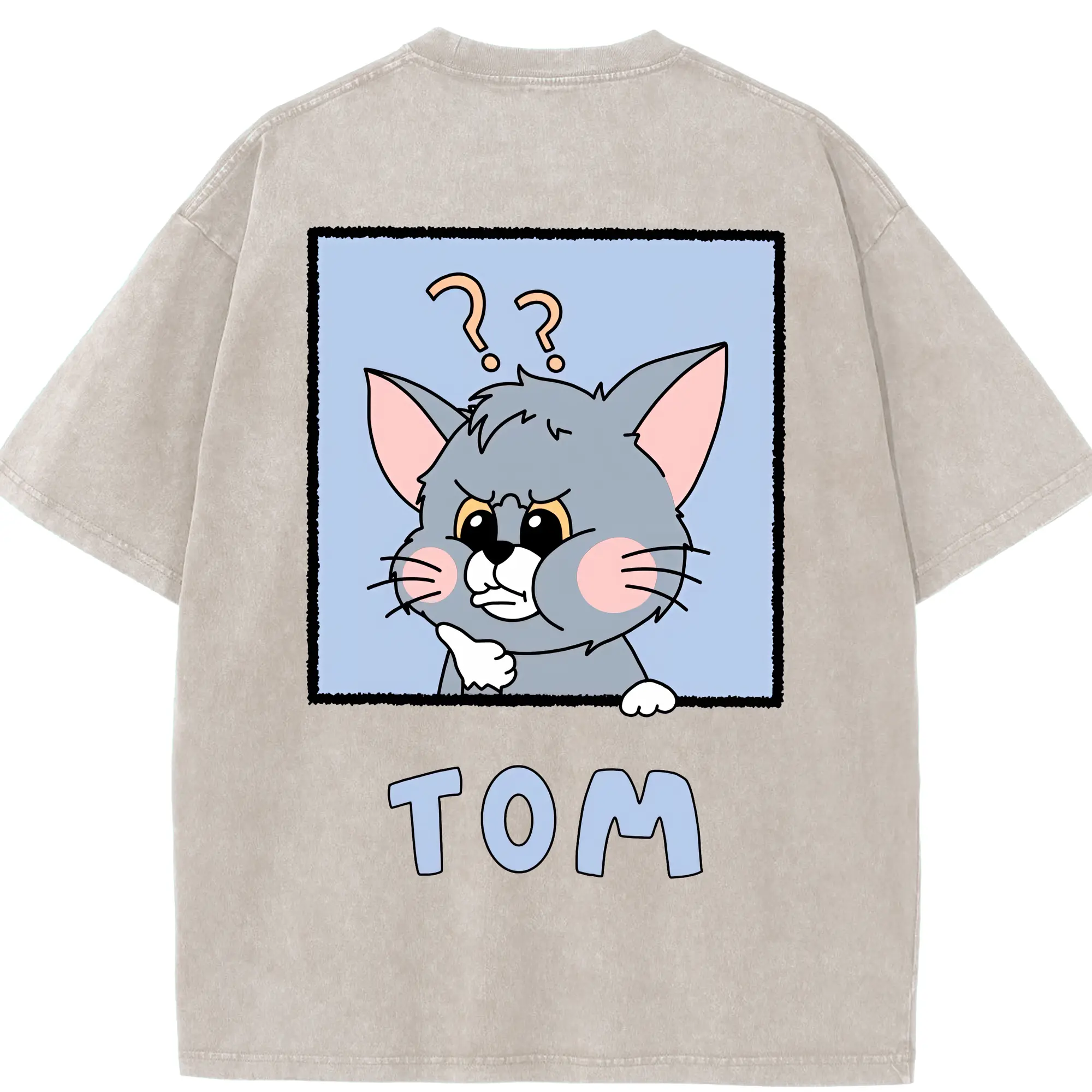 トムとジェリー グッズ トム - 綿100% ヴィンテージ風 半袖Tシャツ ・ フロントプリント ・ 柔らか肌触り ・ 通気性 快適 ・ スポーツ カジュアル 外出用