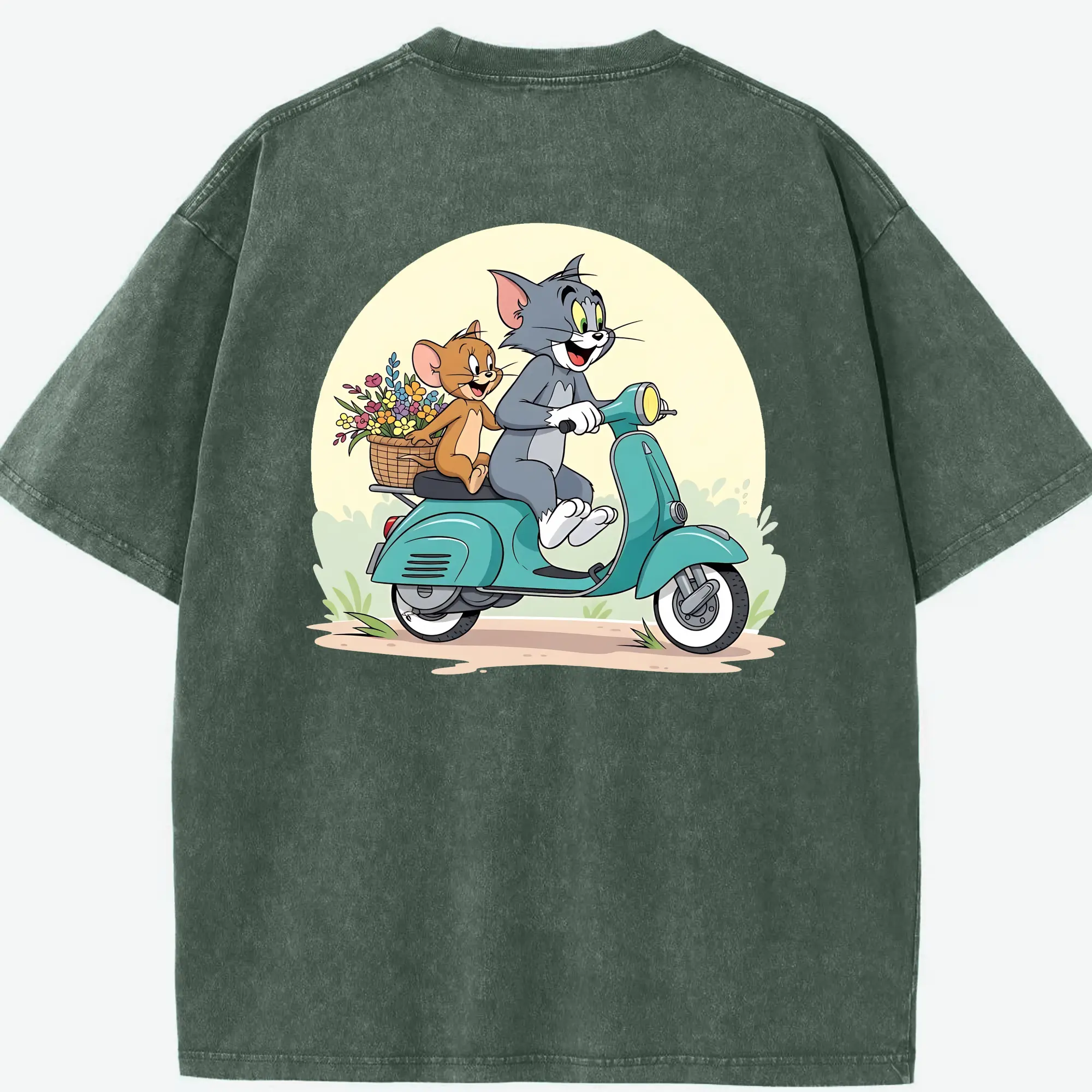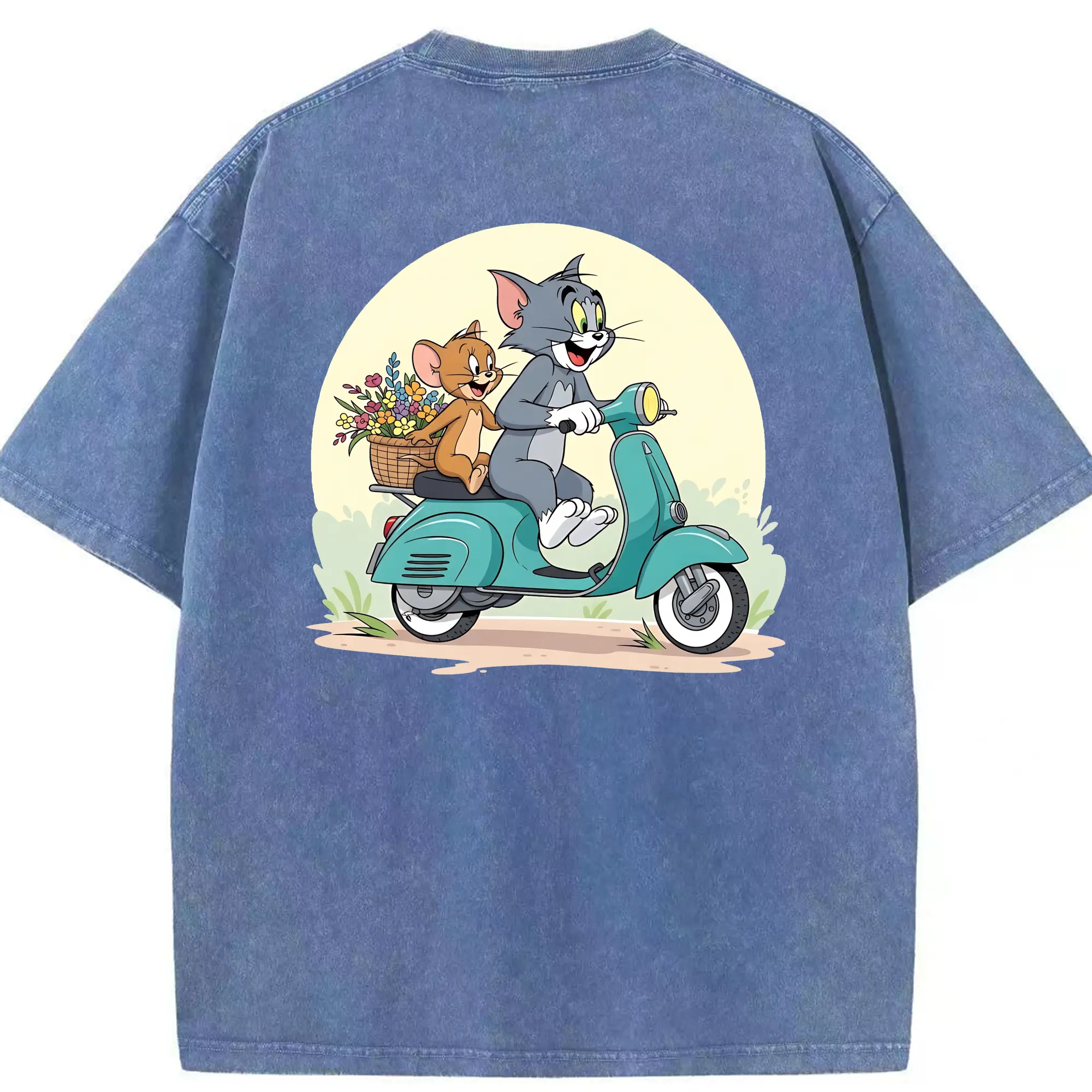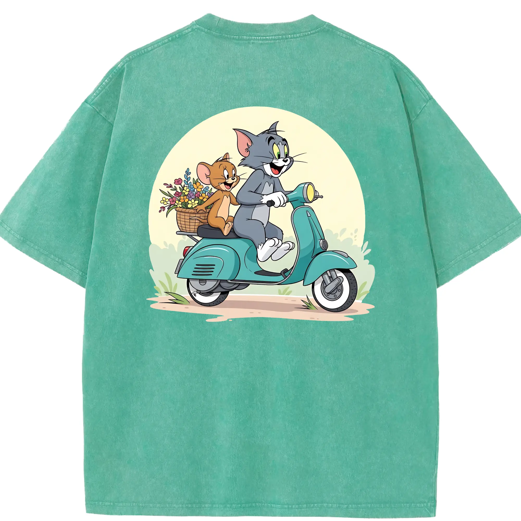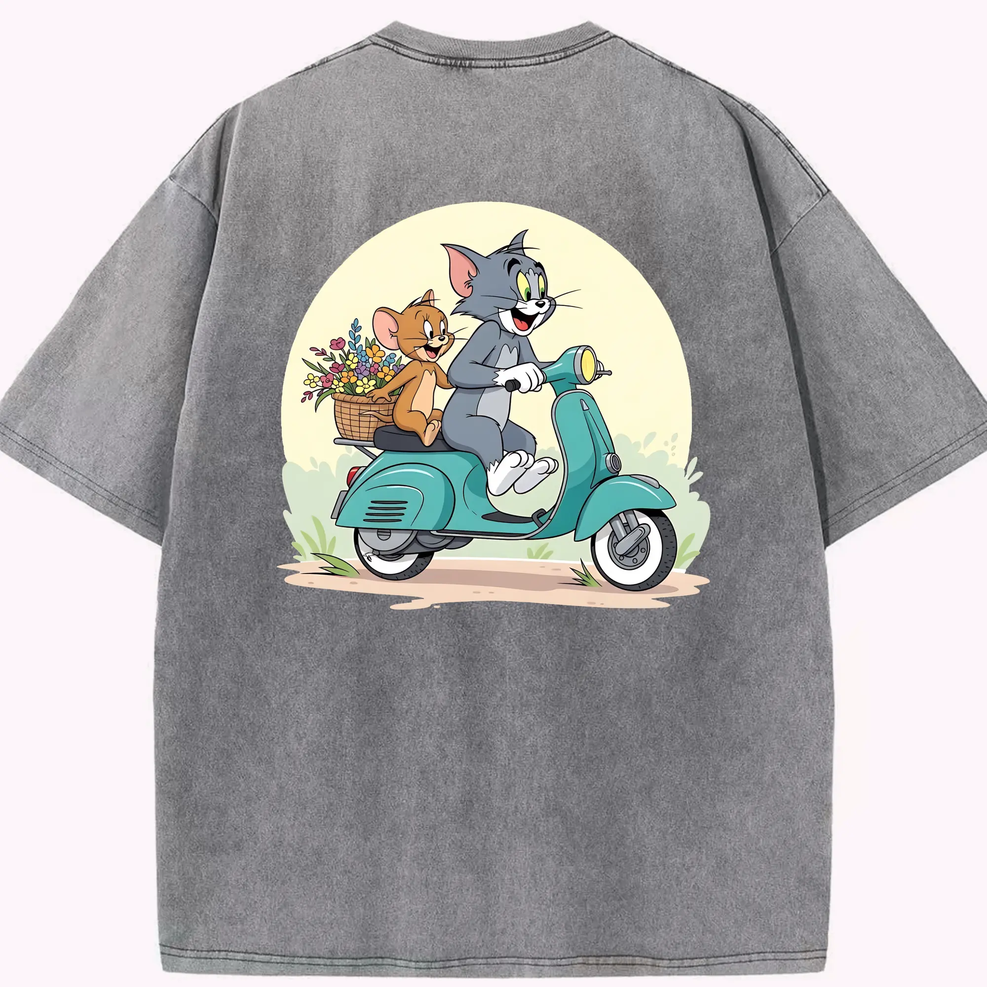 トムとジェリー グッズ トム - 綿100% ヴィンテージ風 半袖Tシャツ ・ フロントプリント ・ 柔らか肌触り ・ 通気性 快適 ・ スポーツ カジュアル 外出用